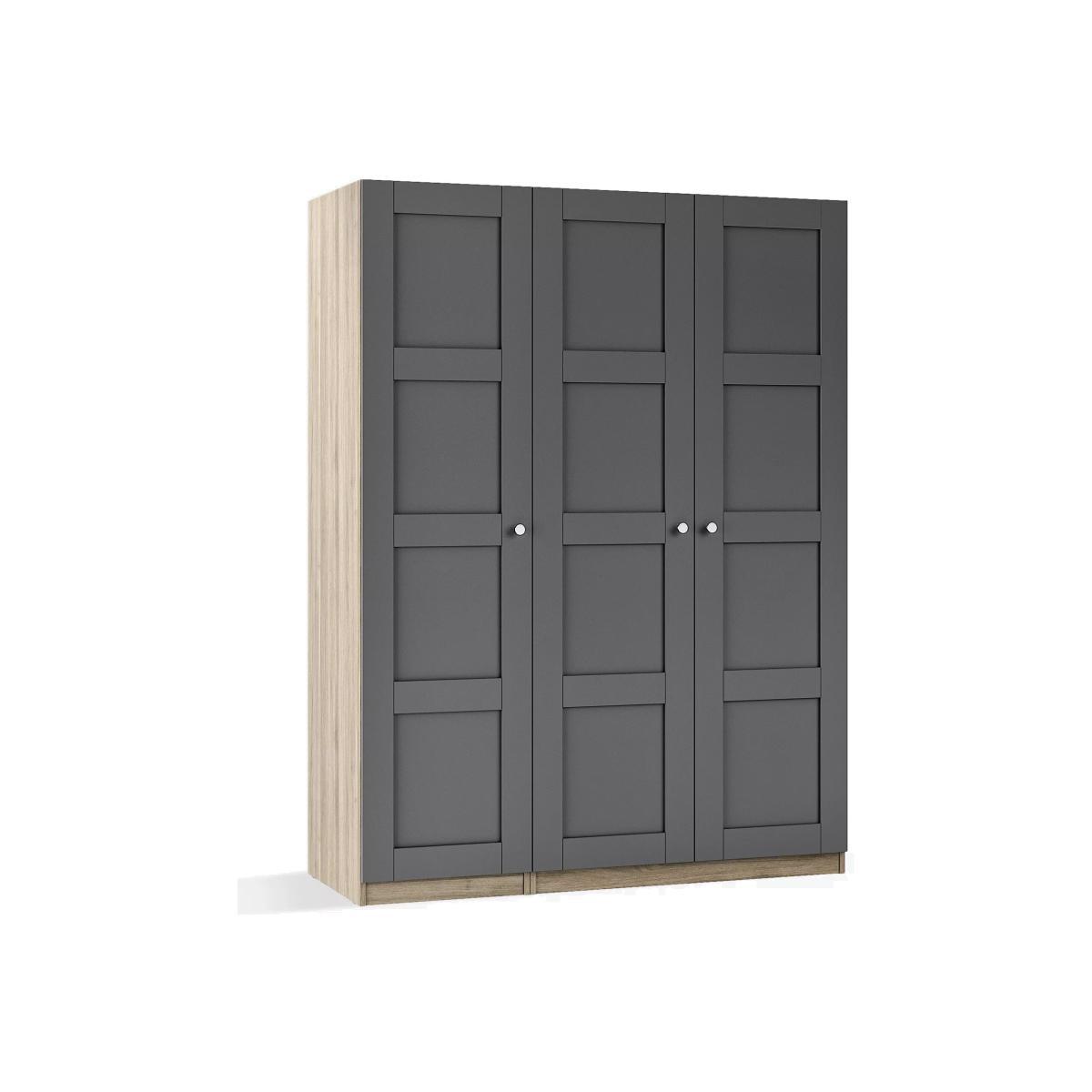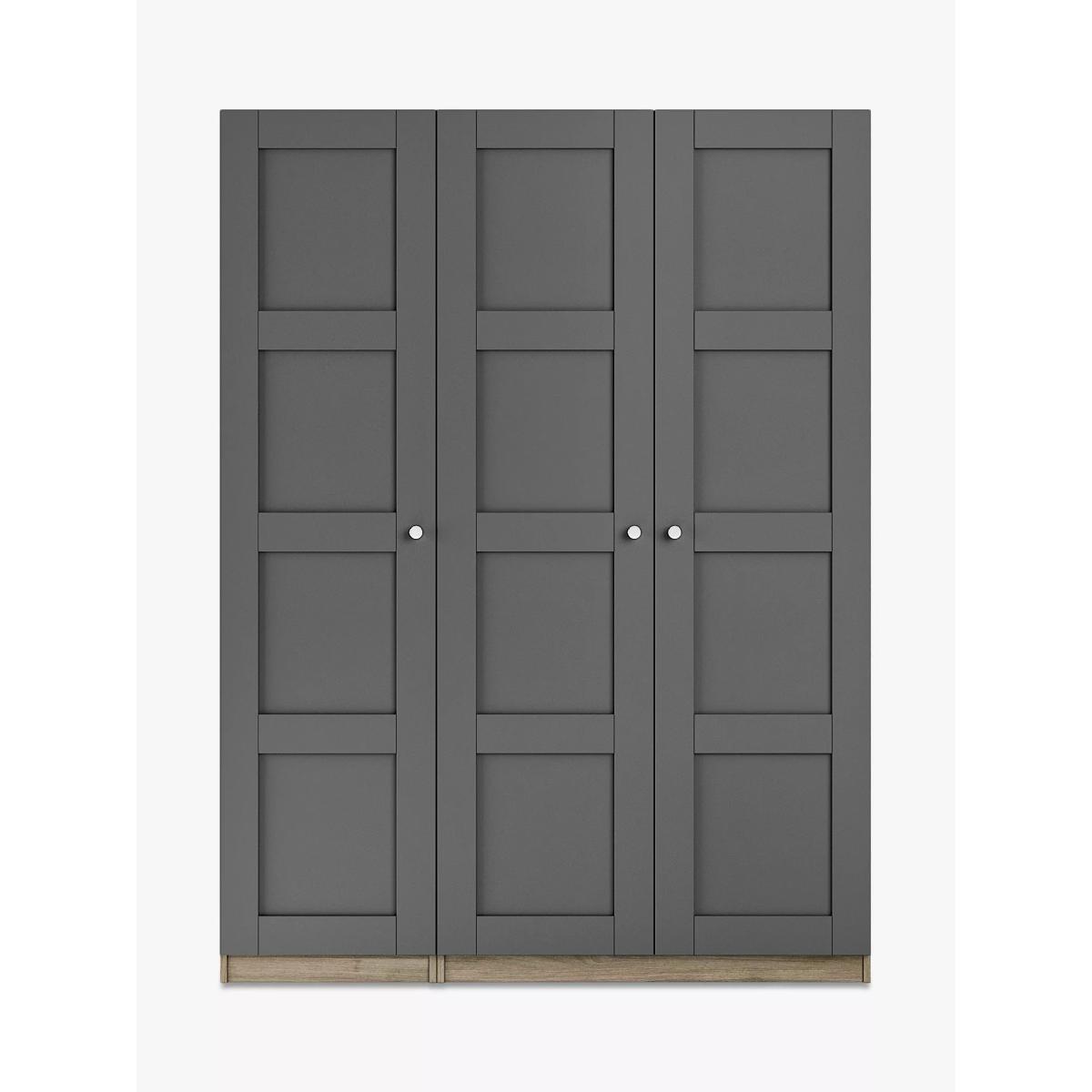 Our Mix It range offers the flexibility to create your own contemporary, self-assembly bedroom furniture. Italian designed and manufactured, this triple wardrobe is supplied flat-packed and offers straightforward assembly. We've created this set for you, but different colours and combinations can be created by mixing and matching pieces from the full range, available in selected shops. Made from foil-wrapped MDF, we've designed this spacious wardrobe with panel detailing on the doors and centre mirror to give it a more classic look. There's a shelf and hanging rail inside both the narrow and wider sections of the wardrobe, and brushed nickel finished knob handles add a sleek touch. Full assembly instructions are provided. Key information: Overall dimensions: H201 x W150 x D58cm Materials: Foil-wrapped MDF, Chipboard, Metal