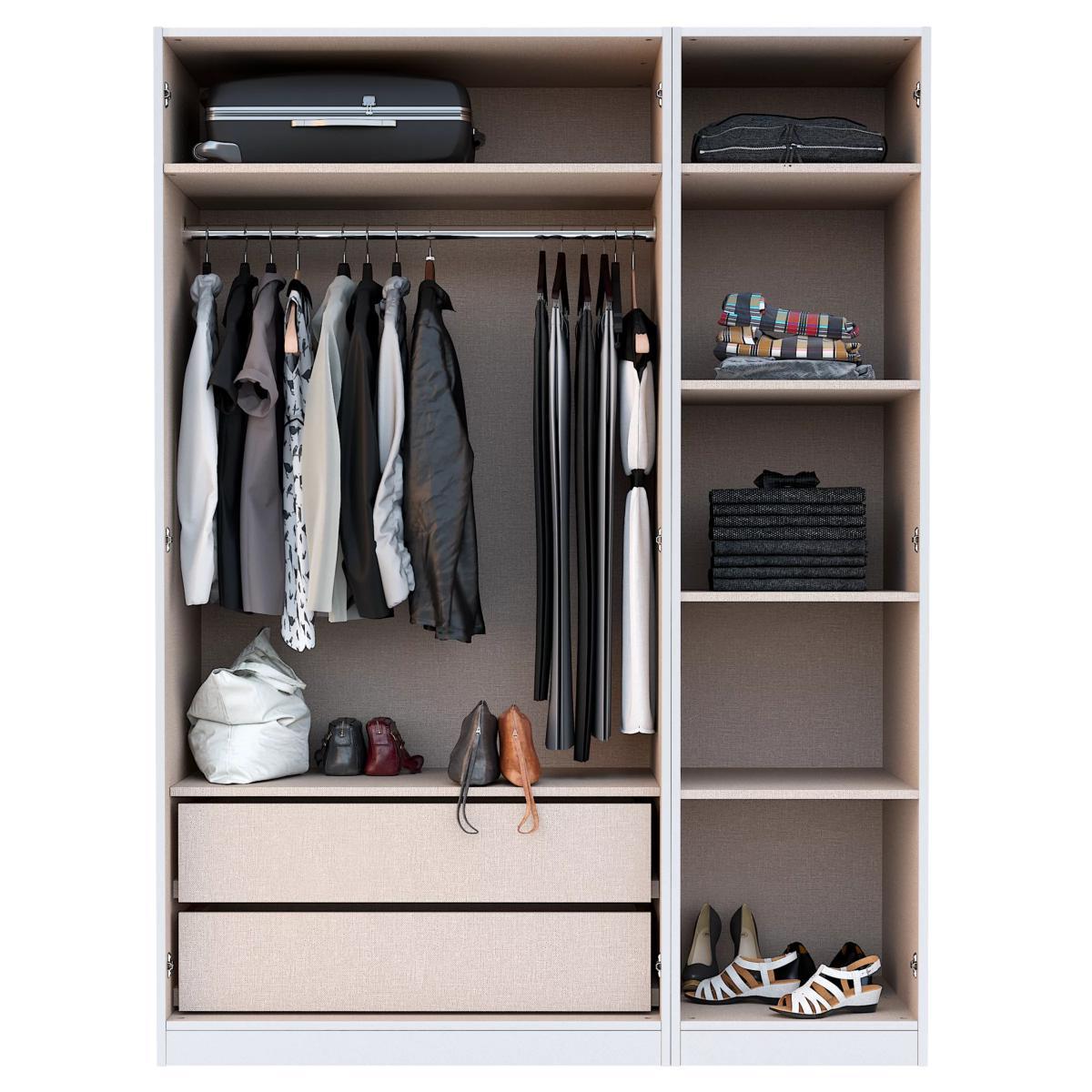Contemporary modular design meets robust craftsmanship to create this bundle of Mix It products. This practical assortment consists of: two gloss white soft-close hinged doors and one mirrored door, two long stainless steel T-bar handles and one mirror handle, two internal drawers, three small (50cm) shelves and one long (100cm) shelf, all of which are housed inside a natural oak coloured carcass. Its tall and sturdy profile, with soft-close doors, is crafted from foil wrapped MDF, while the internal drawers boast a linen-effect finish that lends a polished finishing touch. This versatile piece will sit superbly in clean, modern settings. Product features: Overall dimensions: H201 x W150 x D58cm Each internal drawer: H19 x W91 x D45cm Composition: MDF, Foil, Chipboard, Stainless Steel, Mirror Weight: 190kg Mix It offers the flexibility to create your own contemporary, self assembly bedroom furniture. Italian designed and manufactured, you can mix and match the pieces from the range to suit your style. We have created this bundle for you, however for more colours and combinations, the full range is available in selected stores. Please note: We recommended fixing our Mix It chests and wardrobes to the wall to prevent overbalancing. Wall fittings are provided with your purchases and products are spot marked to indicate handle positions. You will need to drill through the spot marks to fix the handles. For further guidance, please refer to the assembly instructions supplied. Please note: not all our ranges are on display in our shops.