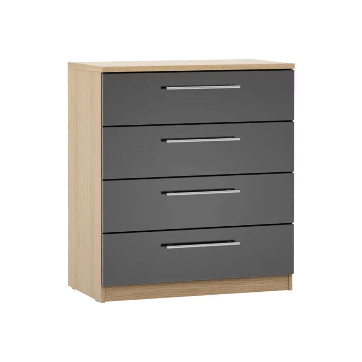 Practical and neat, this chest of drawers is a stylish storage solution. With four wide and spacious drawers, organise your clothes and linen to suit you. Made from foil wrapped MDF, the gloss finish, white exterior and linen effect interior has a classic look that will sit well in a variety of settings. The neutral tones and polished chrome T-bar handles are simple, yet attractive. Please see below for further product information: Dimensions - H90 x W80 x D44cm Material - MDF Weight - 39kg Mix It offers the flexibility to create your own contemporary, self assembly bedroom furniture. Italian designed and manufactured, you can mix and match the pieces from the range to suit your style. We have created this bundle for you, however for more colours and combinations, the full range is available in selected stores. Please note: We recommended our Mix It chests and wardrobes are fixed to the wall to prevent overbalancing. Wall fittings are provided with your purchase. Products are spot marked to indicate handle positions. You will need to drill through the spot marks to fix the handles. For further guidance please refer to the assembly instructions.