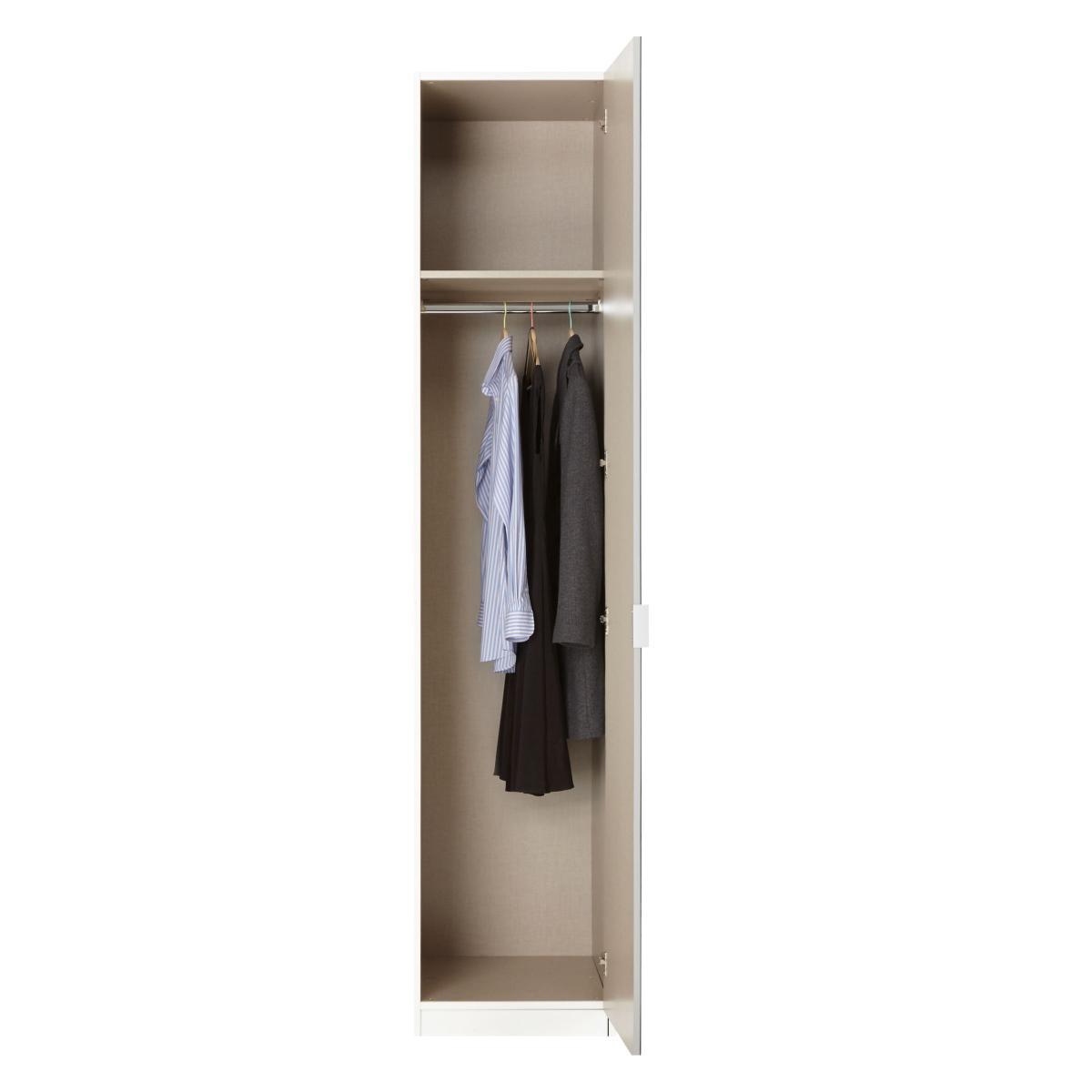 Mix It offers the flexibility to create your own contemporary, self-assembly bedroom furniture. Italian designed and manufactured, we've put together this tall single wardrobe for you, but you can choose your own colours and combinations by mixing and matching pieces from the full range, which is available in selected shops. Taller in height, but still great for smaller rooms, especially thanks to the mirrored door which will help your room feel bigger. It's made from sturdy foil-wrapped chipboard and MDF with a matt white frame. There's an adjustable shelf and hanging rail inside and the mirrored door can be mounted and hinged on either side of the frame. This set includes: Mix It tall single wardrobe frame, matt white. H236 x W59.9 x D50cm. Weight: 57kg Mix It tall single wardrobe mirrored door Mix It wardrobe handle, x1 Good to know Wall fittings are provided and we recommend fixing this wardrobe to the wall to prevent over-balancing. Spot marks indicate handle positions. You'll need to drill through the spot marks to fix the handles. Full assembly instructions are provided. With great prices and great design, our new brand offers style and quality for modern living today. Whatever you need, there's joy to be found in.