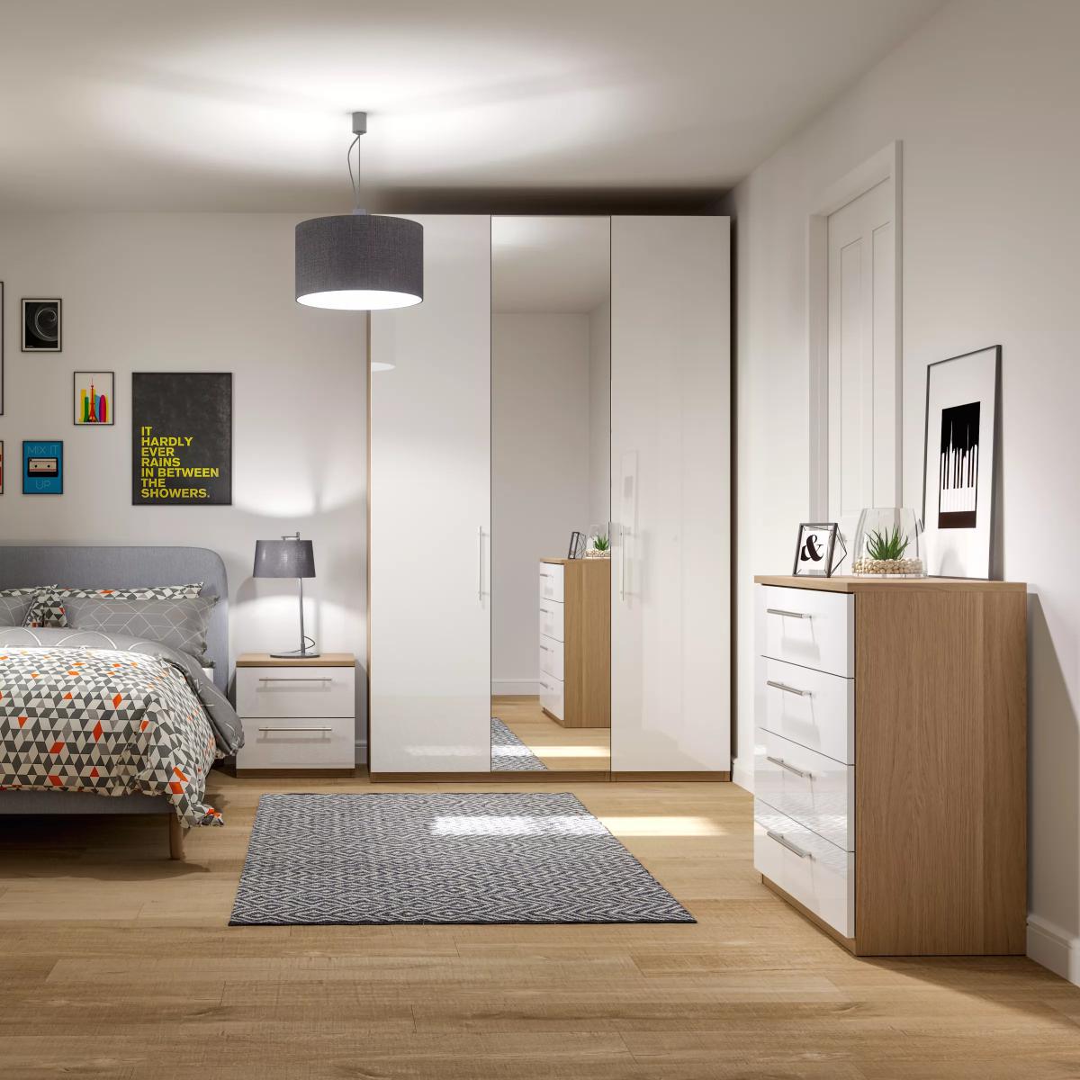 Mix It offers the flexibility to create your own contemporary, self-assembly bedroom furniture. Italian designed and manufactured, we've put together this tall triple wardrobe for you, but you can choose your own colours and combinations by mixing and matching pieces from the full range, which is available in selected shops. This wardrobe is made from sturdy foil-wrapped chipboard and MDF with a versatile ash wood-effect frame. There's an adjustable shelf and hanging rail inside and the mirror panel in the centre will bring a sense of light and space into your bedroom. Sleek T-bar handles are attached to each door. Overall dimensions: H236 x W150 x D60cm. Weight: 100kg This set includes: Mix It Tall double wardrobe frame, grey ash Mix It Tall single wardrobe frame, grey ash Mix It Tall mirrored wardrobe door Mix It Tall wardrobe doors, x2, smoke Mix It metal T-bar handles, 30.6cm, x2 Good to know Wall fittings are provided and we recommend fixing this wardrobe to the wall to prevent over-balancing. Spot marks indicate handle positions. You'll need to drill through the spot marks to fix the handles. Full assembly instructions are provided. With great prices and great design, our new brand offers style and quality for modern living today. Whatever you need, there's joy to be found in.
