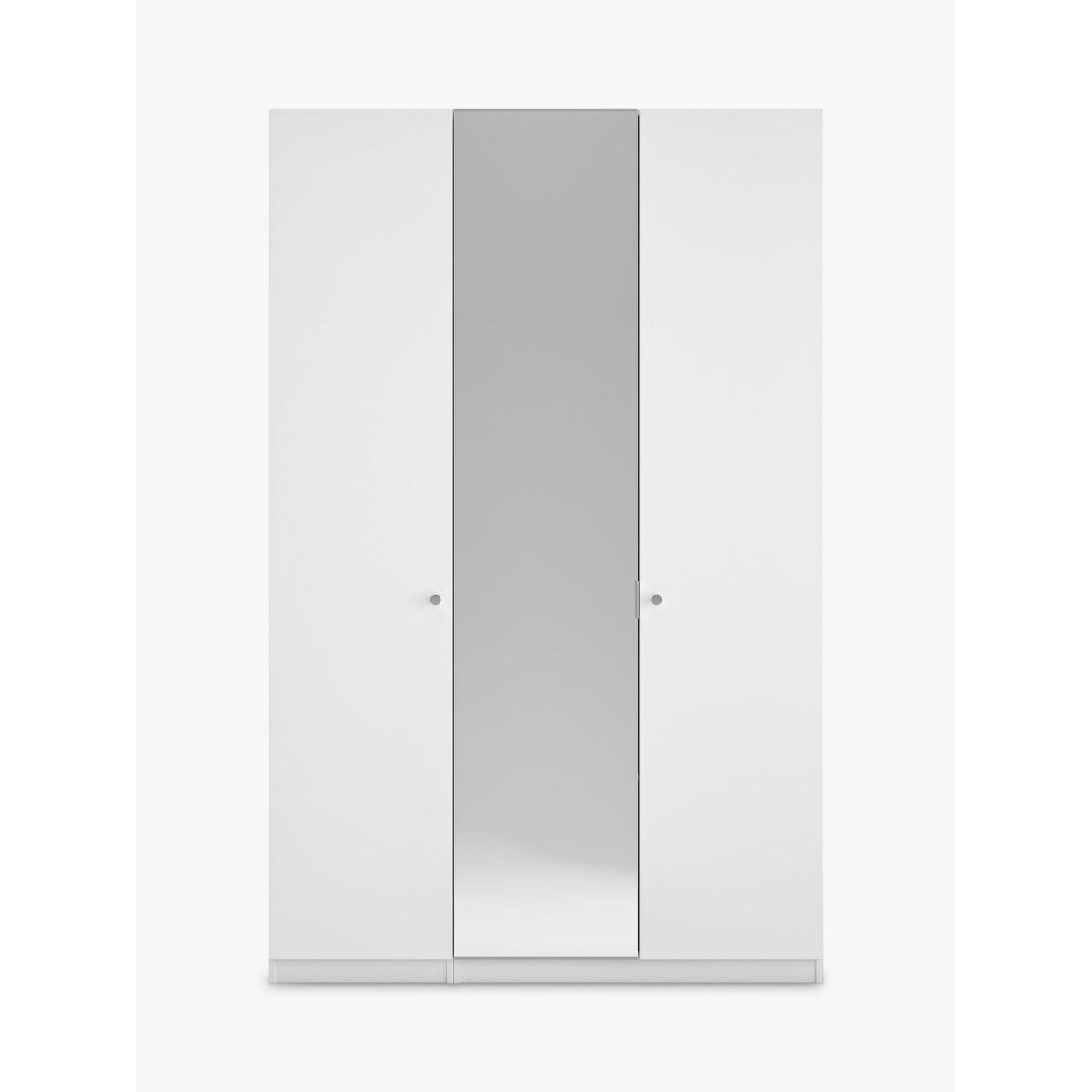 Mix It offers the flexibility to create your own contemporary, self-assembly bedroom furniture. Italian designed and manufactured, we have created this tall 3 door wardrobe bundle for you, however more colours and combinations can be created by mixing and matching pieces from the range. The full range is available in selected stores. This wardrobe is crafted from foil wrapped MDF and has a clean, classic profile. A central mirror section makes it a space-saving choice for your bedroom. Inside, a metal rail and single shelf allow you to keep your clothing neatly organised. Small chrome knob handles are attached to each door. Full assembly instructions are provided. Product features: Overall Dimensions: H236 x W150 x D58cm Composition: MDF, Chipboard, Foil, Metal