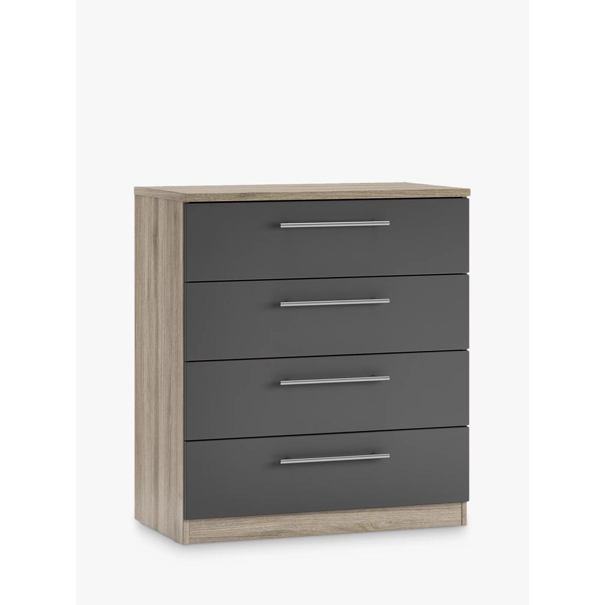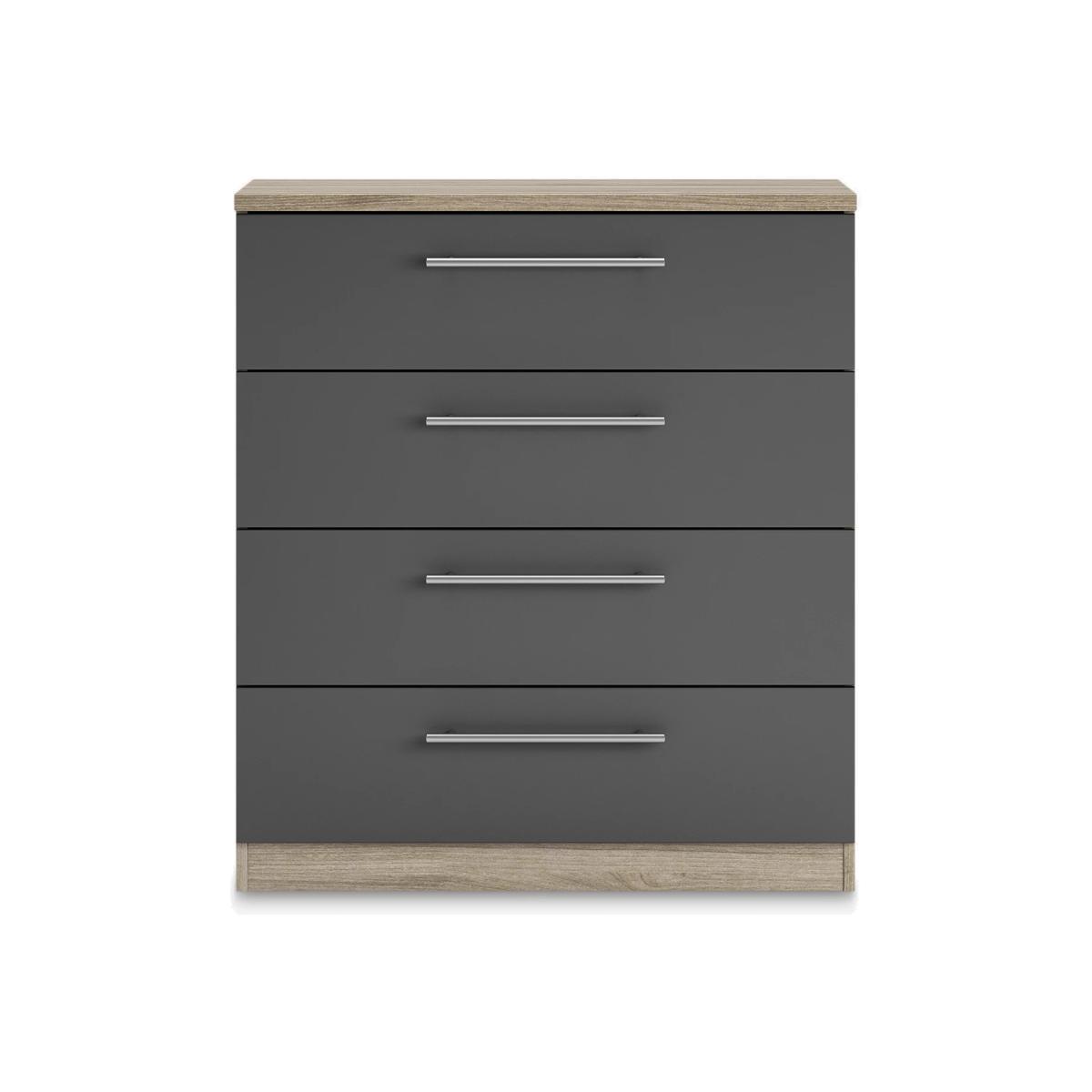 Mix It offers the flexibility to create your own contemporary, self-assembly bedroom furniture. Italian designed and manufactured, we've put together this chest of drawers for you, but you can choose your own colours and combinations by mixing and matching pieces from the full range, which is available in selected shops. There are four spacious drawers in this wide chest, which is made from high-quality foil-wrapped MDF and chipboard. We've added stainless steel t-bar handles for a modern finish. This set includes: Mix It wide chest of drawers frame, grey ash. Overall dimensions: H90 x W80 x D45cm Mix It drawer panels, matt graphite, set of 4 Mix It T-bar handles, 30.6cm length With great prices and great design, our new brand offers style and quality for modern living today. Whatever you need, there's joy to be found in.