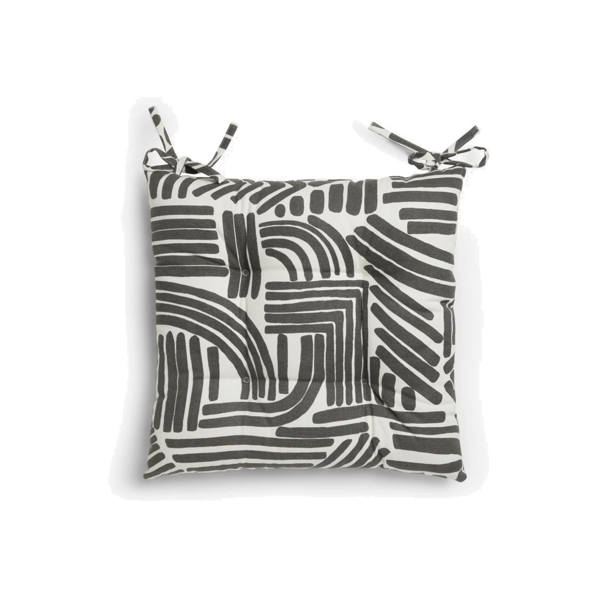 I love this seat pad for its versatile design and practicality. The monochrome, geometric print makes it easy to incorporate into a variety of interiors-whether you’re styling a modern, minimal space or adding a contemporary touch to a more eclectic setting. Its neutral palette ensures it complements most colour schemes, and the tie-fastening means it stays in place, making it ideal for both indoor chairs and outdoor furniture. For styling tips, try pairing this with natural wood or black metal furniture for a sleek look, or layer it over textured fabrics for added visual interest. It’s a simple, affordable way to refresh seating areas while adding a dash of pattern and comfort.