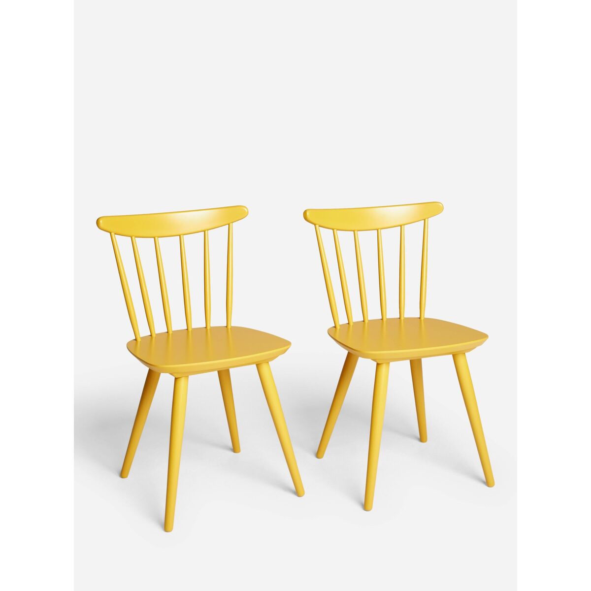 We've made these dining chairs from sturdy beechwood in a range of painted finishes. Supplied as a pair with spindle rods forming the backrest and sleek, tapered legs, they're useful in smaller rooms and ideal if you want a quick room refresh. Create an eclectic look by mix-and-matching different colours around your dining table or keep things simple with a neutral colour block. Want to see it first? You may want to see and get a feel for the furniture in one of our shops before ordering. We'll be able to tell you where the range you'd like to view is on display. With great prices and great design, our new brand offers style and quality for modern living today. Whatever you need, there's joy to be found in ANYDAY.