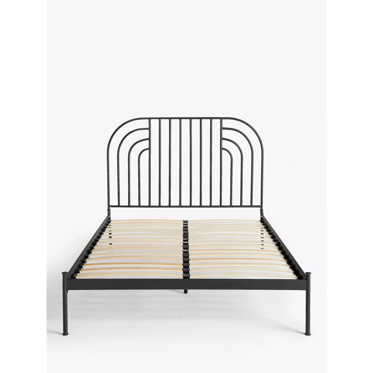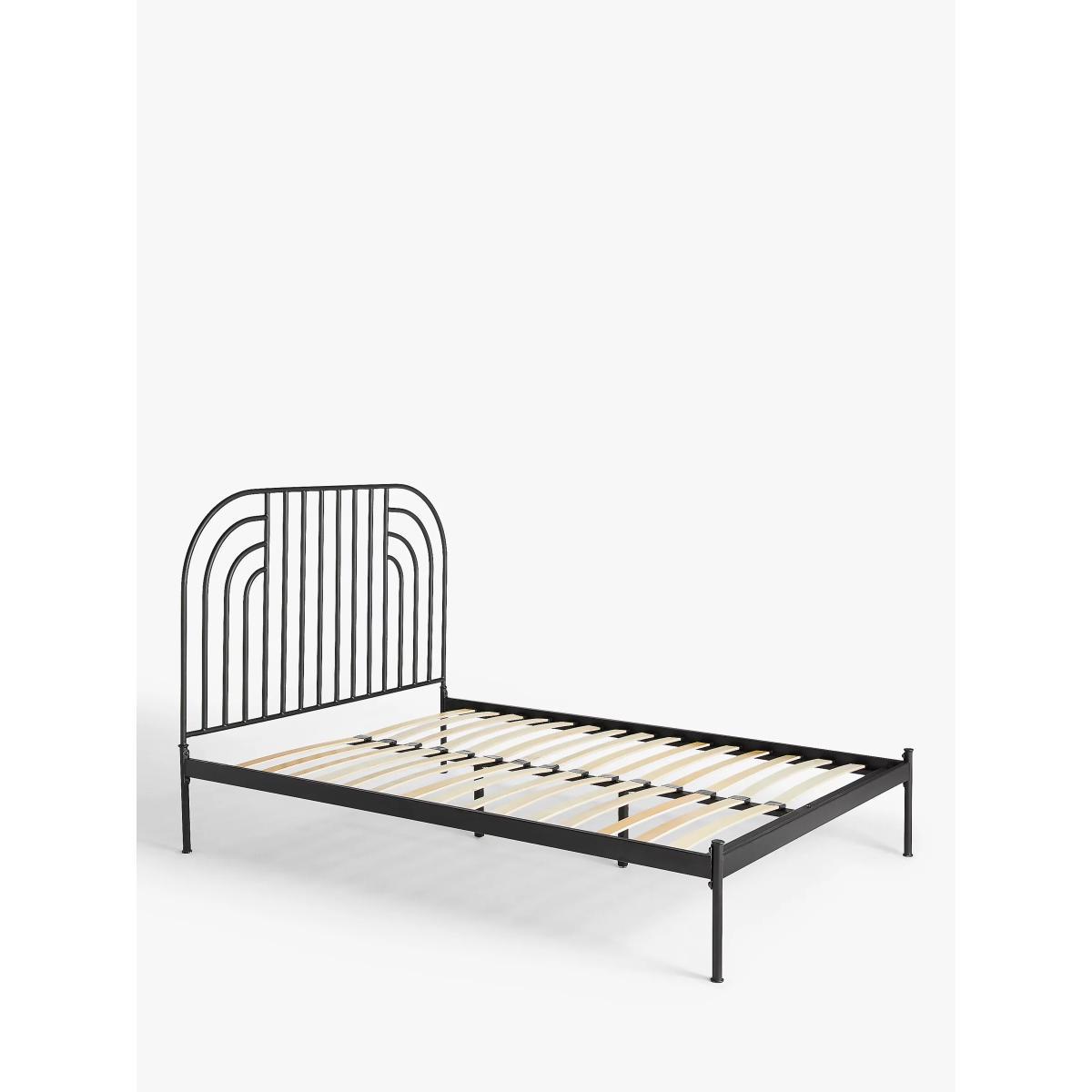 We like the decorative style of this bed frame, which is made from sturdy steel and features a swirling pattern on the headboard. The style evokes an age of Art-Deco opulence, but we've given it a modern edge thanks to the on-trend black finish. Plus, the base features supportive sprung slats. Want to see it first? You may want to see and get a feel for the furniture in one of our shops before ordering. We'll be able to tell you where the range you'd like to view is on display. With great prices and great design, our new brand offers style and quality for modern living today. Whatever you need, there’s joy to be found in.