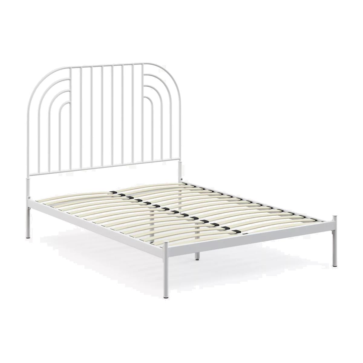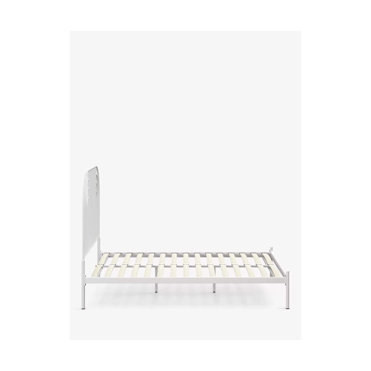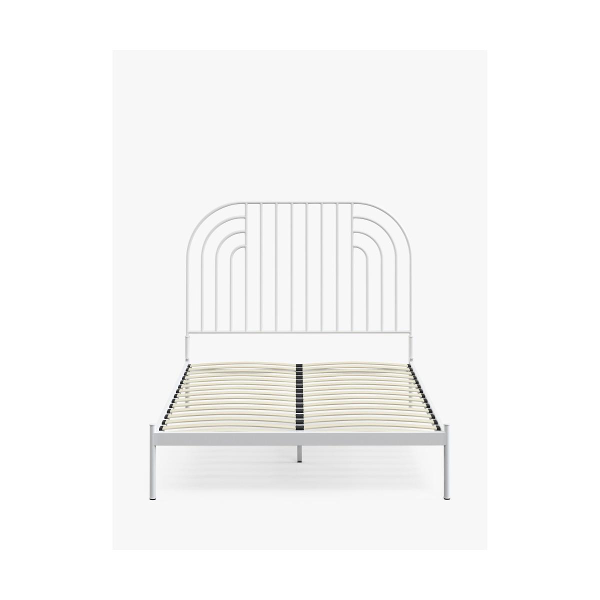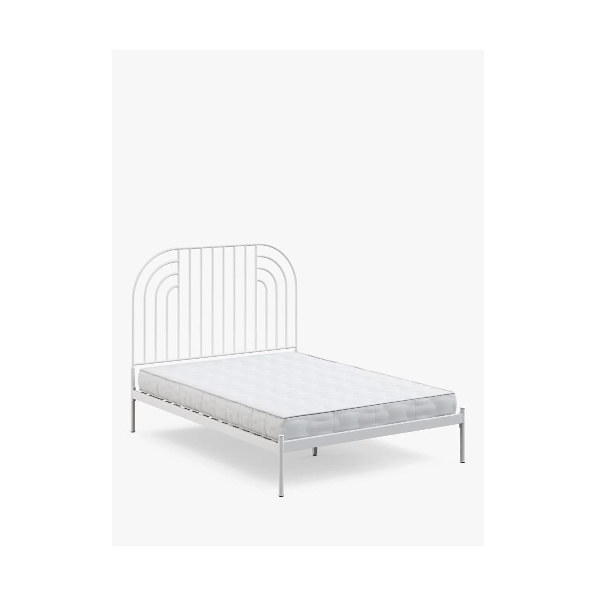We like the decorative style of this bed frame, which is made from sturdy steel and features a swirling pattern on the headboard. The style evokes an age of Art-Deco opulence, but we've given it a modern edge thanks to a plain, painted finish. Plus, the base features supportive sprung slats. Want to see it first? You may want to see and get a feel for the furniture in one of our shops before ordering. We'll be able to tell you where the range you'd like to view is on display. With great prices and great design, our new brand offers style and quality for modern living today. Whatever you need, there's joy to be found in ANYDAY.