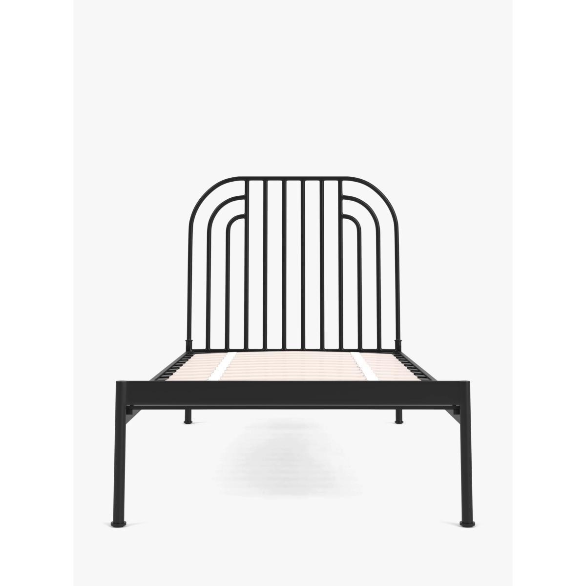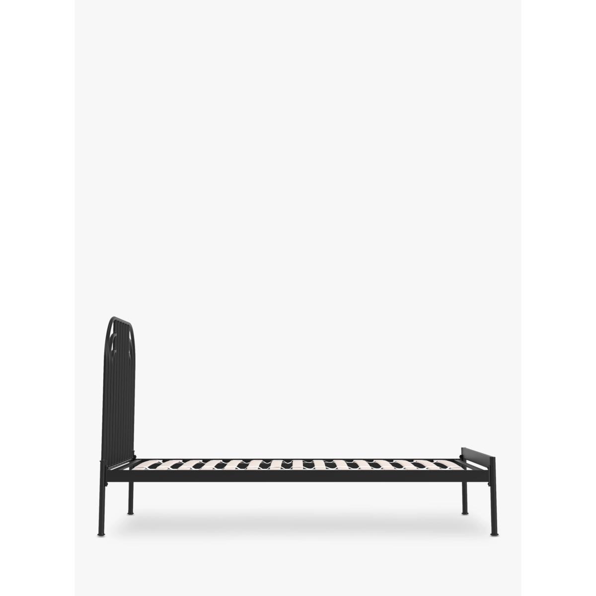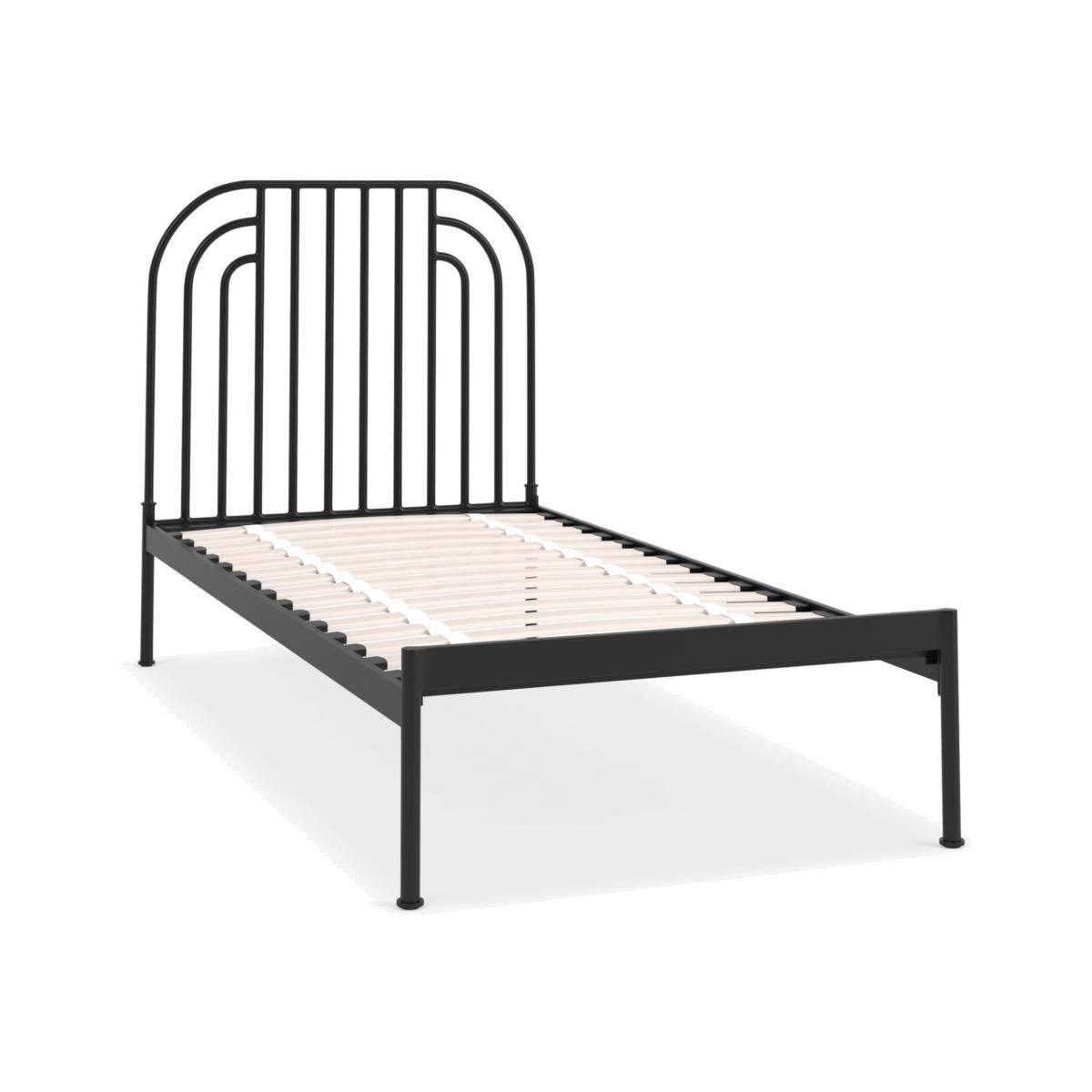 A single-sized frame of our popular Swirl bed, perfect for adding a decorative accent to smaller rooms. It's made from sturdy steel with a swirling pattern on the headboard: a style which evokes an age of Art-Deco opulence but fits right back into modern settings thanks to its on-trend black finish. The base features supportive sprung slats. Want to see it first? You may want to see and get a feel for the furniture in one of our shops before ordering. We'll be able to tell you where the range you'd like to view is on display. With great prices and great design, our new brand offers style and quality for modern living today. Whatever you need, there’s joy to be found in.