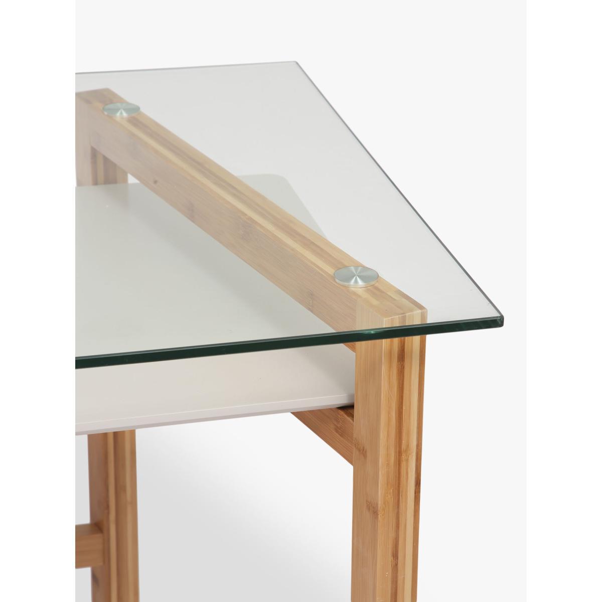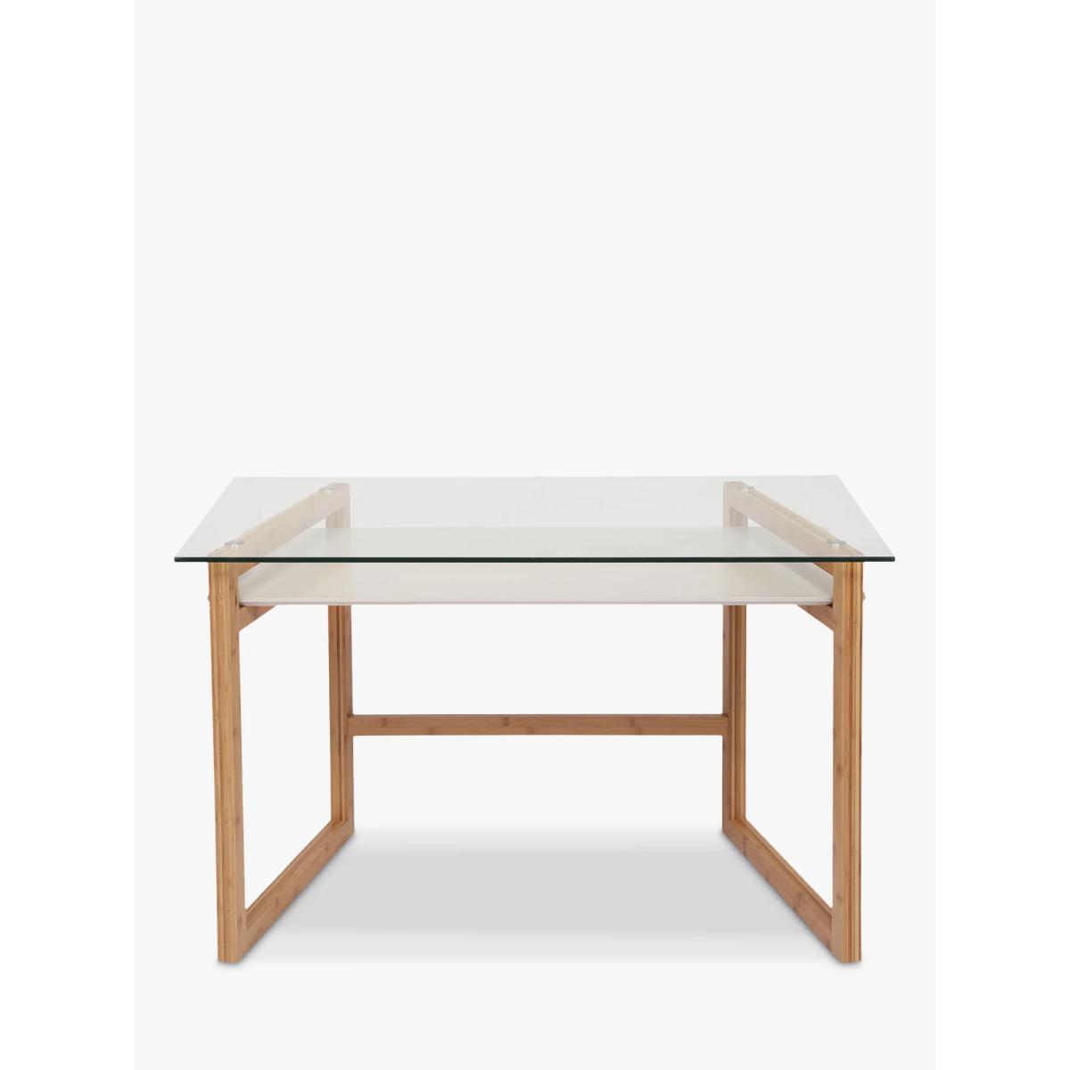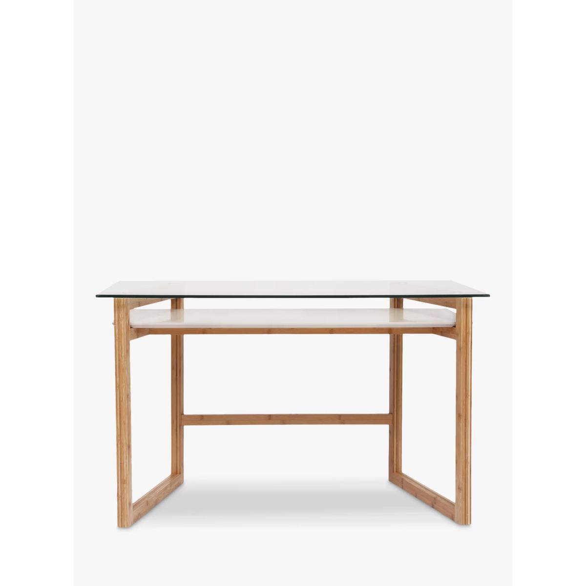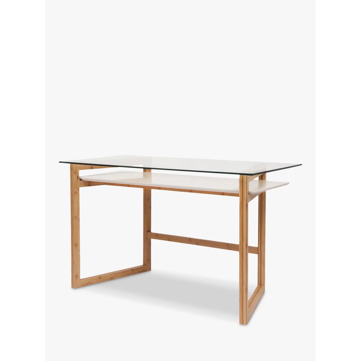 Embrace minimalist design in your home office to keep your space feeling calm and uncluttered. Our Trapeze desk is made from a combination of robust materials, including natural bamboo, MDF and glass. It's impressively sturdy and functional and we've added an open shelf section which is ideal for storing paperwork and documents. More about bamboo Bamboo is the world's fastest growing plant, so it's considered to be one of the most renewable and readily available raw materials in the world. It's incredibly durable and lightweight and can be re-harvested every 3-5 years, in comparison to certain hardwoods that can only be harvested every 50 years. Want to see it first? You may want to see and get a feel for the furniture in one of our shops before ordering. We'll be able to tell you where the range you'd like to view is on display. With great prices and great design, our new brand offers style and quality for modern living today. Whatever you need, there's joy to be found in ANYDAY.