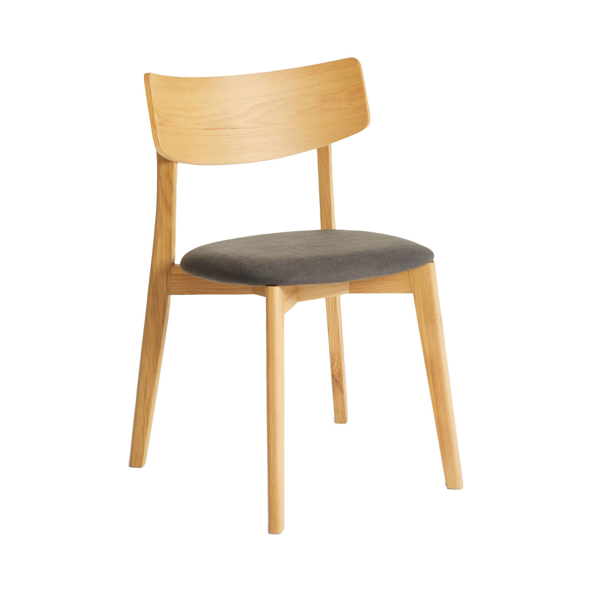 The curved back rest of these dining chairs cocoon your back for a comfortable and supportive sit. They're supplied as a pair and made from high quality solid oak and plywood for a not so premium price. A lacquered coating ensures their durability and the fabric seat is easy to wipe clean.