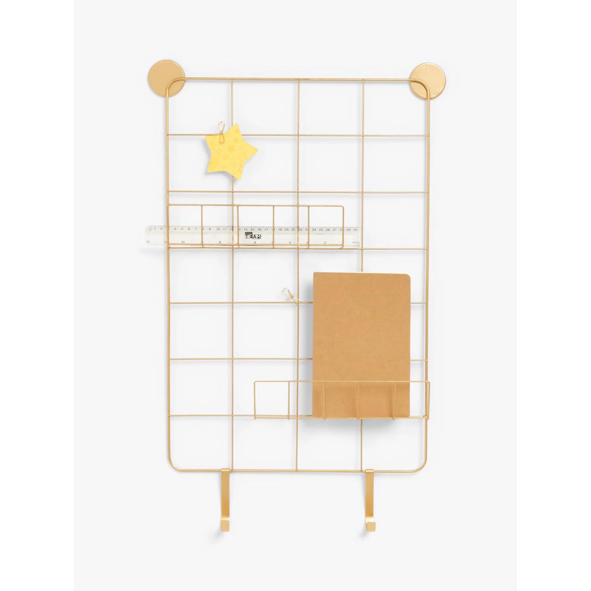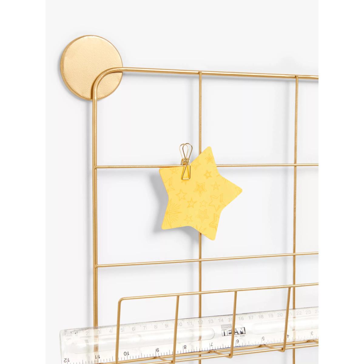 ANYDAY John Lewis & Partners Wall-Mounted Metal Wire Rack & Noticeboard, 60 x 43, Gold