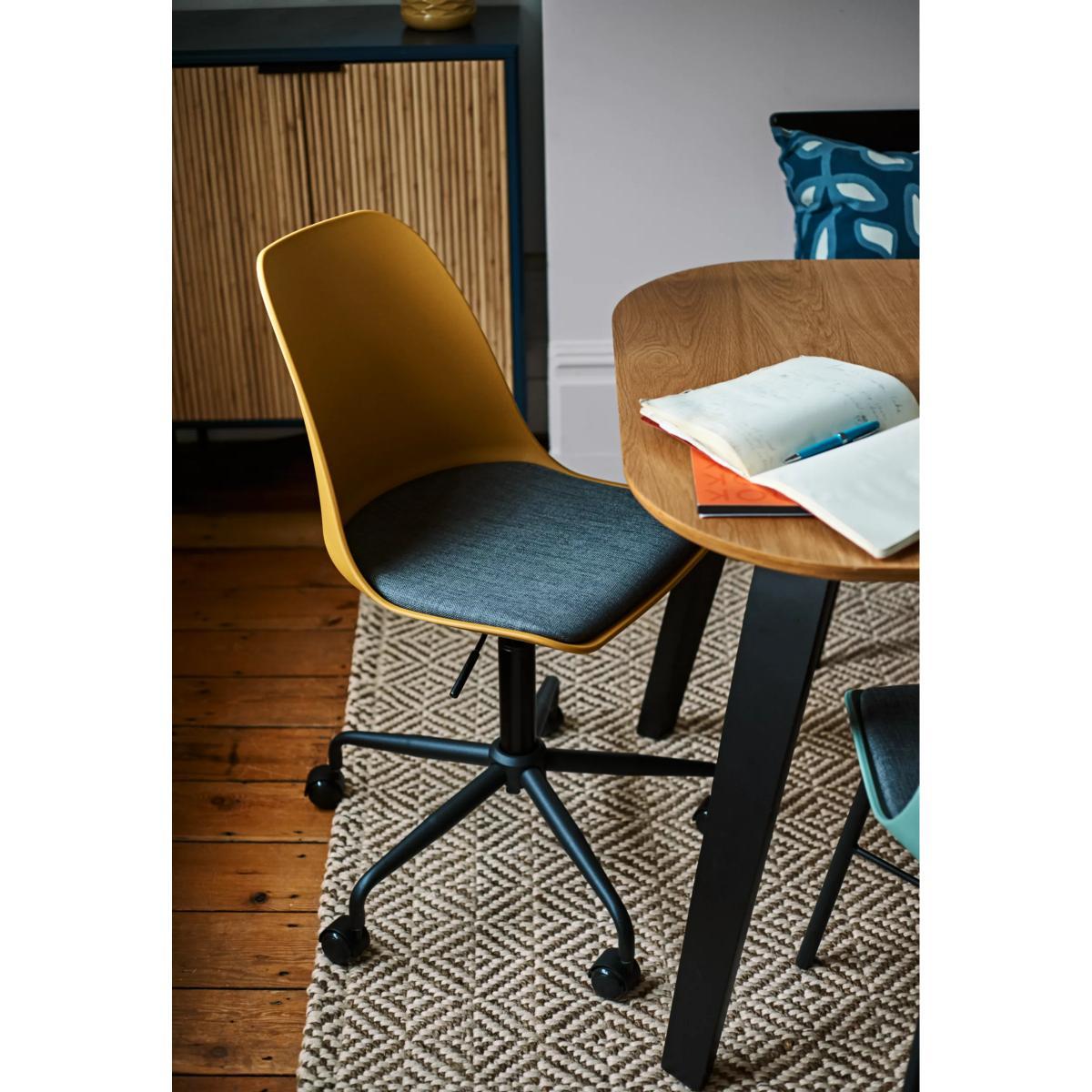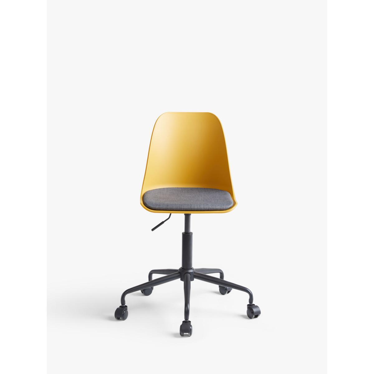 This office chair is a comfortable and great-value seating solution, suitable for short periods of work at your desk. The shell seat is made from injection-moulded polypropylene and we've added a fixed fabric seat pad. It's height-adjustable, and two of the wheels are fitted with a brake for extra stability. Available in neutral or bold colours to complement your home office. Protect your floor While this chair is suitable for the flooring specified, we suggest using floor pads or mats where possible, for added protection to your flooring and furniture. Want to see it first? You may want to see and get a feel for the furniture in one of our shops before ordering. We'll be able to tell you where the range you'd like to view is on display. With great prices and great design, our new brand offers style and quality for modern living today. Whatever you need, there’s joy to be found in.