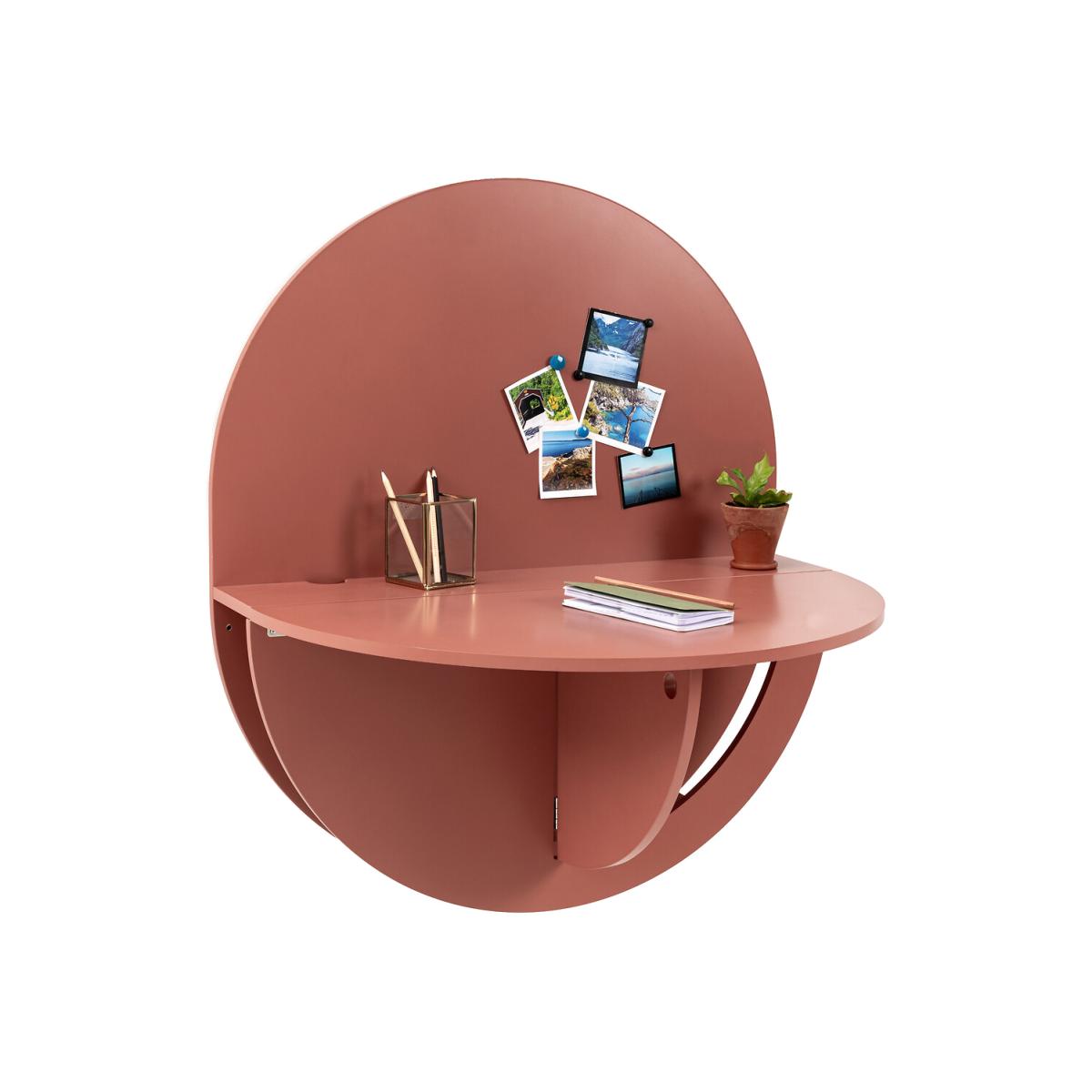 The Anzio hidden desk is part of our Les Ingénieux collection. Creations full of ideas to make life simpler and everyday life more beautiful. Need an office desk but don't have a lot of space? You need the Anzio wall desk, with a rounded design inspired by the '60s. Why you'll love this product • To be fixed to the wall. Foldable, to create an on-demand workspace • Storage compartment under the desktop: to store all your documents • A magnetic background: to place your “to do list” there. Product Details • Folding wall desk • In epoxy-finish steel and acrylic-finish lacquered MDF • Storage compartment under the desktop • Magnetic background (for use with magnets) • Cable hole • Wall fixing (screws and plugs not supplied)Dimensions. Overall • Length: 80cm • Height: 92cm • Depth (unfolded): 57cm • Weight: 17.1kg. Usable space • Depth (Folded): 19.3cm • Height of magnetic support: 52cmDelivery:. This product is sold ready to assemble. Note! Please check that all access points are large enough to accommodate your delivery (doors, stairs, lifts).Dimensions and weight of parcel1 parcel • L106 x H9.5 x D87cm. 18.9kg