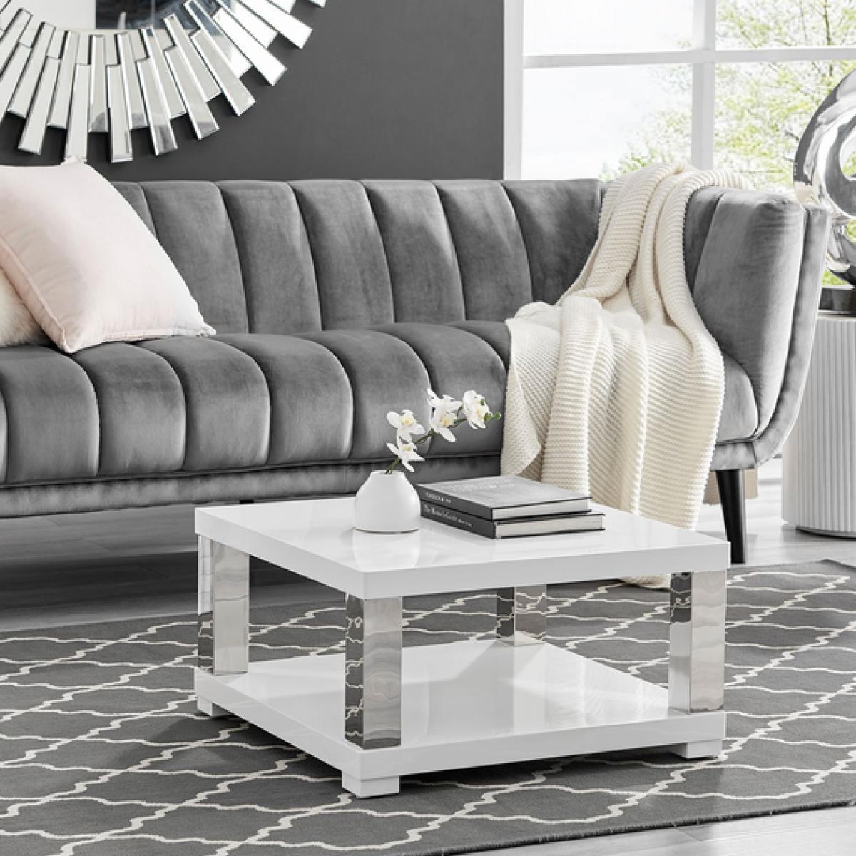 Anzio Square High Gloss and Chrome Coffee Table - White / Yes / Limited assembly