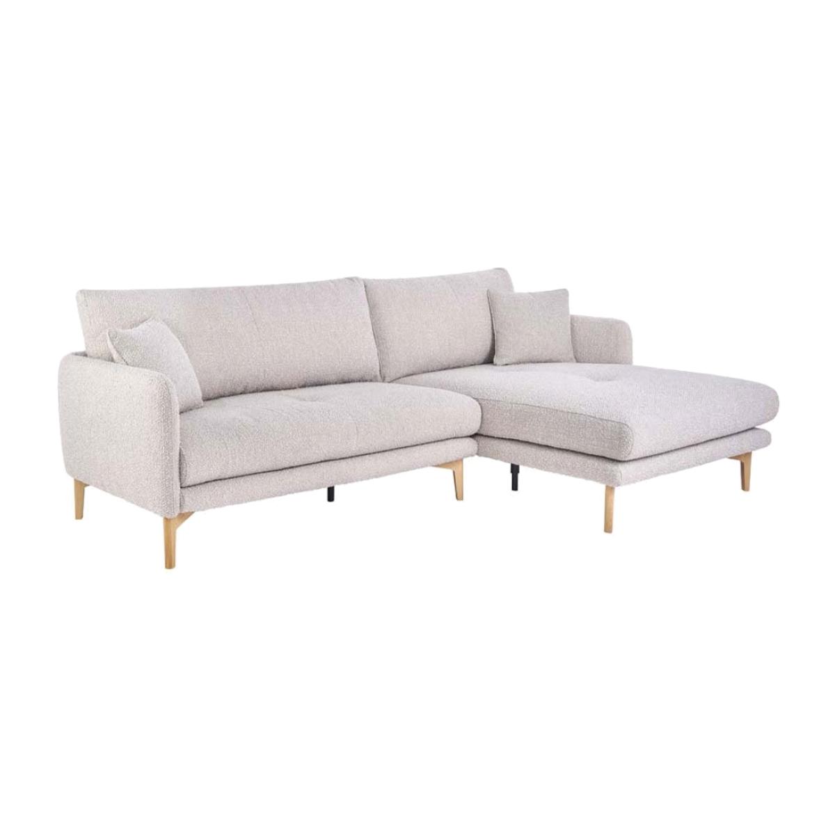 The small Aosta right hand facing chaise brings comfort and elegance to your living room. The refined oak legs and textured fabrics are availabe in different colours.