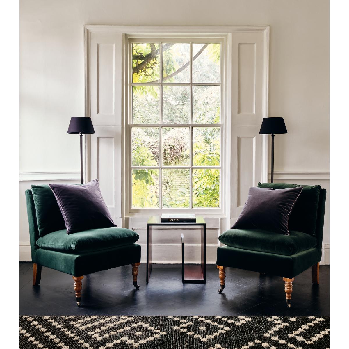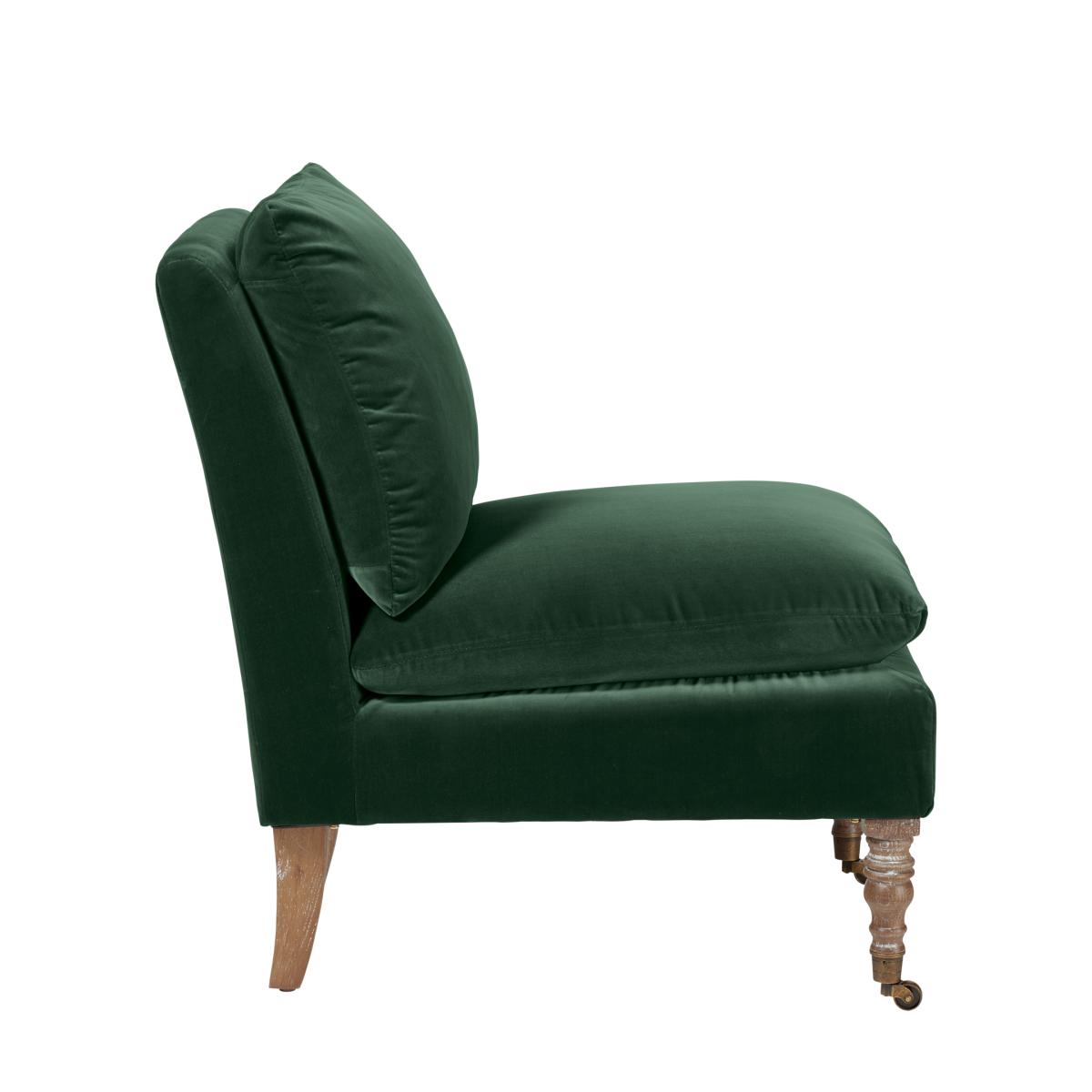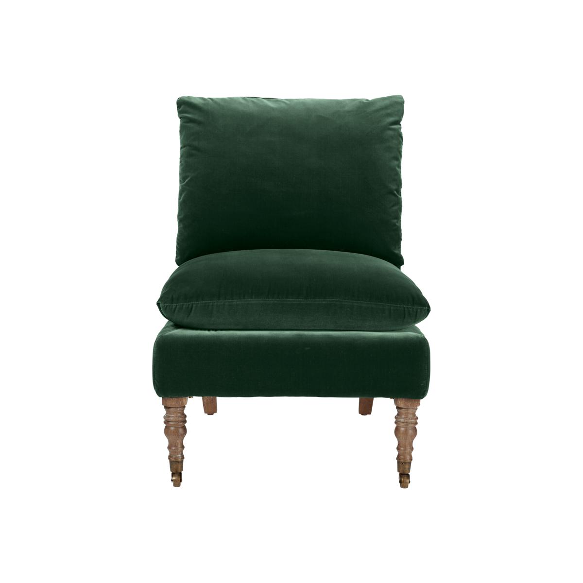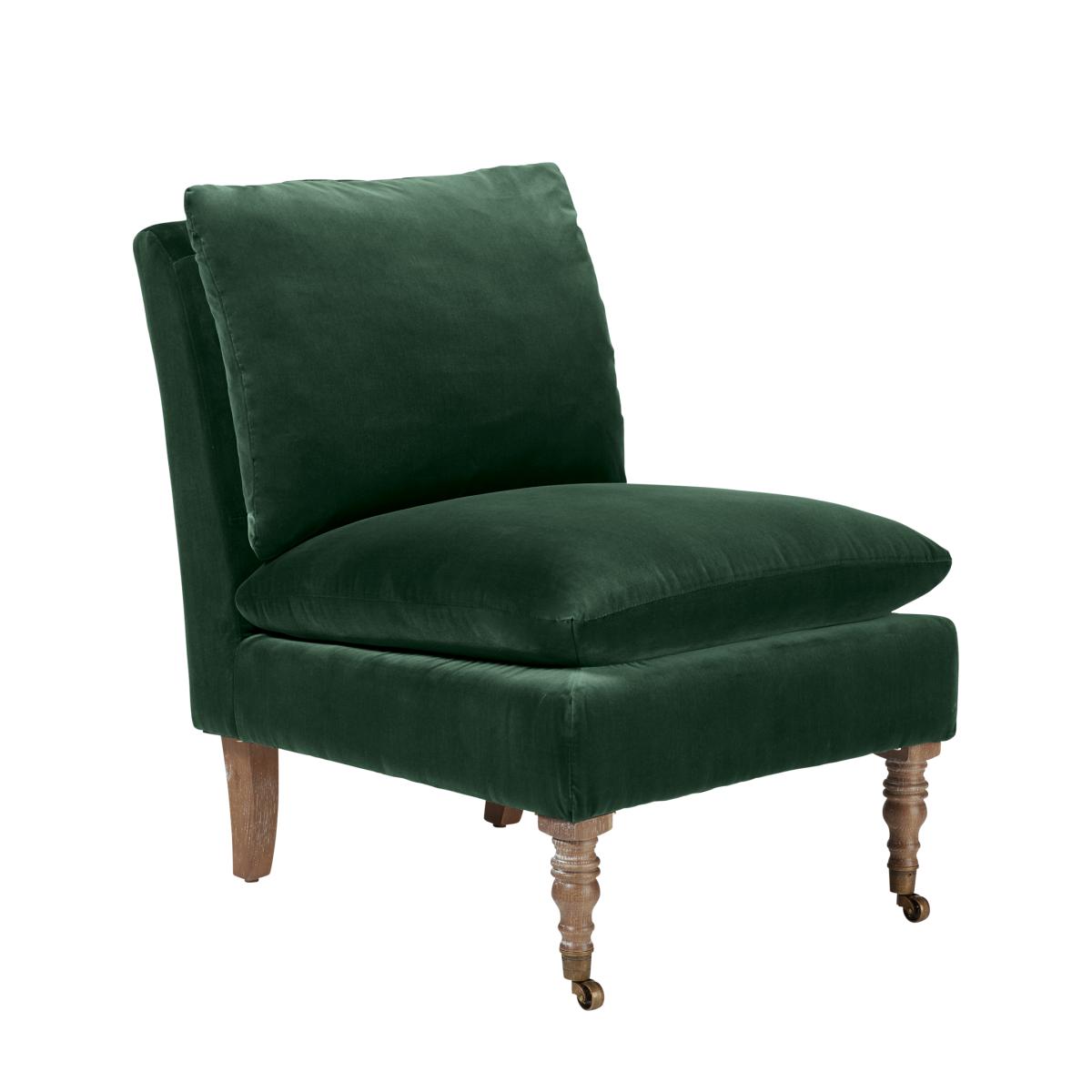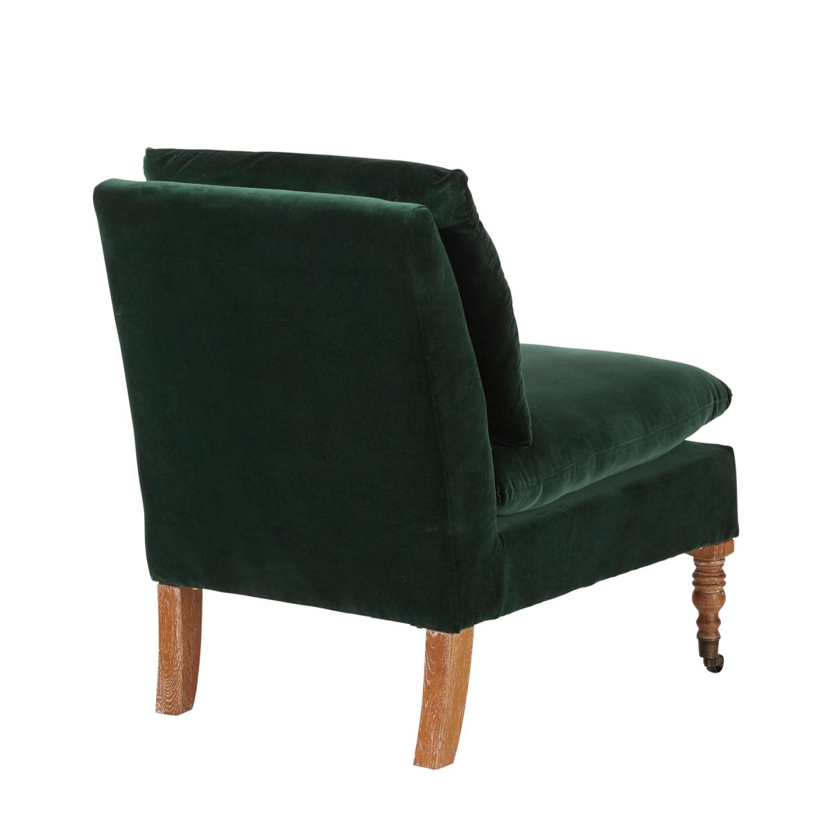 I love this chair for its rich midnight green hue, which adds a sophisticated pop of colour to any space. It works particularly well in eclectic, modern, or boutique interiors where a bold accent is desired. The armless design and plush cushioning make it both functional and comfortable, perfect for creating cosy reading nooks or as a statement piece in a living room or bedroom corner. To style it effectively, consider pairing with neutral or metallic accessories to let the colour stand out, and add textured cushions or throws for a layered, inviting look. Its versatile size also means it can fit seamlessly into smaller spaces or be used alongside other statement furniture pieces.