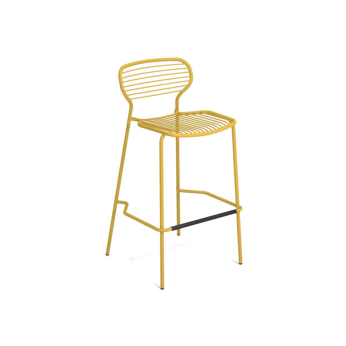 A graphic, contemporary style for this elegant high stackable stool. Thanks to EMU's expertise in shaping metal, the steel tube seat and backrest offer visual lightness and a continuous, slender silhouette. The horizontal and vertical lines give rise to a play of light, casting their shadows on the surrounding surfaces. The minimal, graphic appearance of the Apero high stool means it can discreetly adapt to any type of space and style. With more than fifty years’ experience in metalworking, Emu expresses its style in gardens and on terraces all around the world. Emu creations have become icons in the world of "made in Italy" design and quality. Emu carries out and controls all the stages of production within its factory in Marsciano, in the heart of Umbria. All phases of the production process are subject to rigorous checks.