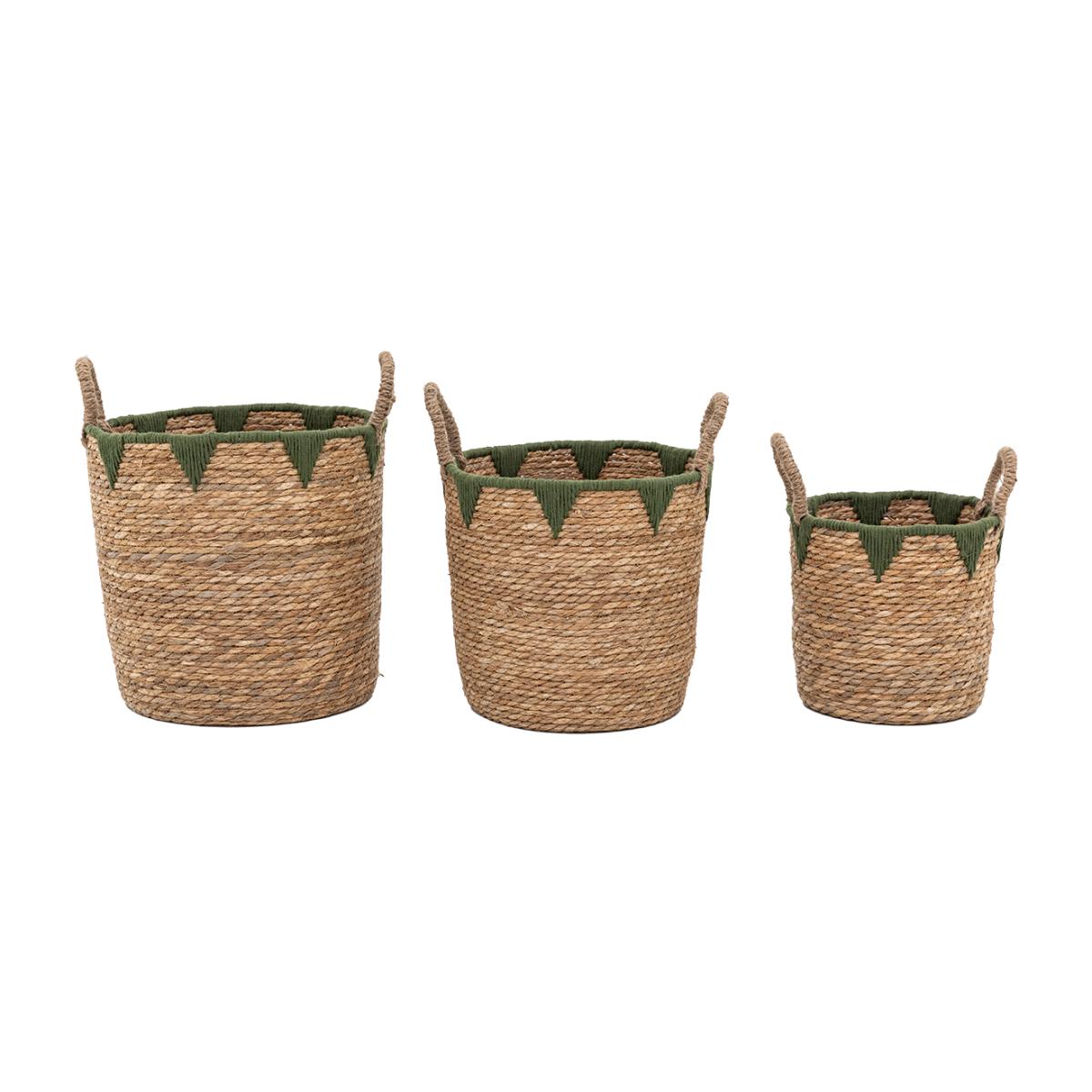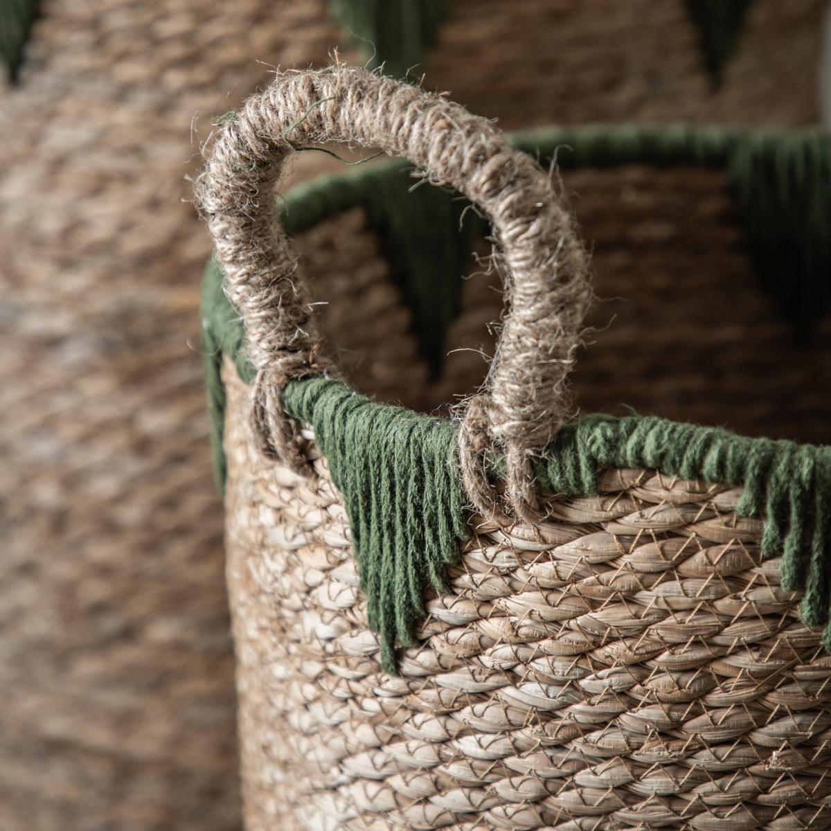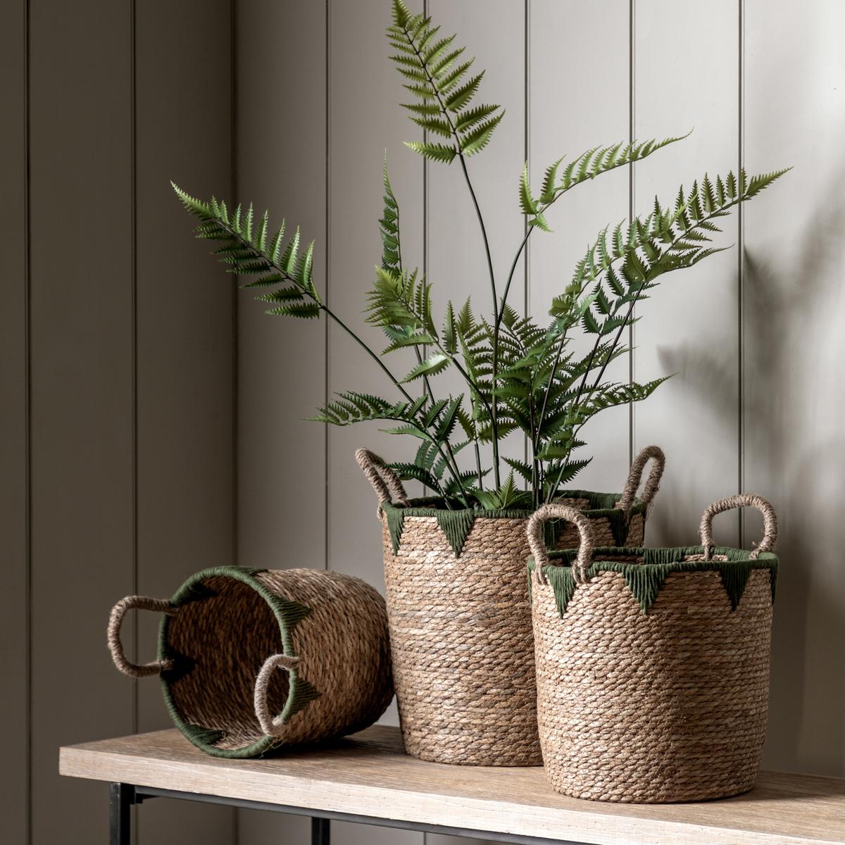 These baskets are excellent for adding texture and a natural touch to any space. I love how versatile they are-you can use them for storage in living rooms, bedrooms, or bathrooms, making everyday organisation stylish. Their neutral tones with a pop of green make them ideal for both modern and rustic interiors. For practical styling, try grouping the set on a shelf or under a side table to create visual interest, or use them to corral baskets of toys, throws, or even plants for a cohesive look. They're durable yet decorative, offering function without compromising on style.
