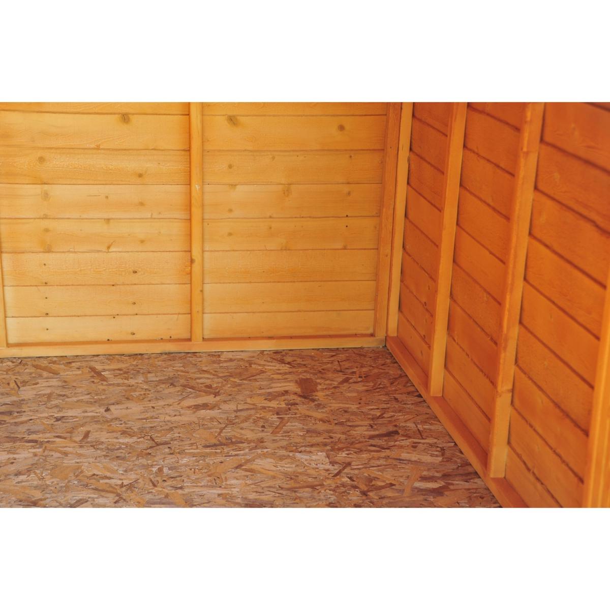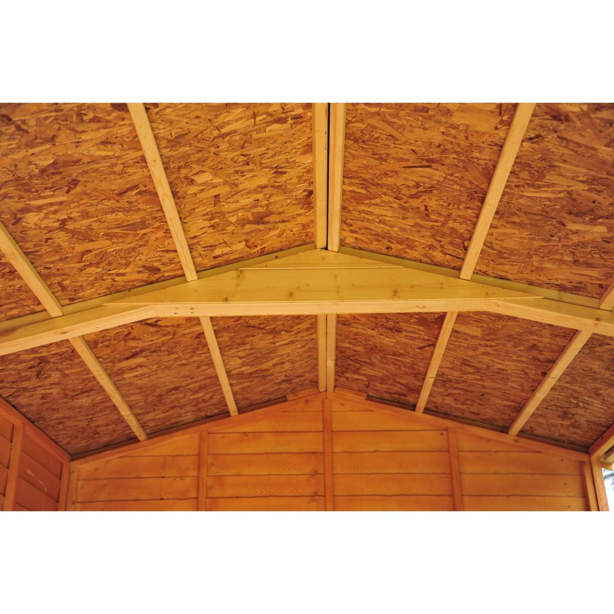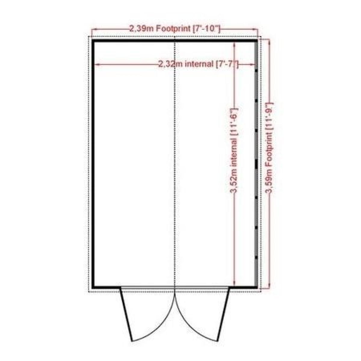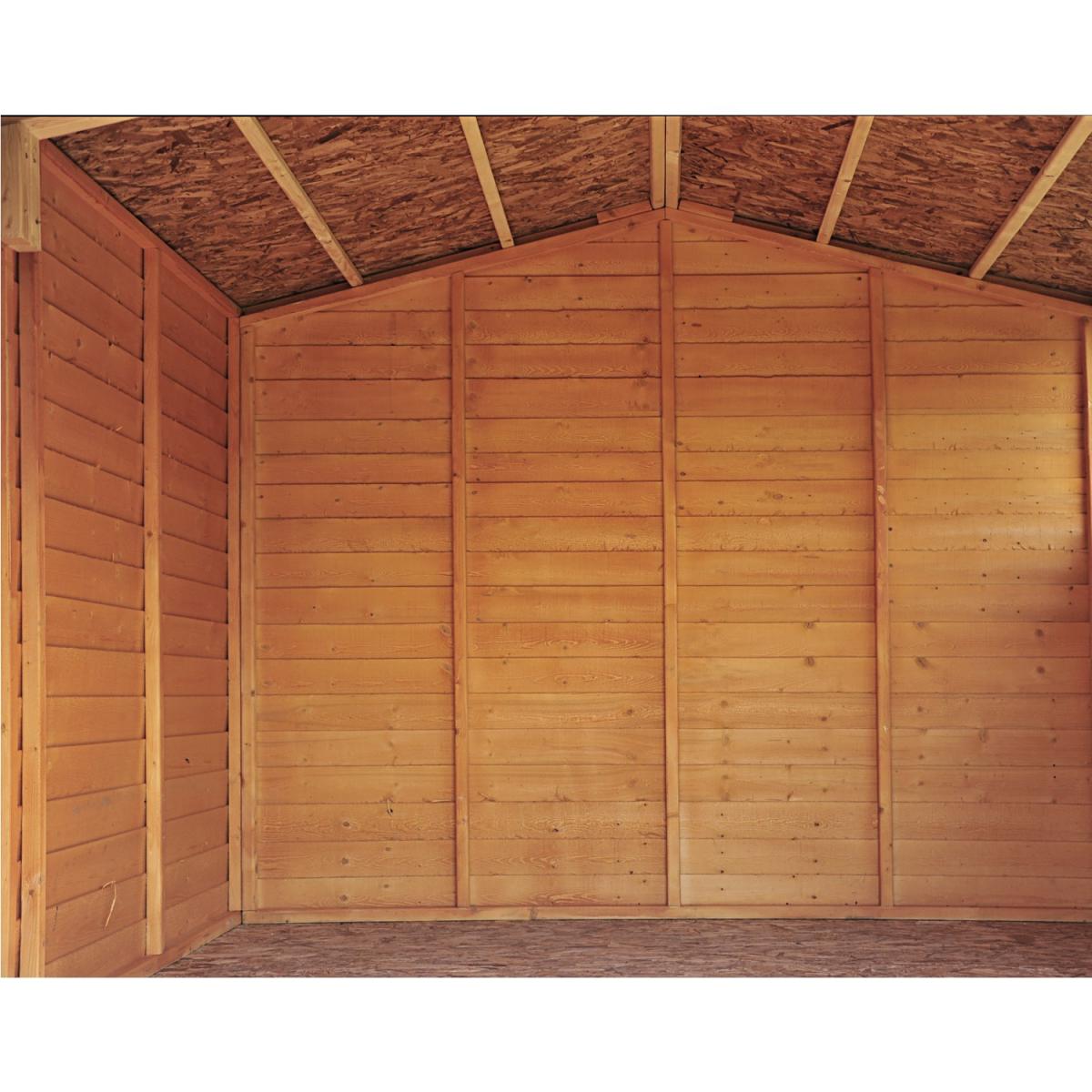 . Please note We are unable to deliver to Ireland (NI and ROI). Apologies for any inconvenience. Dimensions H210cm x W239cm x D359cm. The 12' x 8' double door overlap apex shed is a useful addition to any garden. The double doors in the 6' Gable and generous eaves height allow very easy access to the entire space. It is manufactured from high grade slow grown FSC approved European pine cladding boards over 34mm square framing. For extra security there are no windows in this model. The doors are fitted with a hasp and staple catch ready for your own padlock. Both roof and floor are constructed from solid sheet OSB. The building is dip treated with a basecoat ready for top coating by the customer immediately on installation. All fixings mineral roof felt and assembly instructions are provided. Following your order you will be contacted to select a delivery day and we can help with base information too. When measuring allowance should be made for the roof overhang and for access around the outside during subsequent treatment. For critical dimensions use the metric values; imperial dimensions are rounded for description only. On the morning of delivery you will be sent a live tracking link. Features. FSC certified timber. Overlap pine boards. Made in Britain from high-grade pine. Attractive rustic appearance12-month guarantee. Assembly required..