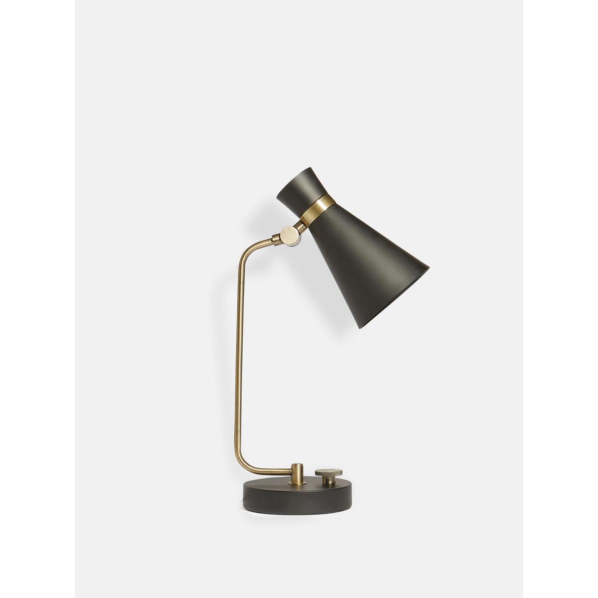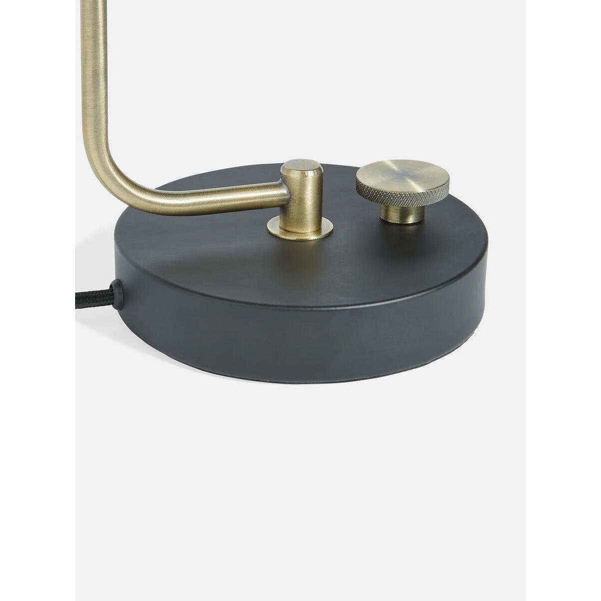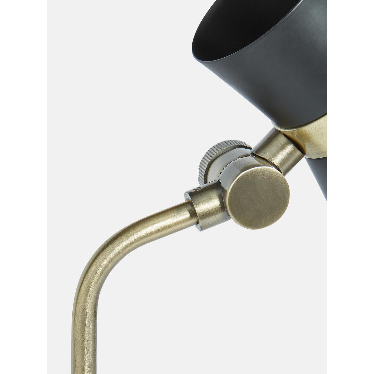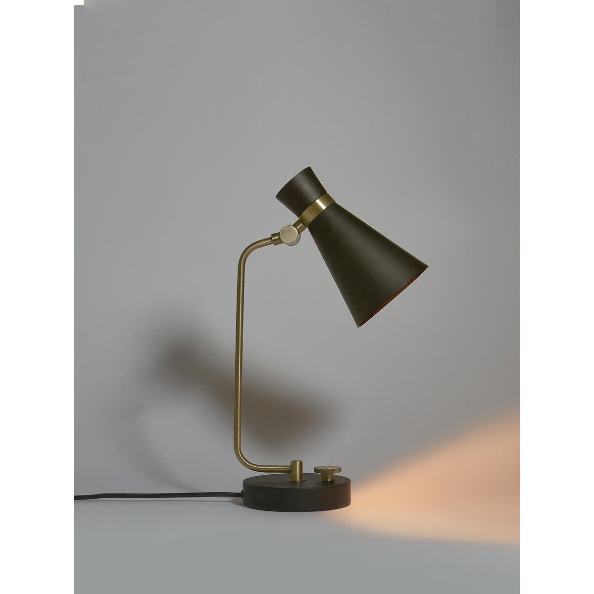 French 1950s Mid-Century style table lamp. Shade on adjustable arm. Powder coated black finish. Antique brass fittings and dial dimmer switch on base. Inspired by a vintage-style lamp in Soho House Berlin.