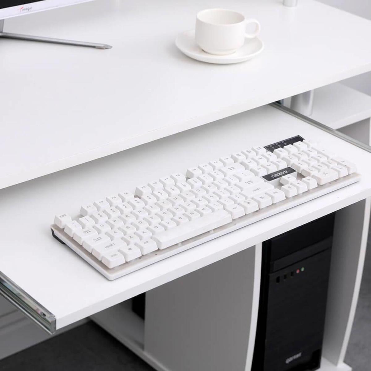 Part of our Home Office Collection, our Apollo Computer Desk has more storage and working space of all our furniture. You can even store your printer and phone neatly on top, as well as your laptop, PC monitor and your paperwork as the top is 120cm wide. The pull-out push in keyboard shelf underneath the main desktop means you can even store away your keyboard too. There are multiple storage spaces. There are 2 drawers with silver metal handles on the left of this twin pedestal desk - these are perfect for documents, odds and ends like batteries, cables and memory sticks. Store files, reams of paper or even a computer hard drive on the 2 open spaces on the right hand side. You even have extra side spaces for grab-n-go stationery items.