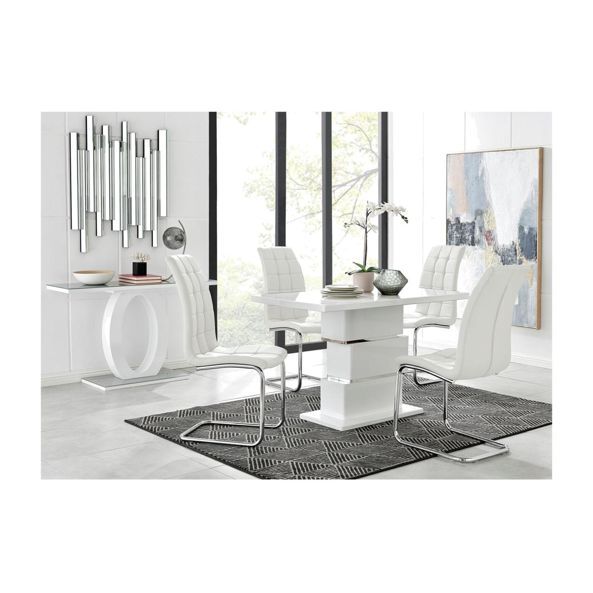 Apollo 4 Rectangle Chrome High Gloss Kitchen Dining Table And 4 Murano Chairs - White