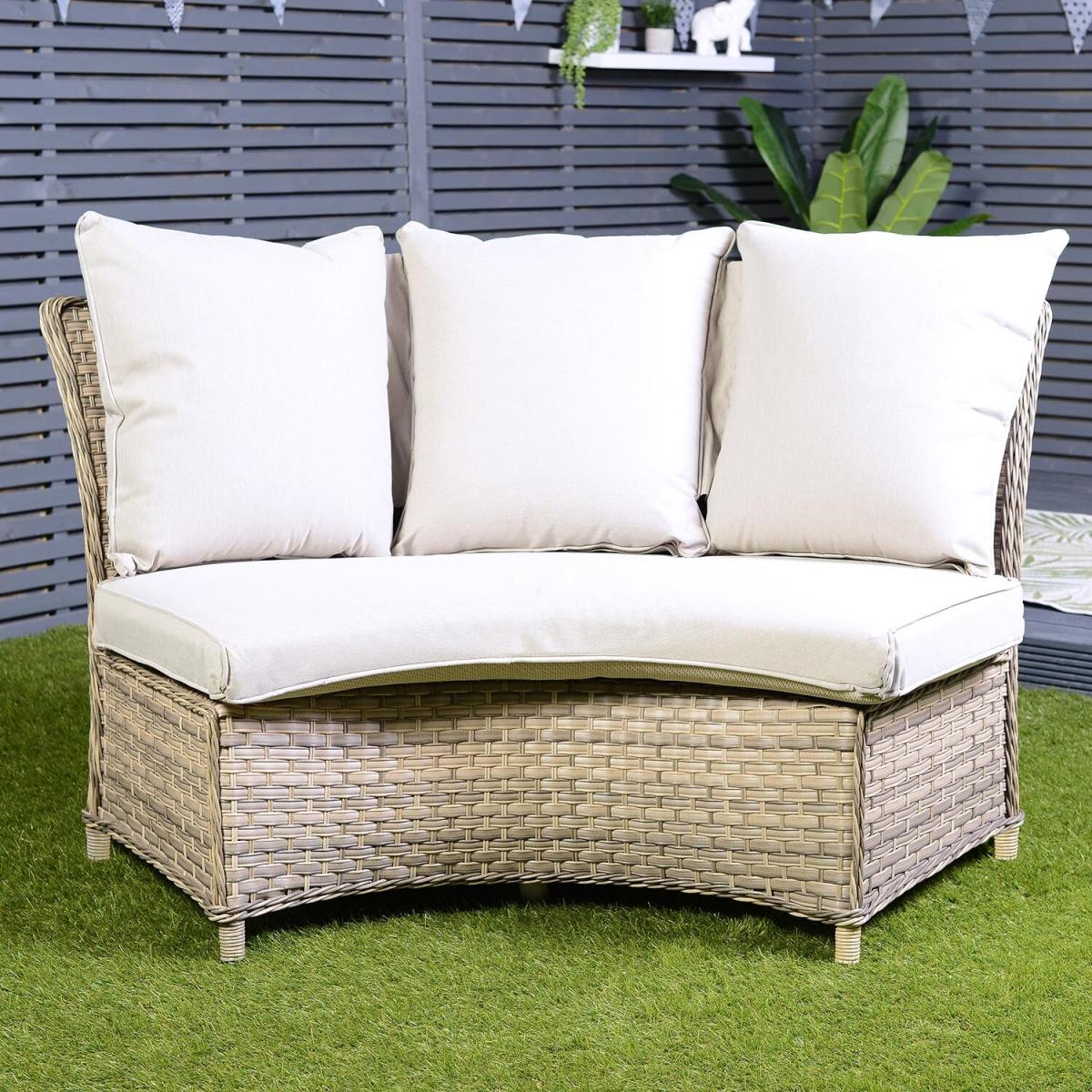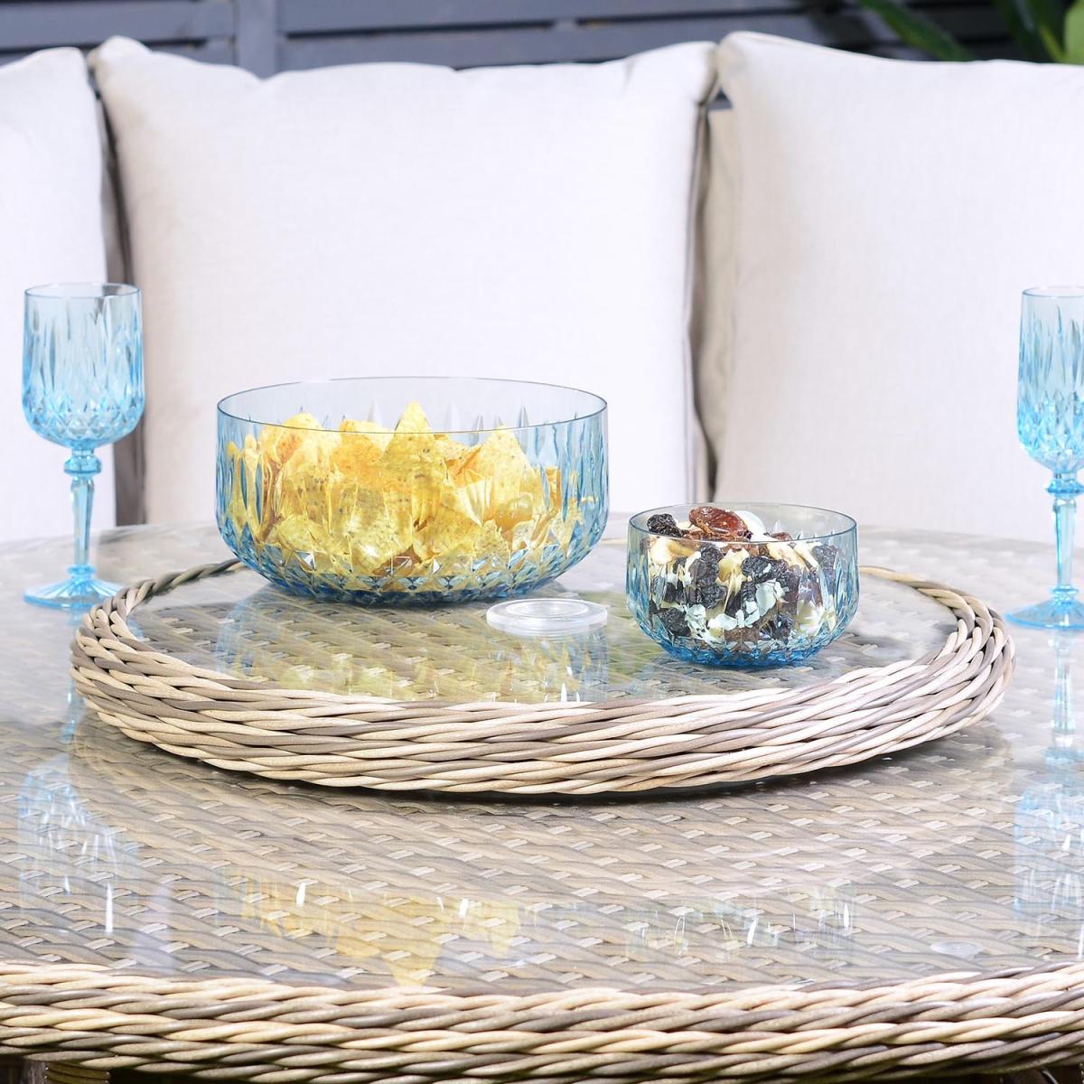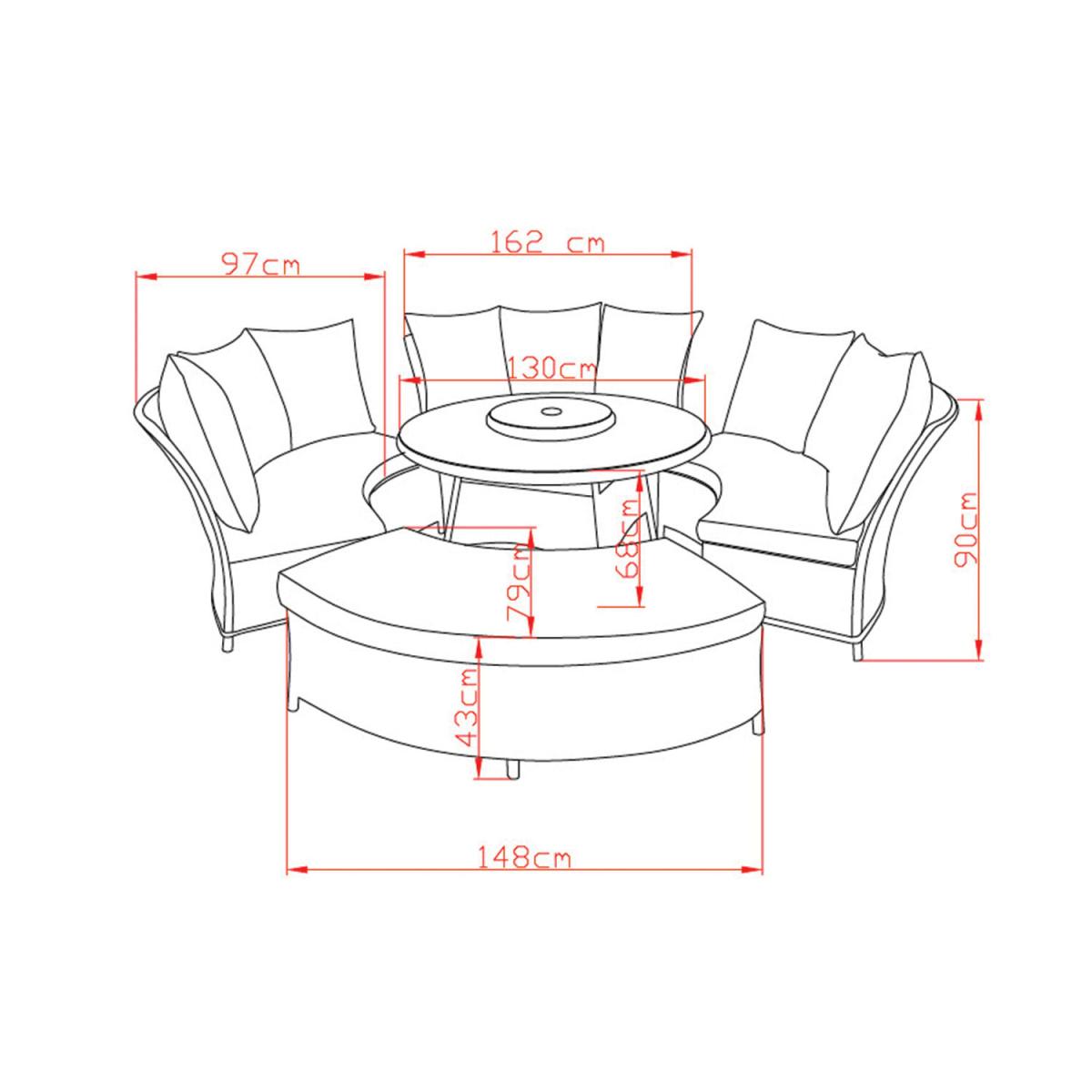 This luxuriously comfortable Apollo 5 Piece Round Lounge Set is the perfect addition to your garden, helping you to sit back and relax in style. Crafted with an aluminium frame resistant to rust, the table and chairs set is finished with wide, flat wicker and mixed woven round wicker for a rustic effect that will look stunning on any patio or situated amongst the grass in your garden. The soft, sumptuous seats are covered with fire and waterproof coating for your convenience, whilst the spacious table features a lazy susan to help you easily serve drinks and food. The stunning natural cream finish brings a light air to your outdoor space, helping you feel relaxed and comfortable when hosting BBQs, garden parties, and more.