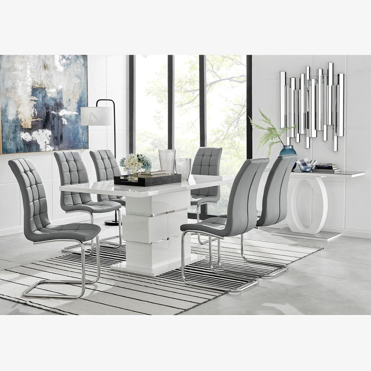 Want a dining table that really makes a statement Then look no further than the stunning Apollo high gloss dining table. The slick white high gloss base and table support creates a stunning aesthetic, whilst two lustrous bands of chrome metal add a unique finishing touch to the table design. Sitting on top of the support is a large 160x90cm white high gloss surface, which is very spacious and allows plenty of room for dining with guests. The high gloss surfaces are easy wipeclean allowing the table to look brand new for years to come! Exuding both quality and style this dining table really is a must have! The smooth contours of the hatched pad and the single seat design combine to create a flowing feel to the Murano chair. It is shaped to offer maximum ergonomic support, whilst the deep foam cushion makes it delight to sit on. Both inviting and sumptuous, the Murano is sure to be a strong contender in your quest for the right dining chair.