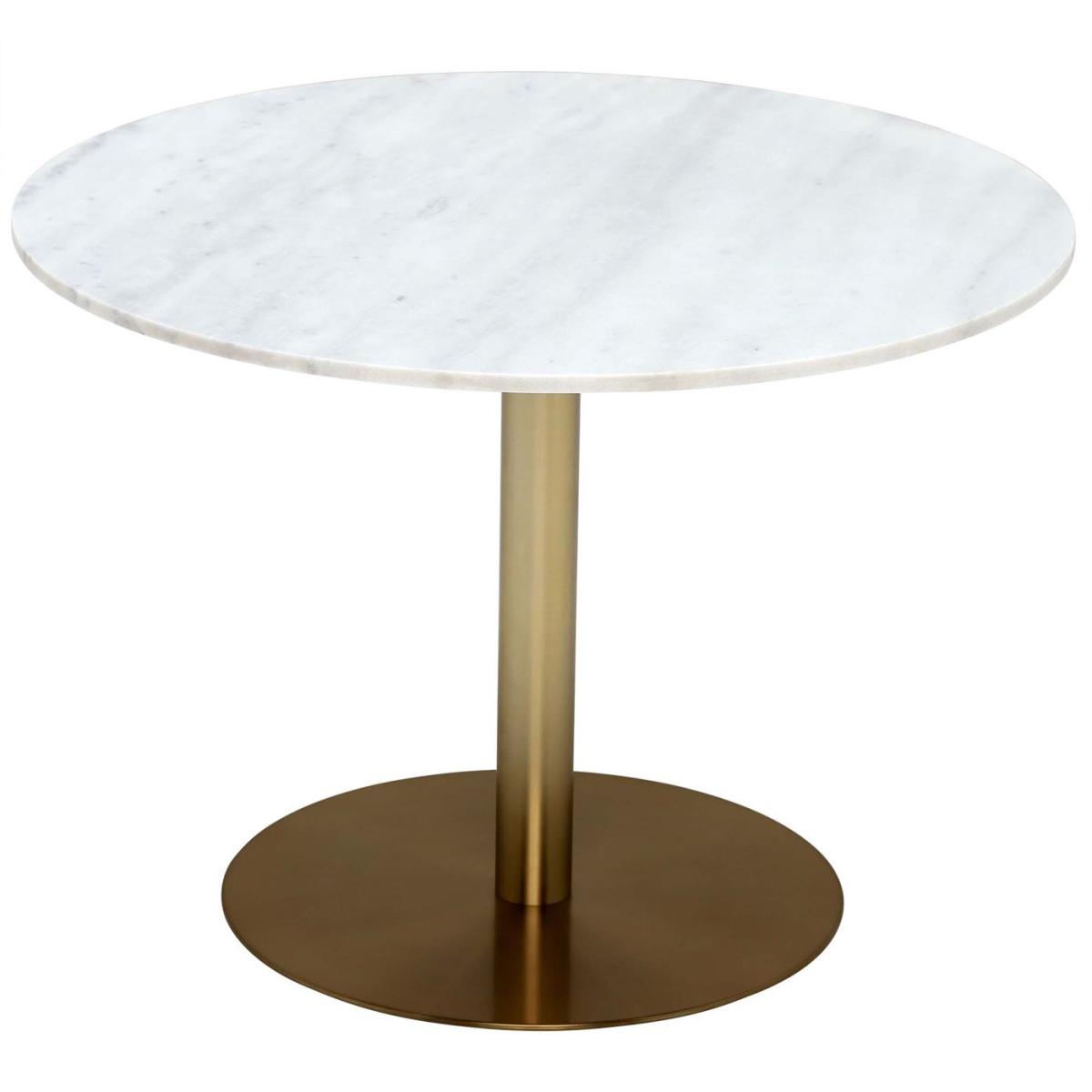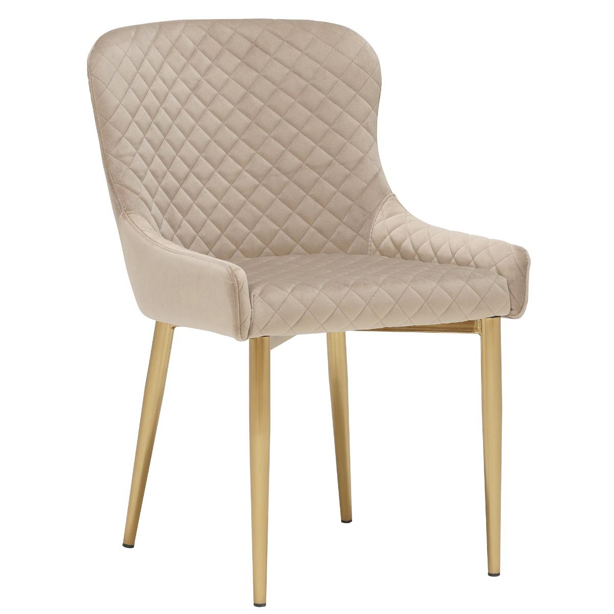 Meet the Round Marble 105cm Dining Table with a Brass Base and 4 Neutral Velvet Quilted Dining Chairs. A harmonious blend of elegance and comfort for your dining room. The white marble tabletop, paired with a brushed brass metal base, sets the stage for intimate gatherings. Accompanied by four taupe velvet chairs with a quilted stitch pattern and golden legs, this ensemble exudes mid-century charm. With dimensions of W105 x D105 x H75cm for the table and W51 x D60 x H82cm for the chairs, it's the perfect setting for a cosy 4-seater dining experience. Elevate your dining space with luxurious aesthetics and enduring style