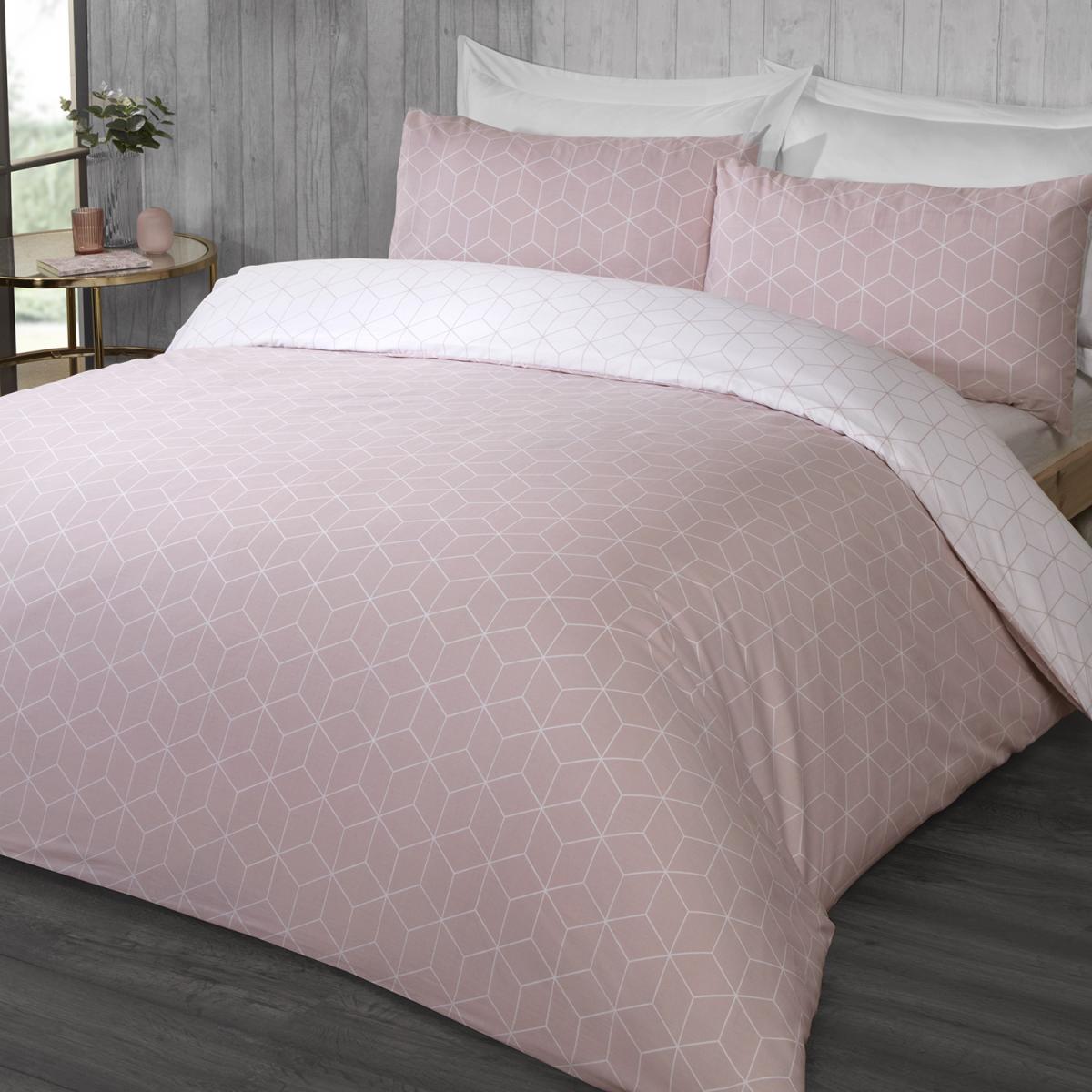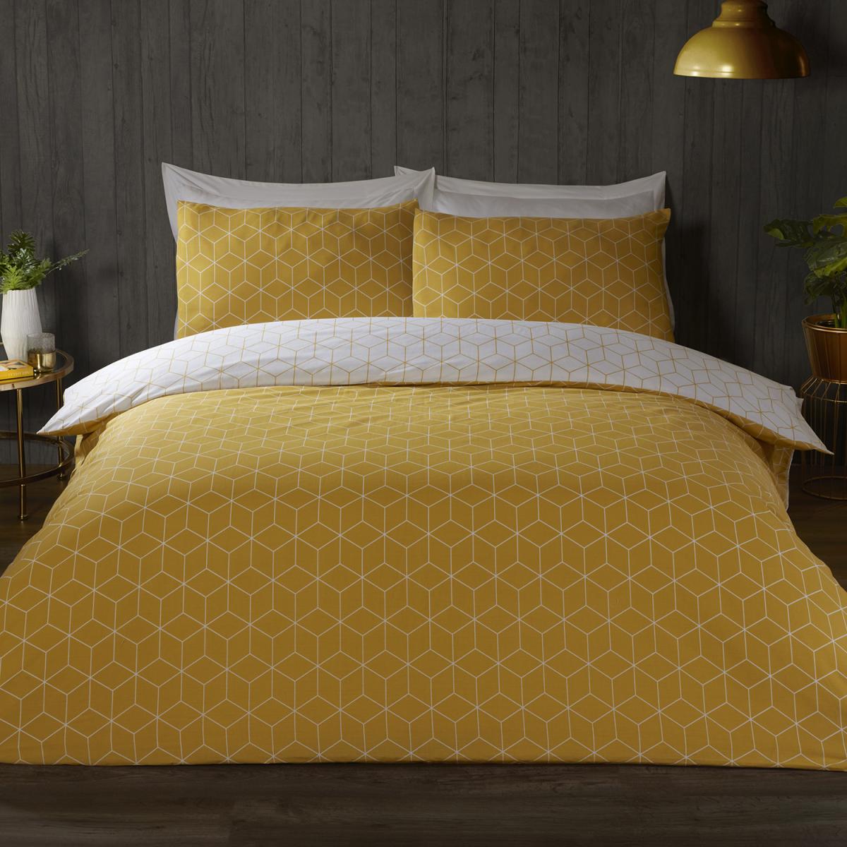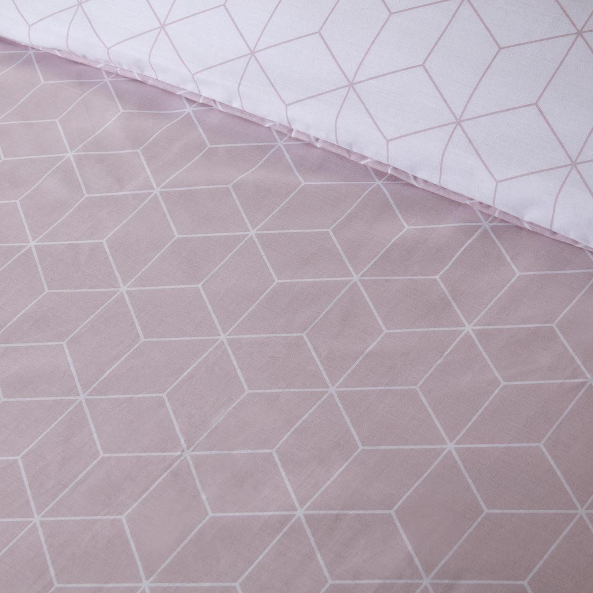 Give your bedroom an on-trend restyle with this Apollo Geo Duvet Cover and Pillowcase Set, displaying a modern geometric cube pattern in white atop a colourful base. The reverse of this stylish bedding set displays the same pattern printed in inverted colours and matching pillowcases help finish off the contemporary look.