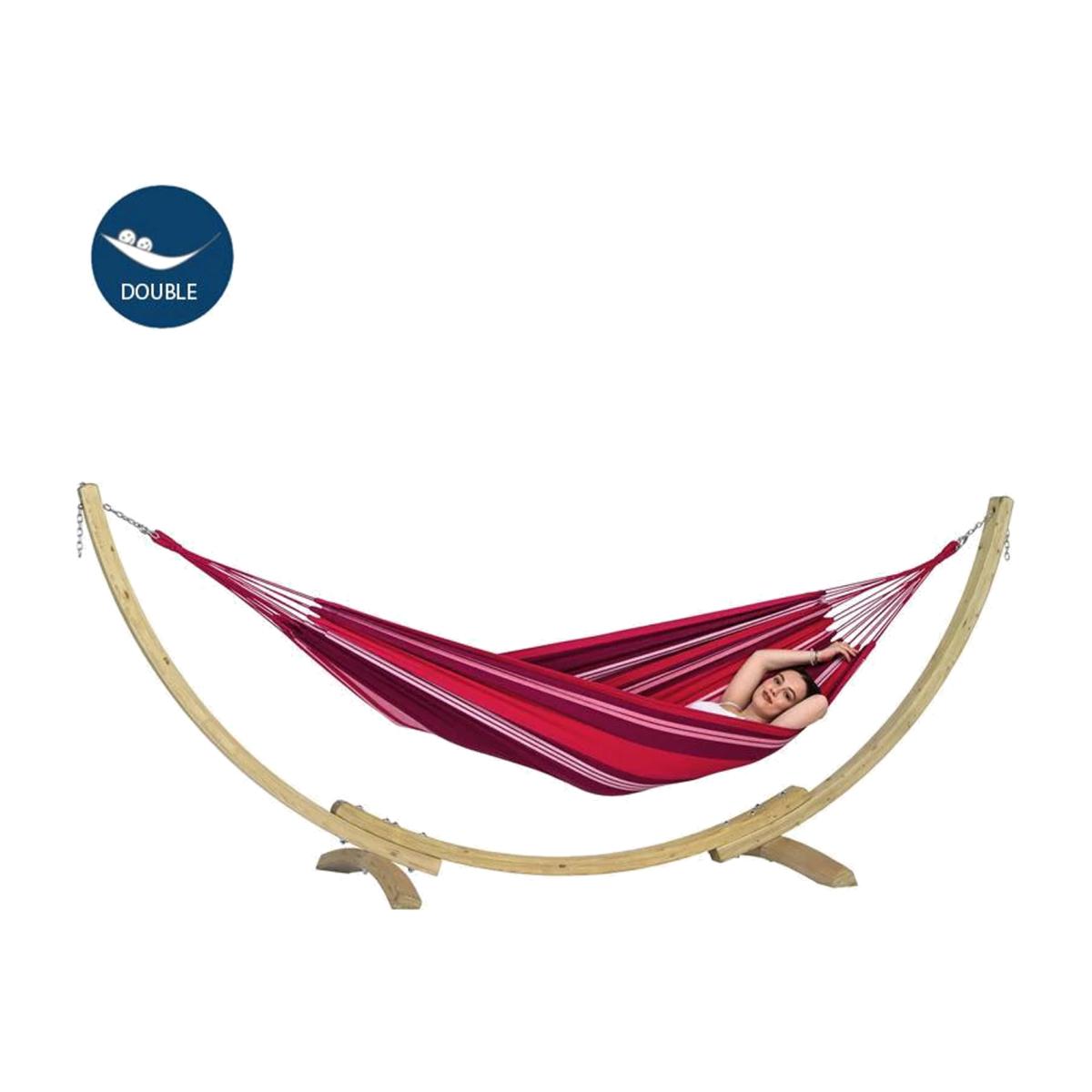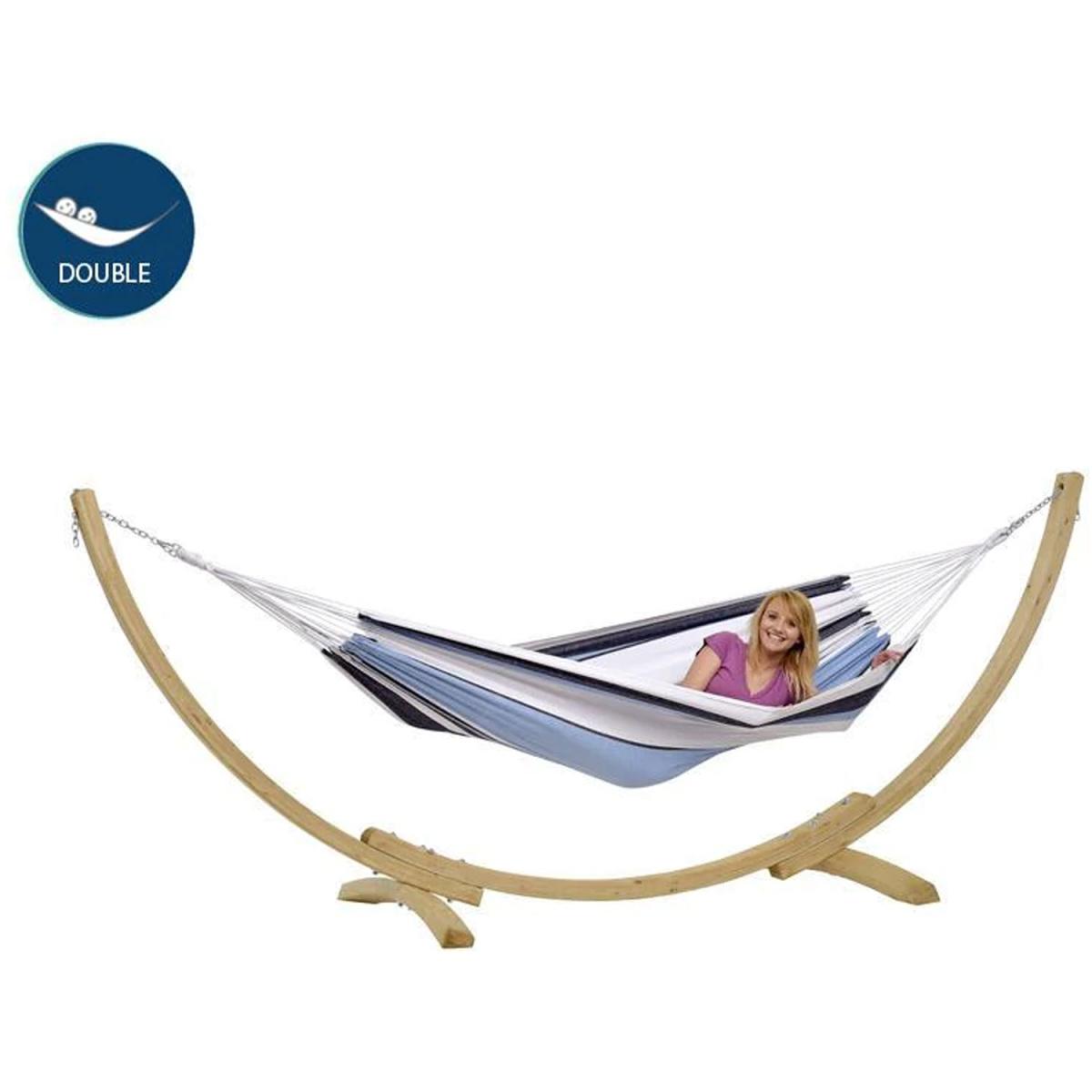 A stylish set featuring both the hammock and a gorgeous stand made from sustainable European Spruce. The rich contrast in colours provides perfect comfort and looks great. The Fuego Hammock is compact yet roomy (and very comfortable!). The Apollo Hammock Stand has been specially treated so it can be left outside even withstanding our typical British weather! A great quality combination of stand and hammock, the ideal classy centrepiece for your garden.