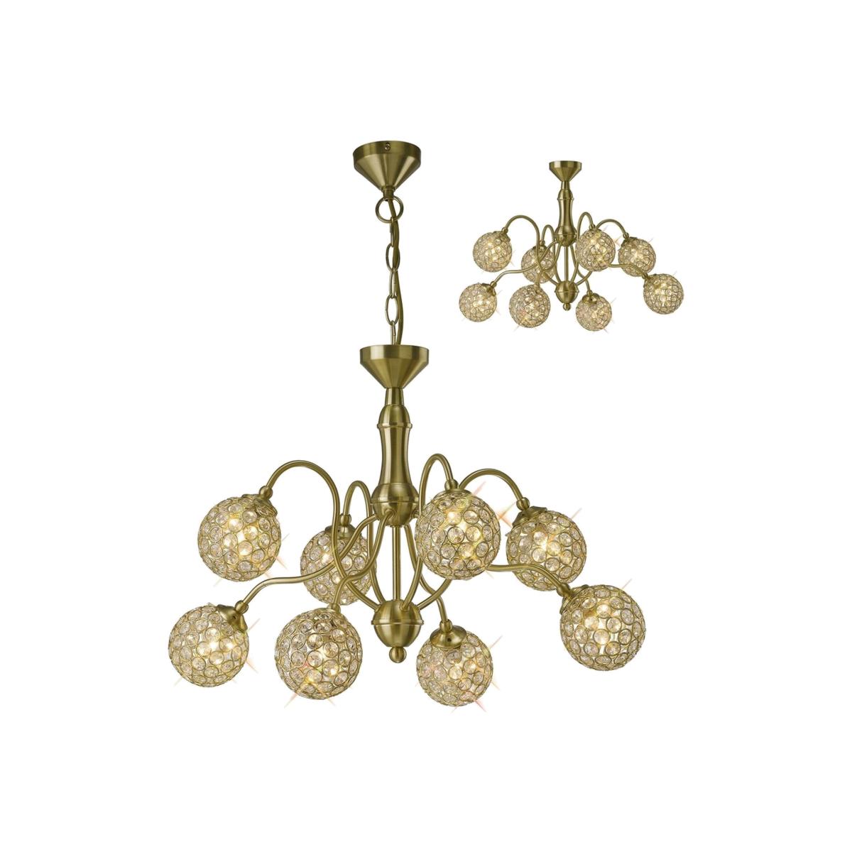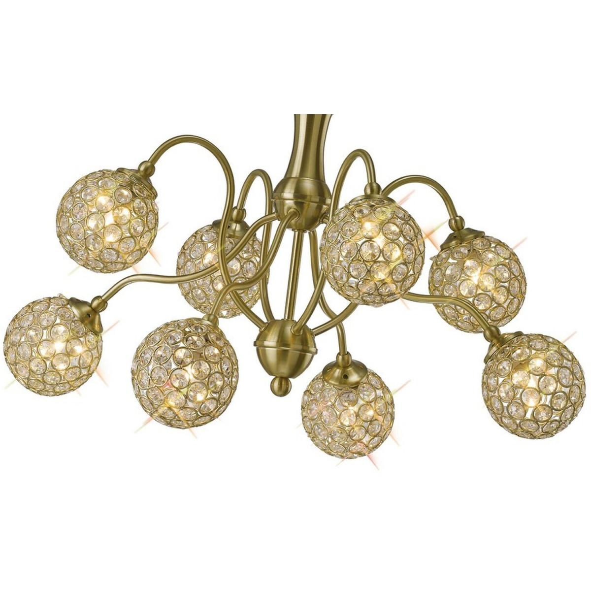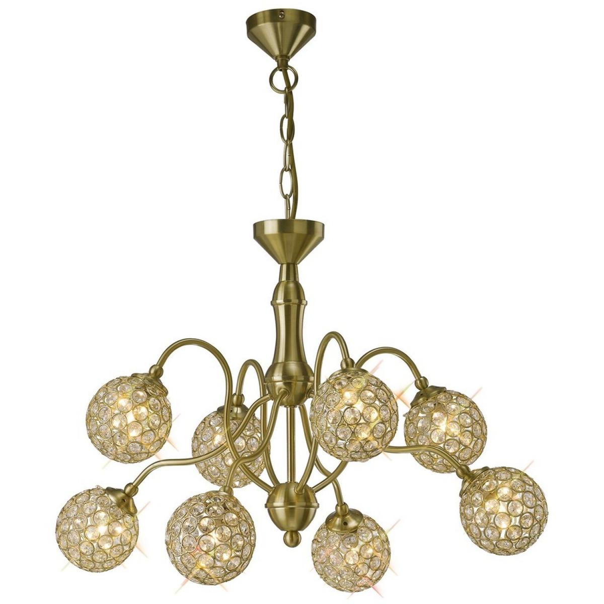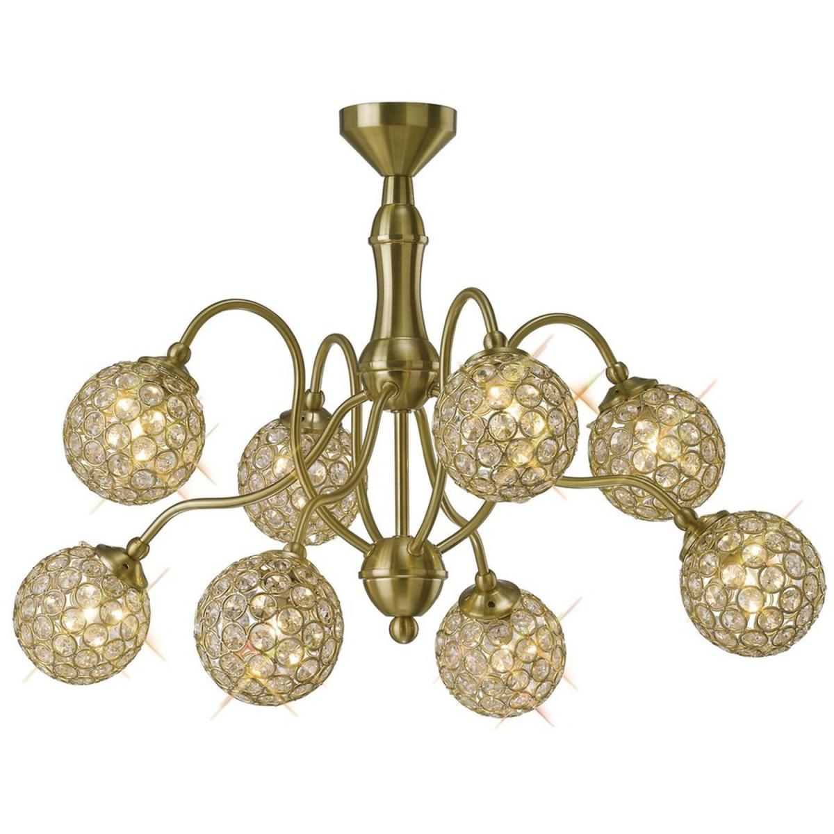 Apollo Semi Flush Ceiling Pendant 8 Light Satin Brass, Crystal - Satin Brass