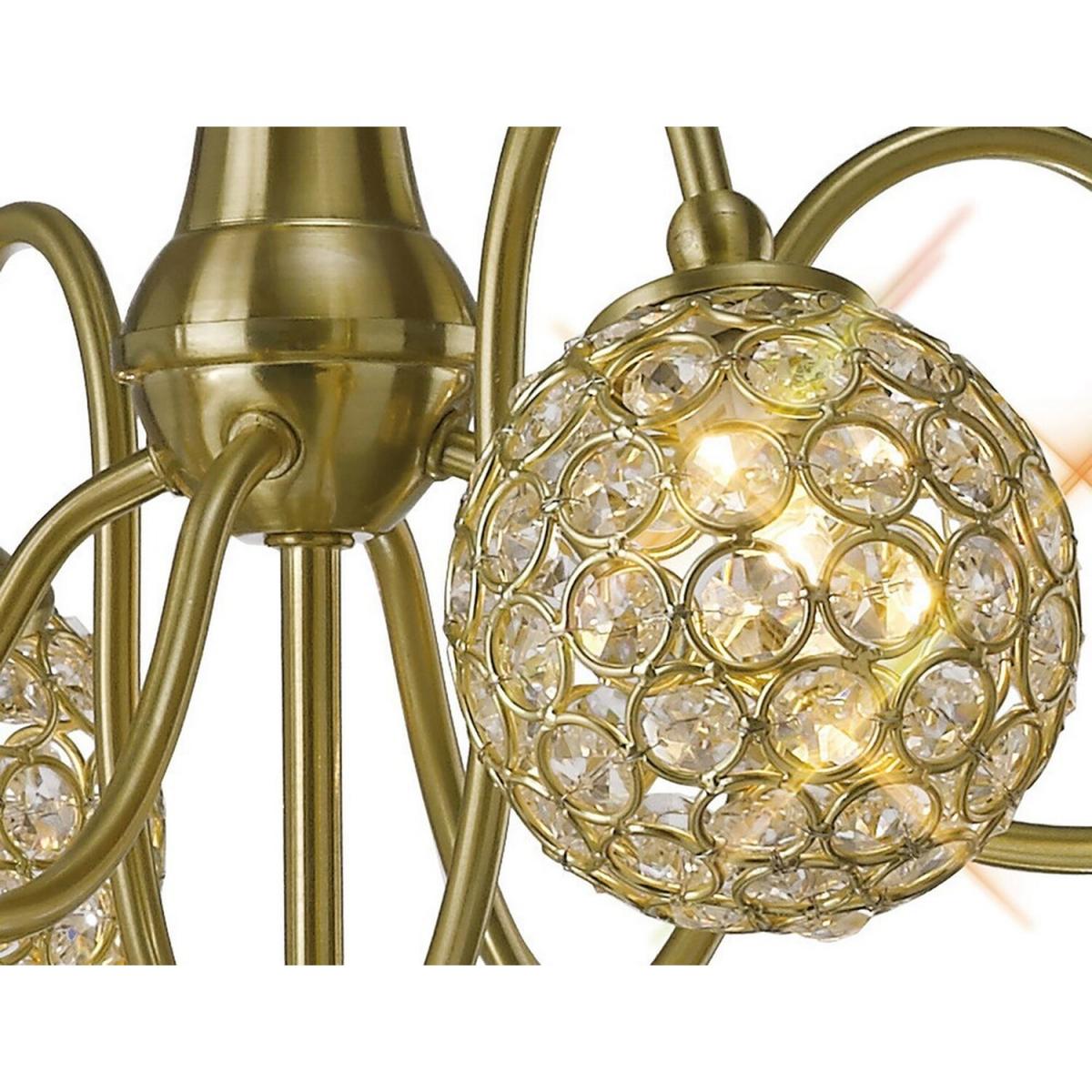I love this five-light fitting because it combines timeless elegance with a contemporary edge, making it versatile for various interiors. The satin brass finish adds warmth and sophistication, while the crystal detailing brings a touch of glamour without overwhelming the space. It's particularly effective in modern and transitional settings, working well over dining tables or in living rooms to create a focal point. For styling tips, consider pairing it with other brass accents or neutral tones to keep the look cohesive, and ensure the bulbs are warm white for a welcoming glow. This ceiling light works best when placed in spaces where it can be appreciated, creating a balanced mix of charm and function.