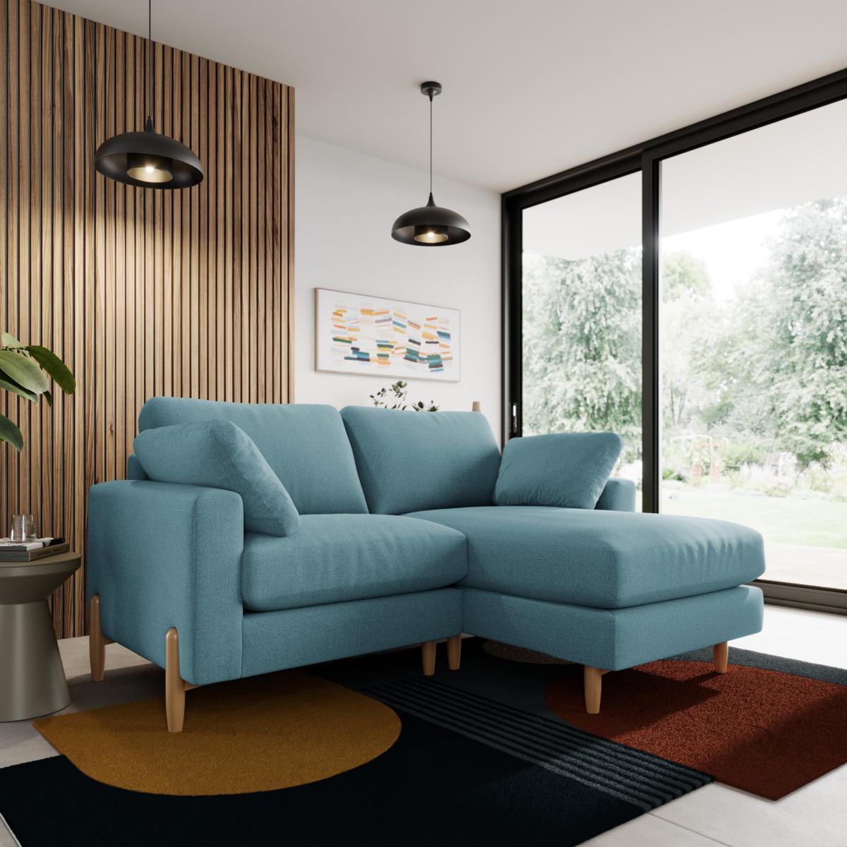 This Apollo weave corner sofa is a fantastic choice for modern, relaxed living spaces. I love its vibrant teal hue, which injects colour without overwhelming the room, making it versatile for both contemporary and Scandinavian interiors. It works particularly well in open-plan living areas, providing ample seating while maintaining a cosy feel. When styling, consider adding contrasting cushions in neutral or patterned fabrics to add texture and visual interest. Pair it with a sleek coffee table and simple lighting to keep the look fresh and uncluttered. The multiweave finish adds subtle detail, making it both practical and stylish, perfect for family rooms or informal entertaining spaces.
