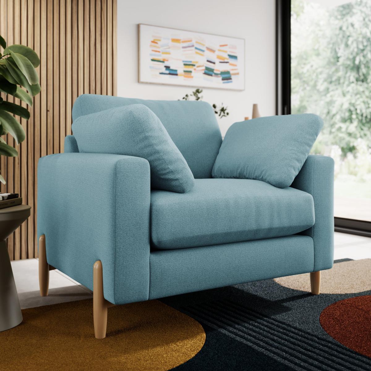 I love this sofa for its versatile appeal and contemporary charm. The multiweave teal fabric adds a vibrant pop of colour that works well in both modern and Scandinavian-inspired interiors, especially when paired with light woods and neutral tones. It's perfect for creating a cosy yet inviting seating area, whether in a living room, reading nook, or even a bedroom corner. To style it effectively, consider introducing textured cushions in contrasting shades or subtle patterns for added visual interest. Keep accessories minimal and let the colour and form of the sofa stand out. Its compact size makes it ideal for smaller spaces without sacrificing comfort, making it a practical yet stylish choice for many interiors.