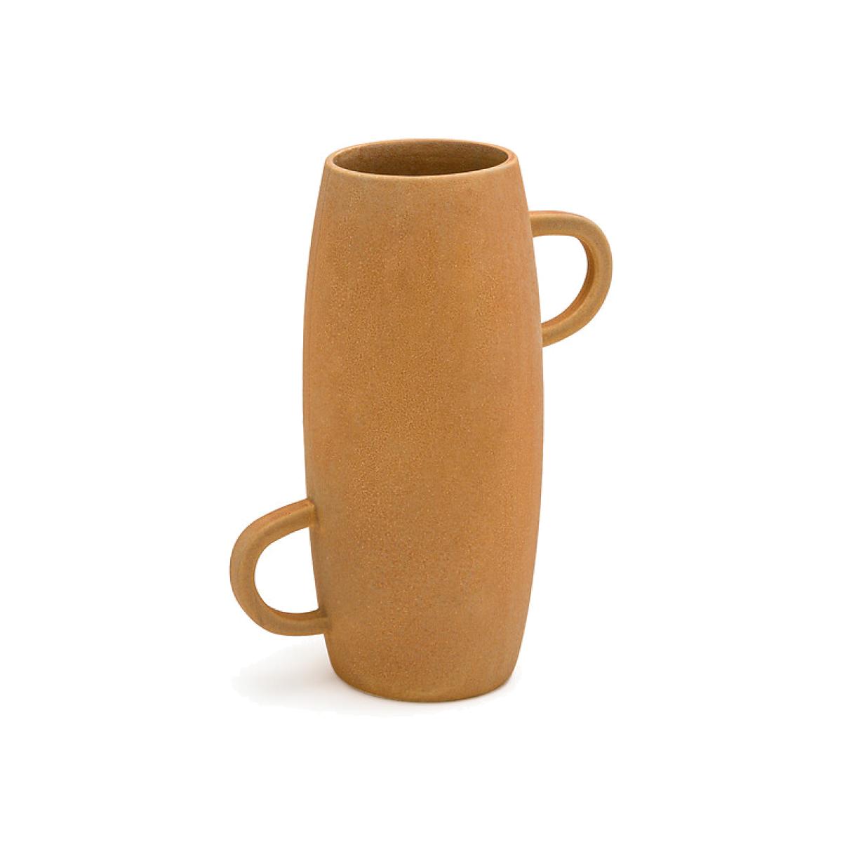 I really like this vase - the Aponia H28.5cm is a versatile piece that can complement a variety of interiors, especially those with an earthy or minimalist aesthetic. Its warm terracotta tone adds a touch of natural warmth and texture, making it ideal for both modern and rustic settings. I recommend pairing it with dried botanicals or simple fresh stems for a clean, understated look. Its unique shape and handle detail also make it suitable as a standalone statement piece on side tables or open shelving, adding visual interest without overwhelming the space. For practical styling, keep floral arrangements slim and tall to highlight its elongated form without obstructing the handle detail.