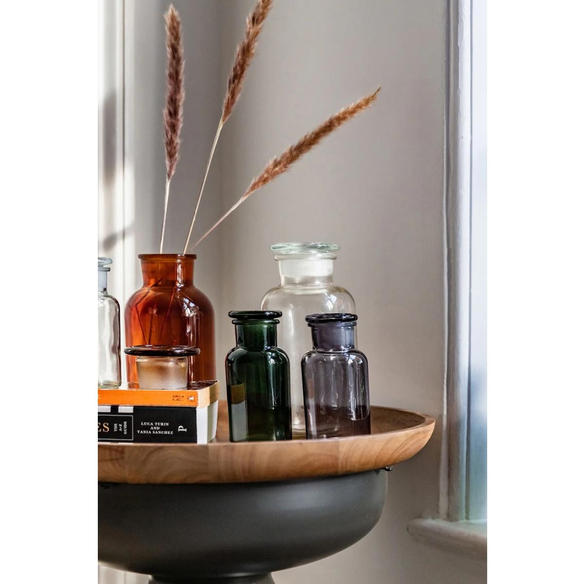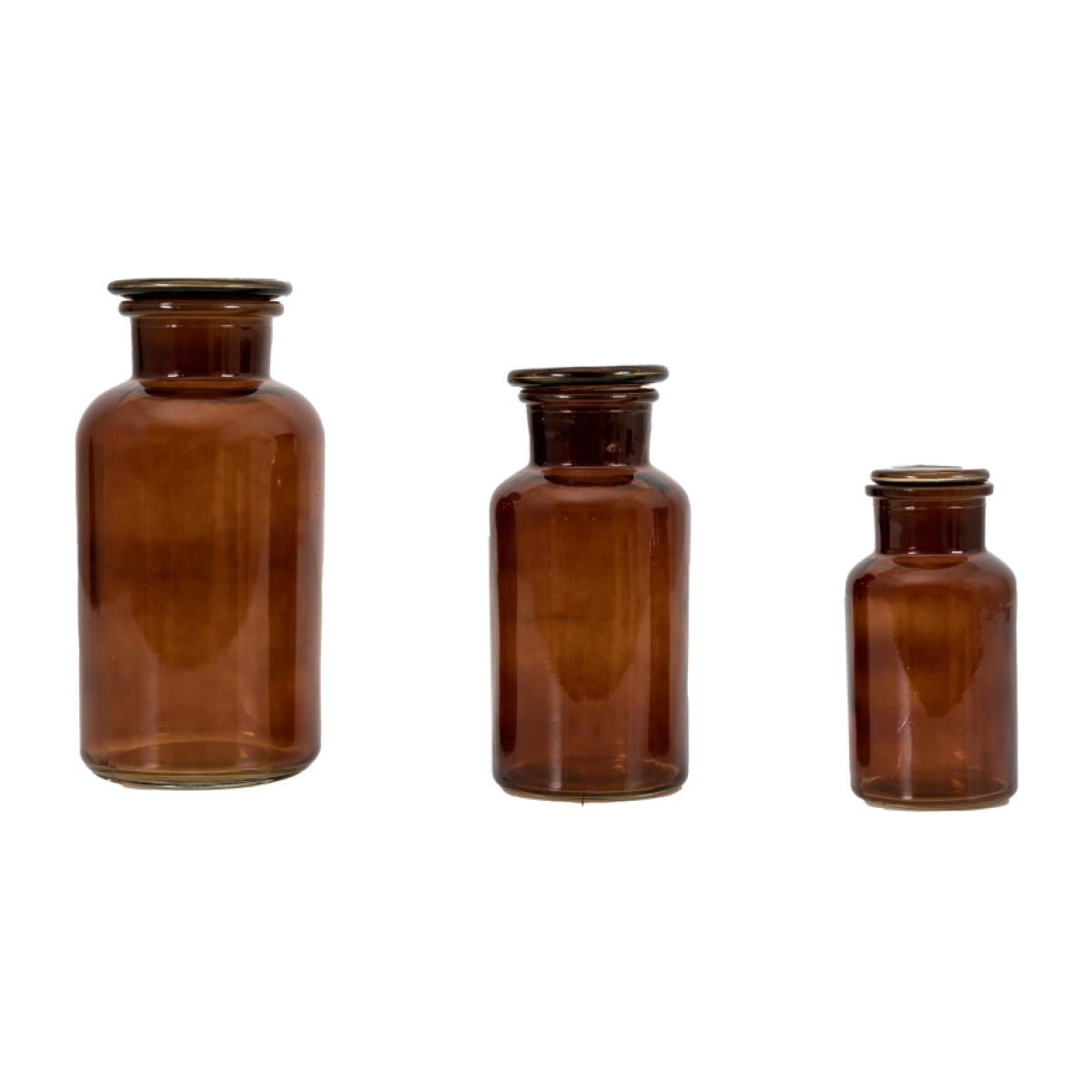 Embrace the nostalgia of yesteryears with this exquisite apothecary style set of 3 jars, seamlessly blending practicality with vintage allure. Crafted with a timeless aesthetic, this jar adds a touch of antique elegance to any storage solution in your home. Its simple yet captivating design, featuring brown glass and an apothecary-inspired shape, evokes a sense of old-world charm that complements any decor scheme. Ideal for storing a variety of items around the house, from cotton balls in the bathroom to spices in the kitchen or trinkets in the living room, this versatile jar enhances both organization and visual appeal. Each time you reach for its lid, you'll be transported to a bygone era, infusing your daily routines with a hint of historical fascination. Glass Set of 3 Also available in Green and Smoke Small H 13cm x W 6.5cm x D 6.5cm Medium H 16cm x W 8cm x D 8cm Large H 20cm x W 10cm x D 10cm Please note: Lifestyle images are for illustrative purposes, Set of 3 Brown Jars provided. All screens vary in colour reproduction and whilst every effort has been made to display the colour as accurately as possible it is for guidance only.