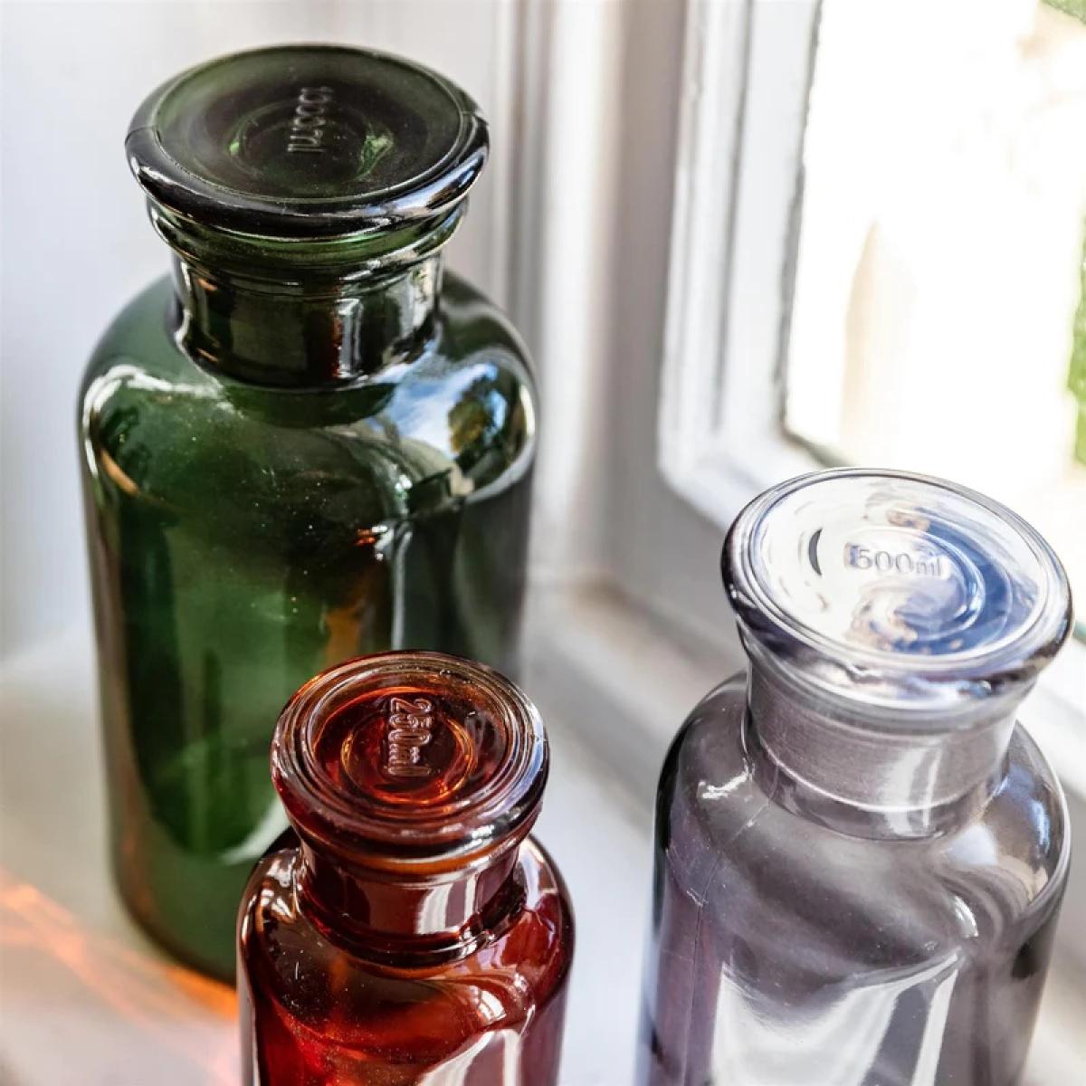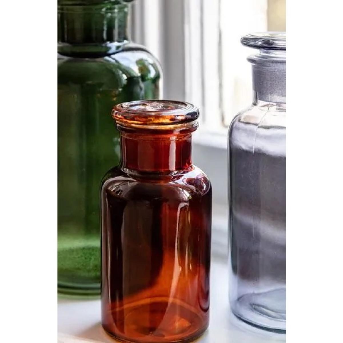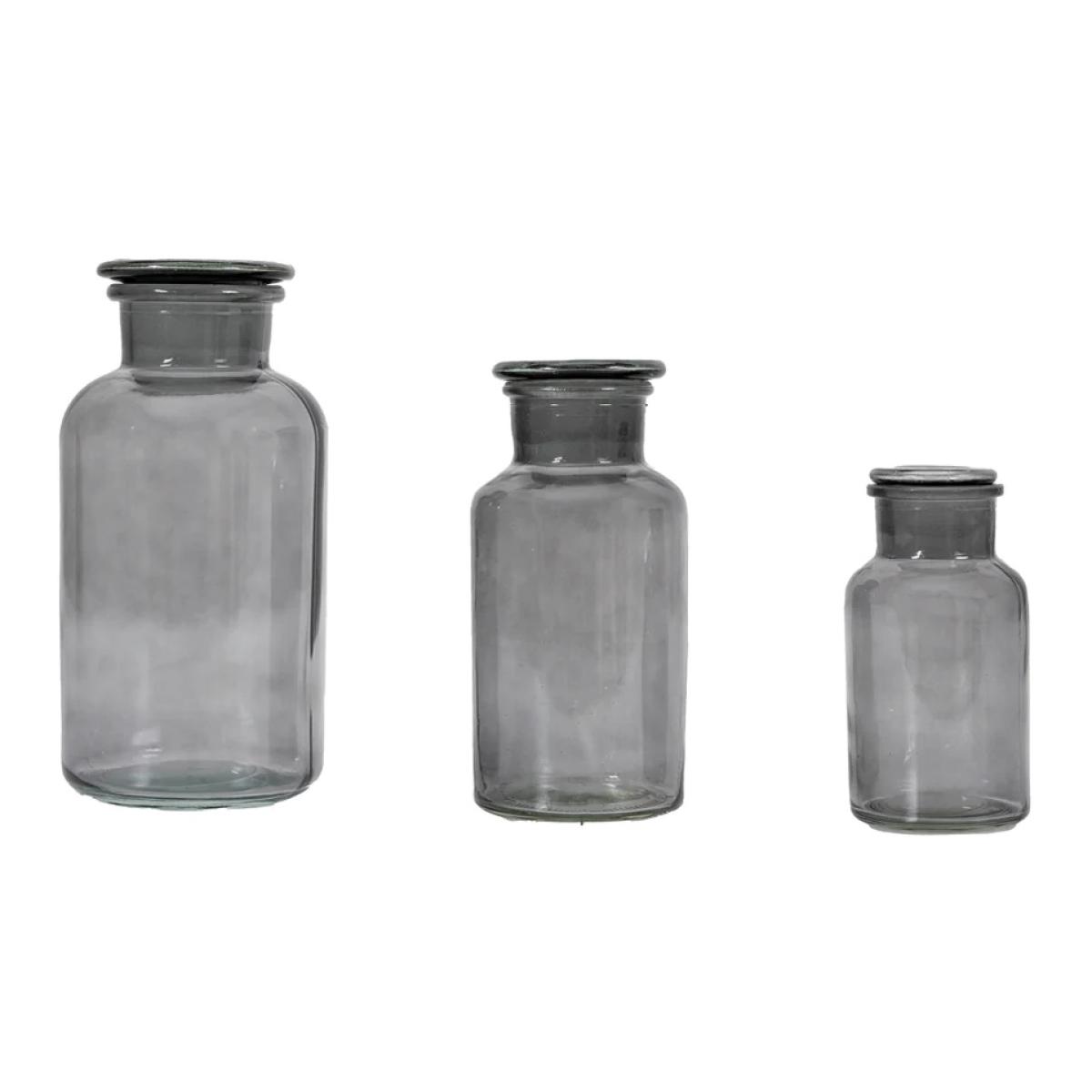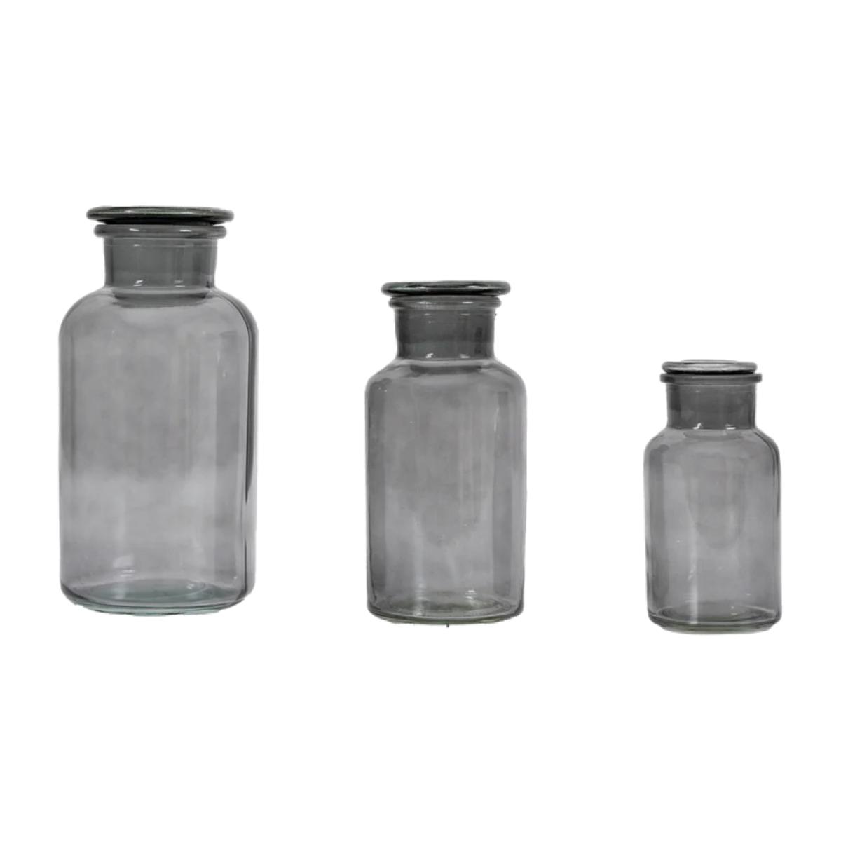 Embrace the nostalgia of yesteryears with this exquisite apothecary style set of 3 jars, seamlessly blending practicality with vintage allure. Crafted with a timeless aesthetic, this jar adds a touch of antique elegance to any storage solution in your home. Its simple yet captivating design, featuring brown glass and an apothecary-inspired shape, evokes a sense of old-world charm that complements any decor scheme. Ideal for storing a variety of items around the house, from cotton balls in the bathroom to spices in the kitchen or trinkets in the living room, this versatile jar enhances both organization and visual appeal. Each time you reach for its lid, you'll be transported to a bygone era, infusing your daily routines with a hint of historical fascination. Glass Set of 3 Also available in Green and Brown Small H 13cm x W 6.5cm x D 6.5cm Medium H 16cm x W 8cm x D 8cm Large H 20cm x W 10cm x D 10cm Please note: Lifestyle images are for illustrative purposes, Set of 3 Smoke Jars provided. All screens vary in colour reproduction and whilst every effort has been made to display the colour as accurately as possible it is for guidance only.