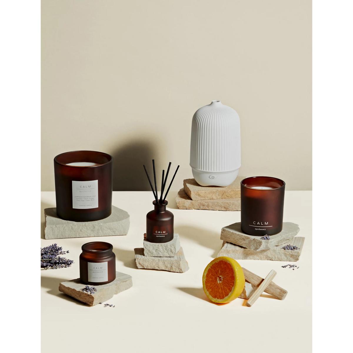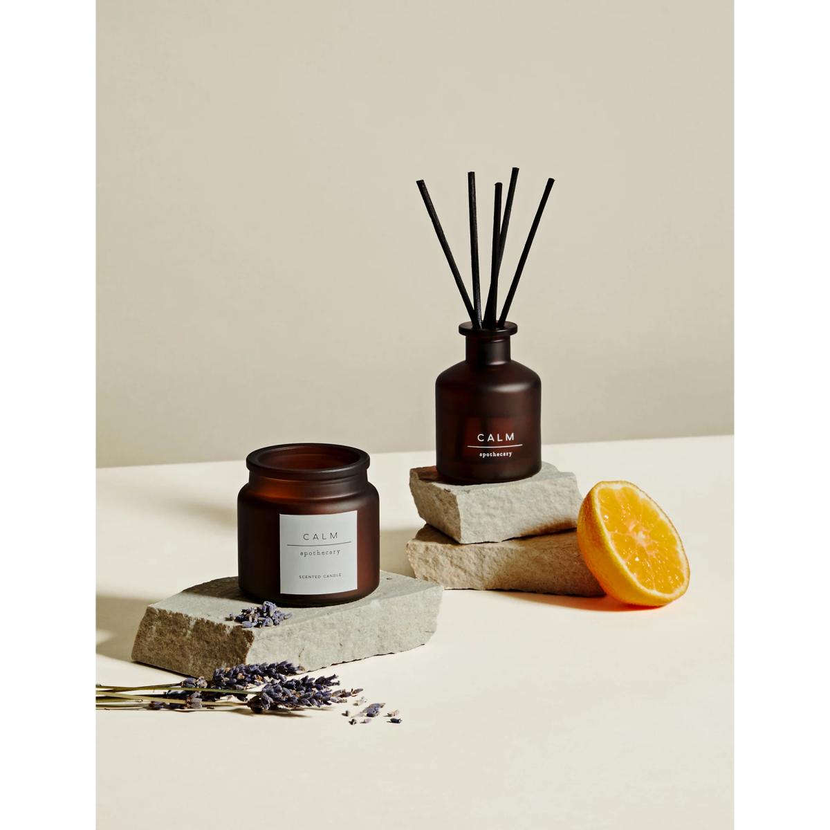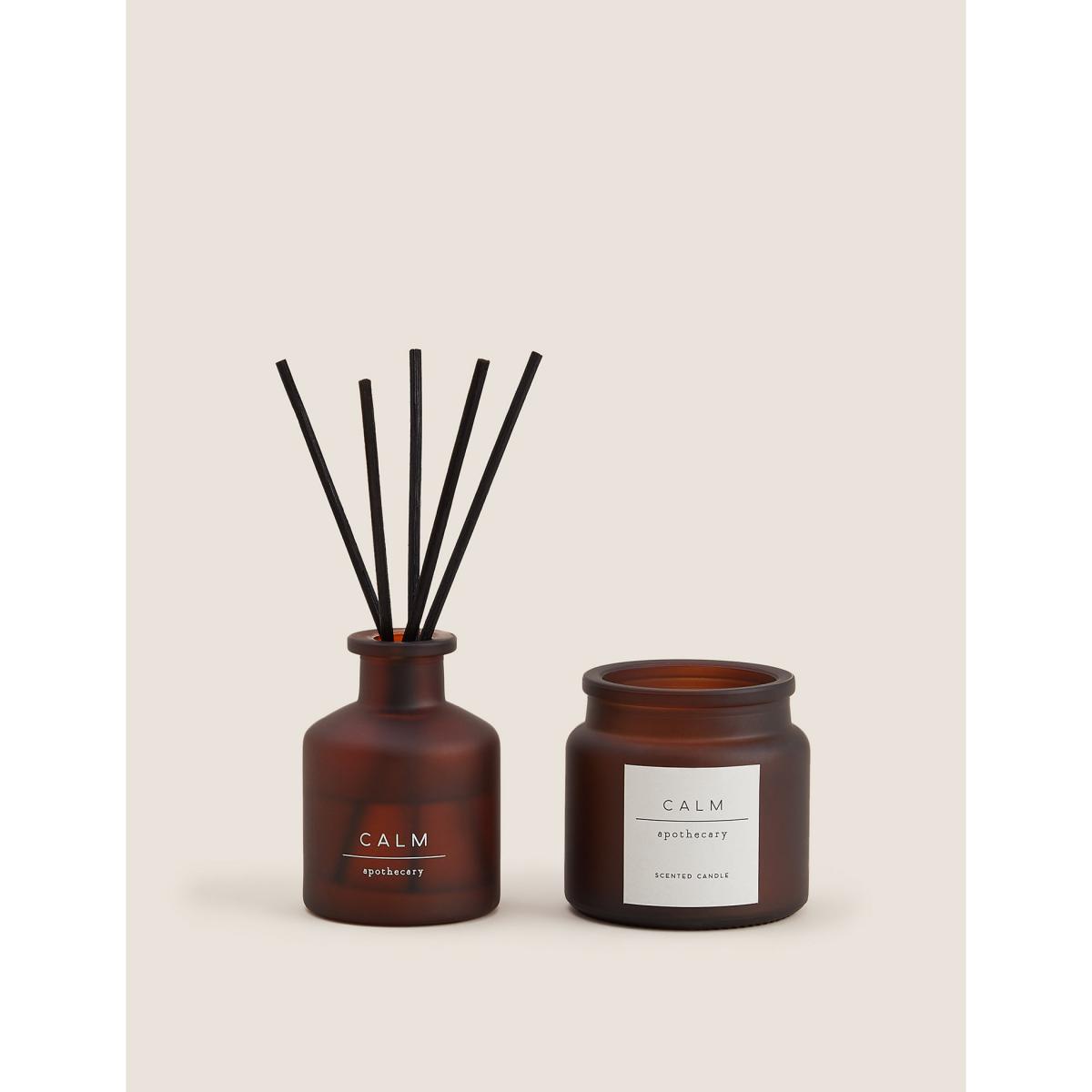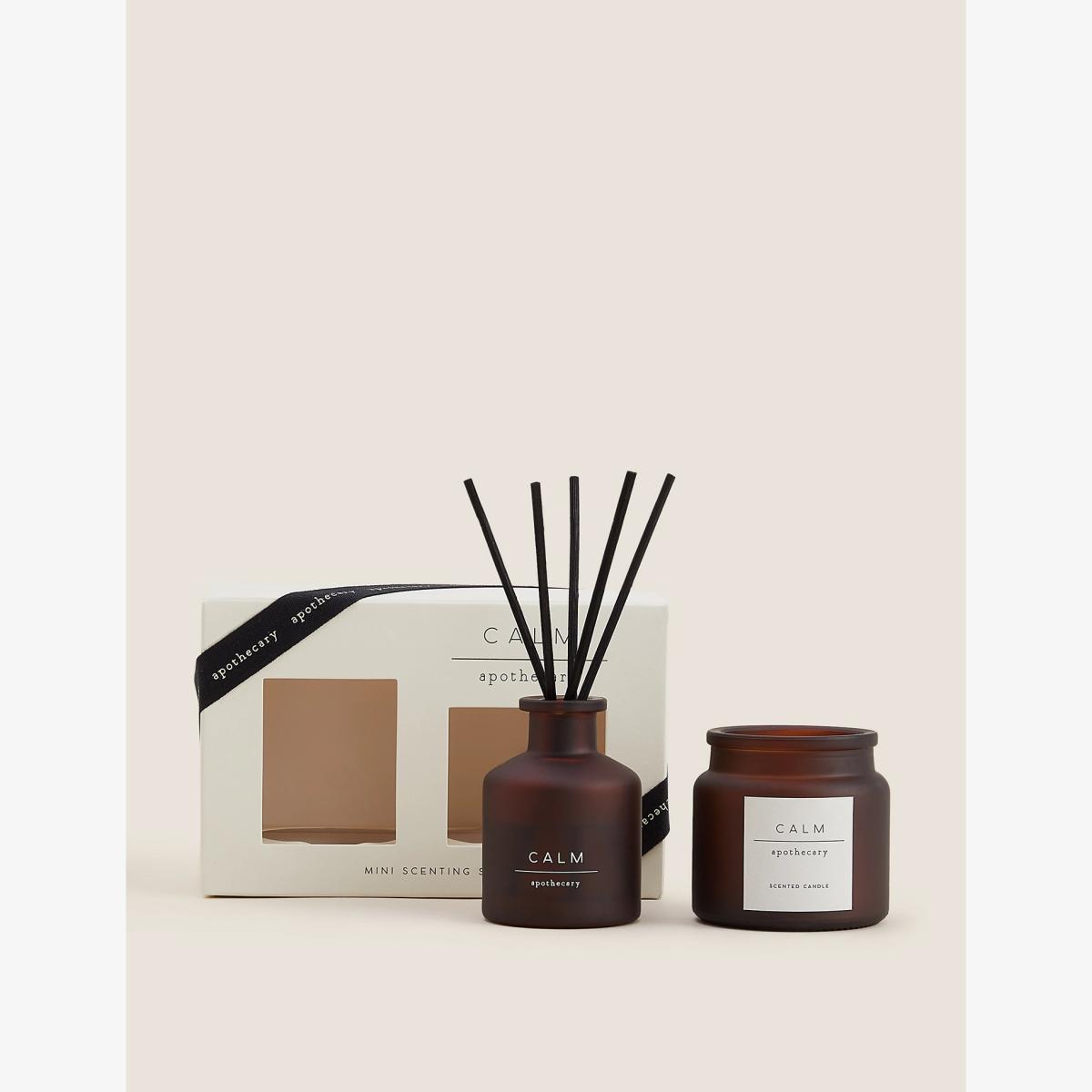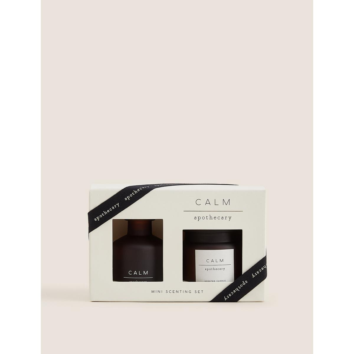 Treat yourself or someone you love to a harmonious atmosphere with this scented set from the Apothecary collection. The gift box contains a 30ml diffuser and a mini votive candle in the iconic Calm fragrance. This fragrance is part of the Herbal family of fragrances. Herbal scents are often considered to have soothing and relaxing qualities and may contain notes such as lavender, cedar wood, vetiver or eucalyptus.