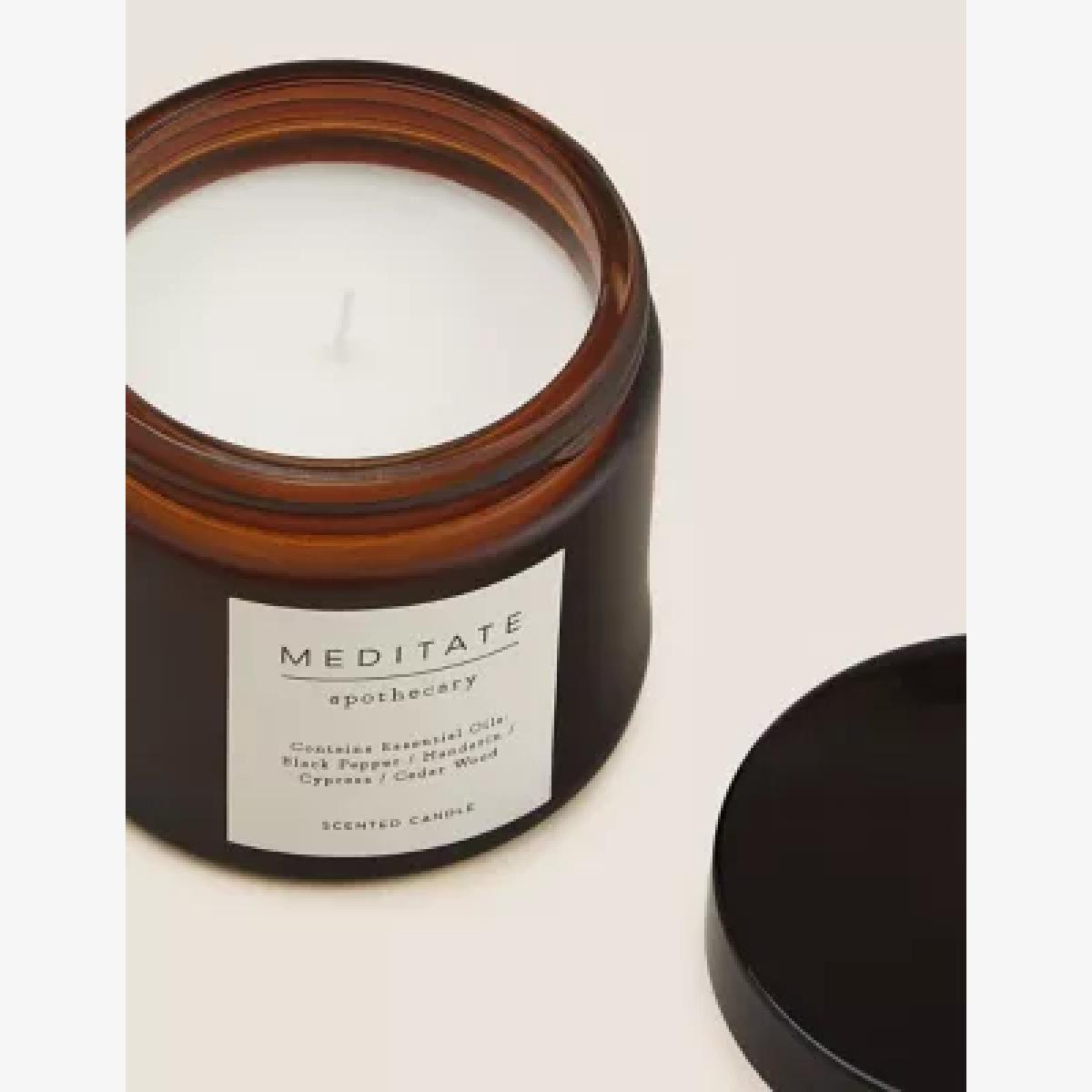 I love this candle for its warm, amber scent that adds a cosy, inviting feel to any space. It works particularly well in neutral or minimalist interiors, where its simple design and comforting aroma can become a subtle yet impactful accent. For practical styling, try placing it on a marble tray or alongside other natural textures like wooden accessories or woven textiles to enhance its earthy vibe. It’s perfect for creating a calming corner in a living room or bedroom, but also works beautifully on a bathroom shelf to add a spa-like touch. Keep it as a centrepiece on a side table or stack it with candles of varying heights for a chic, layered look.