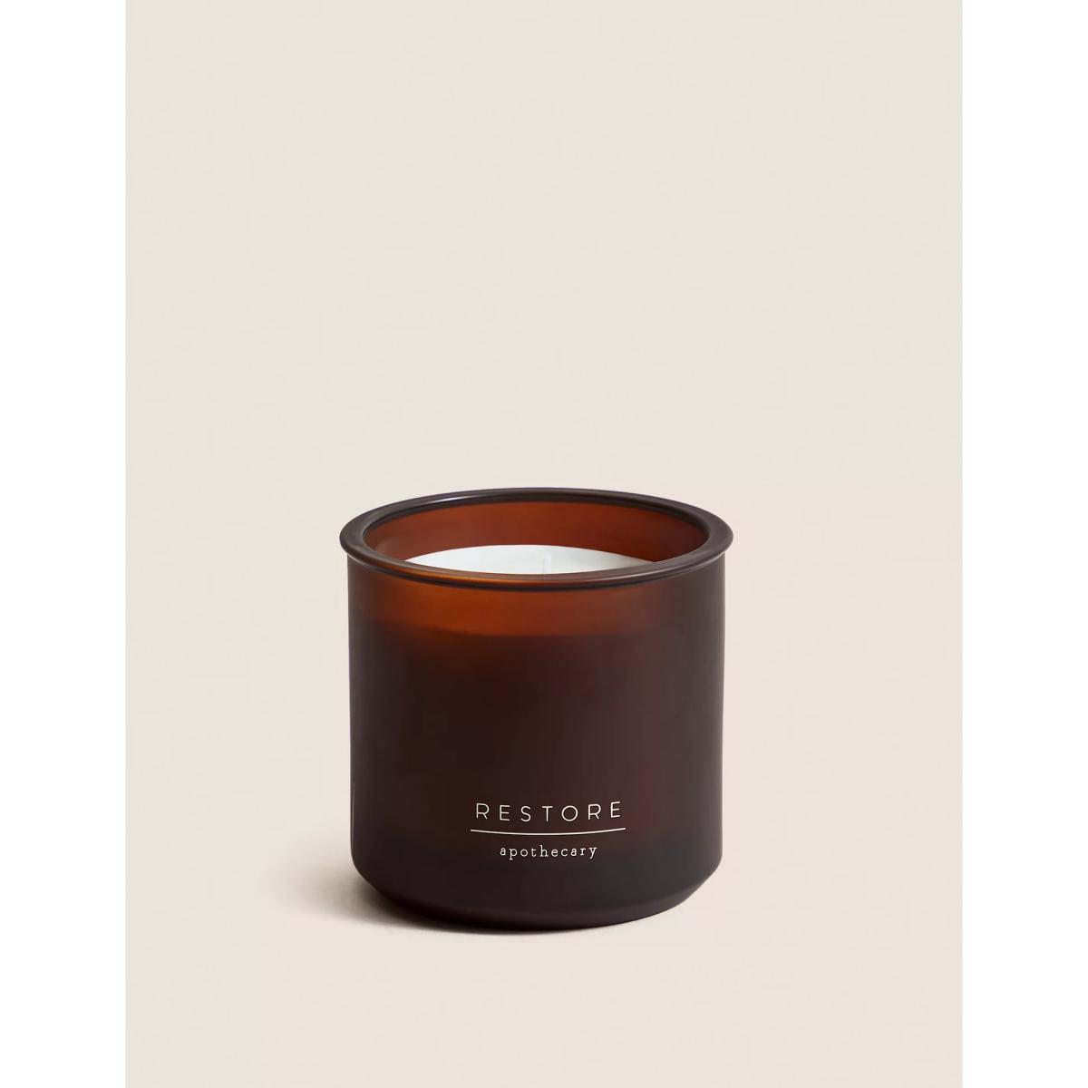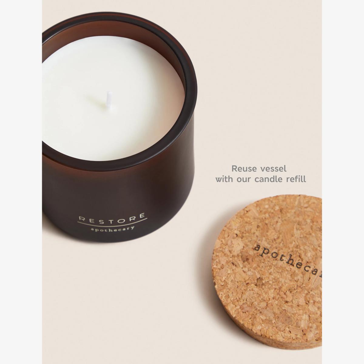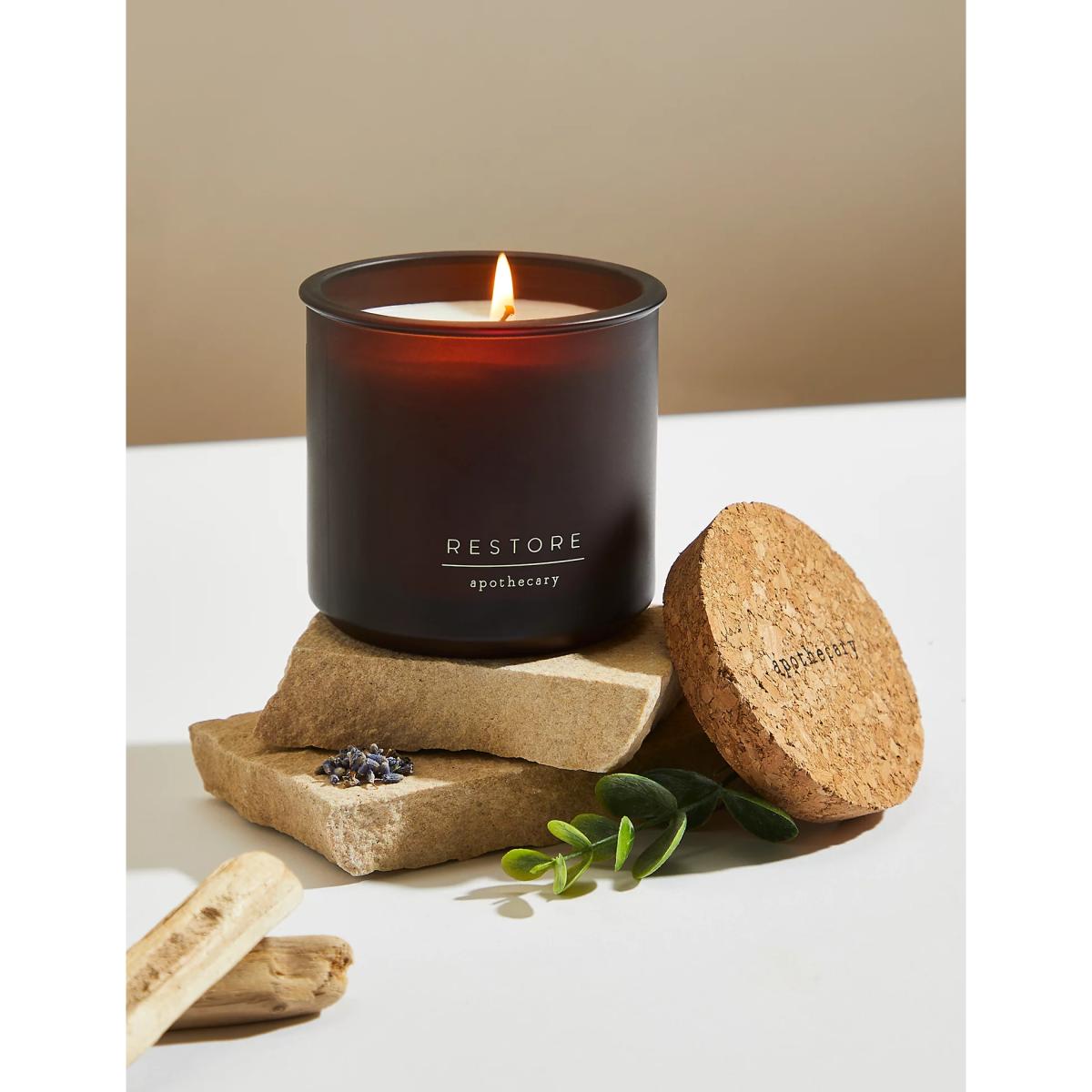 Promote a sense of calm with this Restore scented candle from our Apothecary range. The fragrance combines the aromas of cedarwood, geranium and eucalyptus, helping to create a soothing atmosphere. Once you've finished using the candle, the container can be refilled with one of our Apothecary candle refills. This fragrance is part of the Herbal family of fragrances. Herbal scents are often considered to have soothing and relaxing qualities and may contain notes such as lavender, cedar wood, vetiver or eucalyptus.