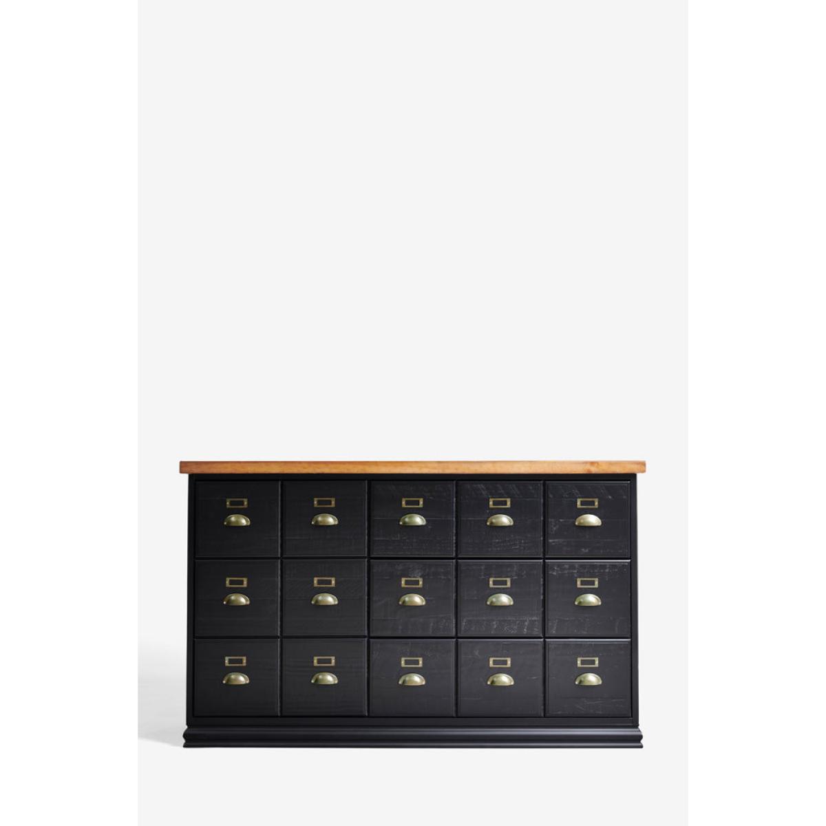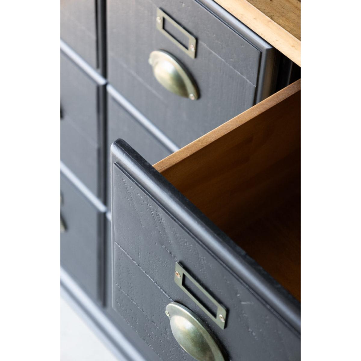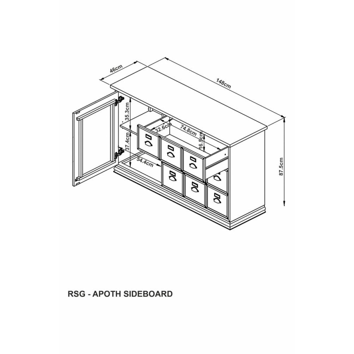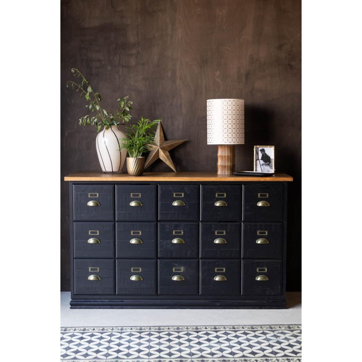 Designed to look like a stunning set of drawers, this actually houses a cleverly designed, roomy cupboard, alongside nine drawer spaces that are perfect for tidying away all your essentials. Crafted from stained black wood with a natural wood top, this is Victorian apothecary-style chic at its best, and gives what could be an otherwise bland, everyday piece a vintage twist. It marries beauty with practicality in a way that only RSG can, and is destined to become a talking point in your home for all the right reasons. It’s certainly a forever piece that will be beloved for generations to come, not least because it’s so fabulously functional. Use in the kitchen for placemats, table linen and serveware, while in the bedroom it’s perfect for make-up, hair accessories and jewellery. In the hallway, it’s your go-to for hats, scarves and gloves. Style with greenery, a lamp, a mirror, vases in varying heights and your favourite trinkets to create a shelf-scape to be proud of, then stand back and admire your efforts. We promise this is one piece of furniture that will never disappoint! - Apothecary Sideboard - Measures:H87.5cm x W148cm x D46cm