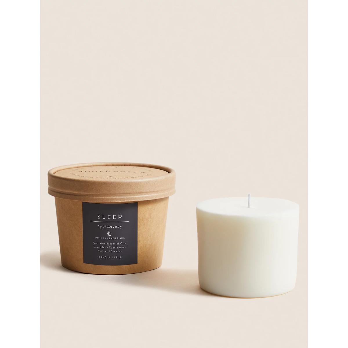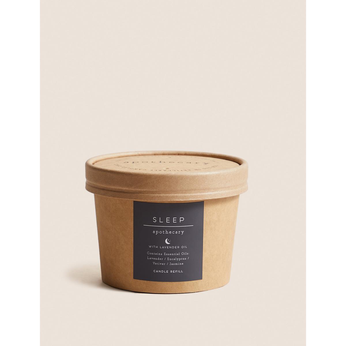 Restore balance and relaxation to your bedtime routine with this Sleep candle refill from our Apothecary collection. Infused with essential oils of lavender, eucalyptus, vetiver and jasmine, its scent calms the senses. For use with M&S Apothecary Refillable Candles. This refill pack is to be used with our refillable Apothecary candles and must not be burnt as a stand-alone candle. Always use an Apothecary candle vessel. The pack is made from fully recyclable cardboard packaging. This fragrance is part of the Herbal family of fragrances. Herbal scents are often considered to have soothing and relaxing qualities and may contain notes such as lavender, cedar wood, vetiver or eucalyptus.