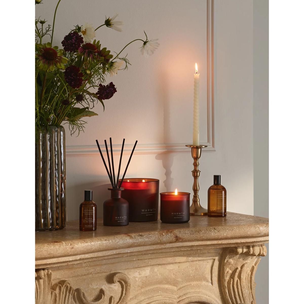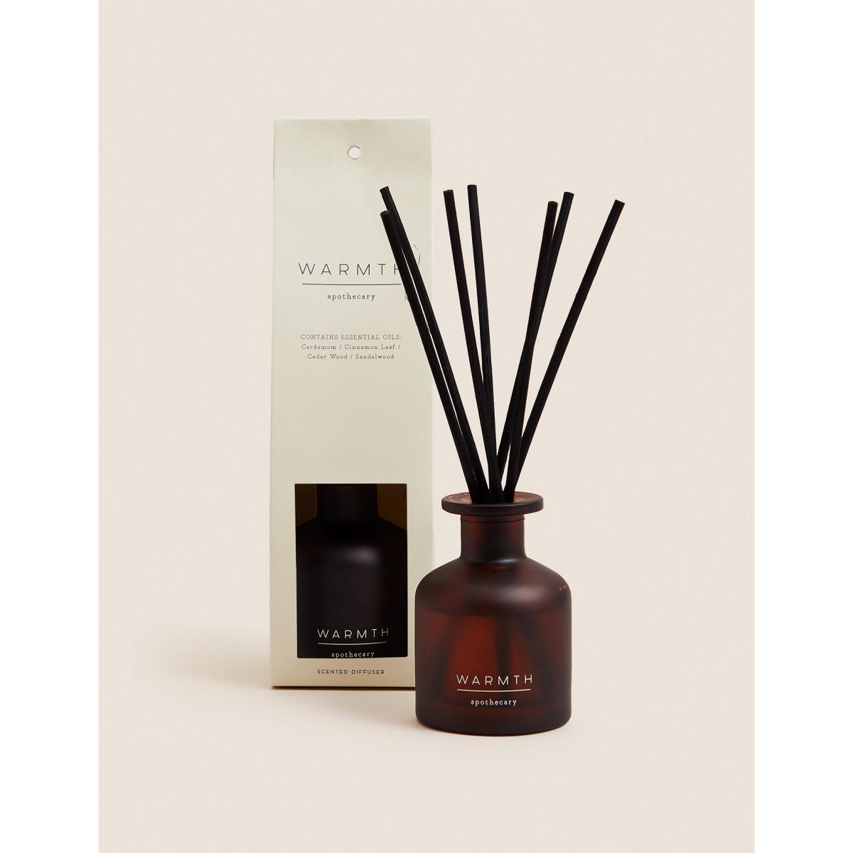 This elegant glass diffuser from our Apothecary range promotes a sense of calm. The blended Warmth scent combines notes of cardamom, cinnamon leaf, cedar and sandalwood to evoke a comforting feeling. This fragrance is part of the Woody family of fragrances. Woody scents have an earthy, spicy tone and will often include notes such as sandalwood, cinnamon leaf, amber & musk amongst others.