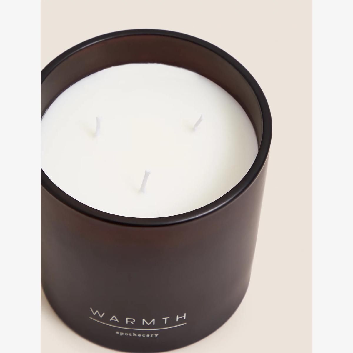 Bring a sense of calm and comfort to your space with this Warmth candle from our Apothecary range. The three-wick candle reveals warm scents of cardamom, cinnamon leaf and sandalwood.
