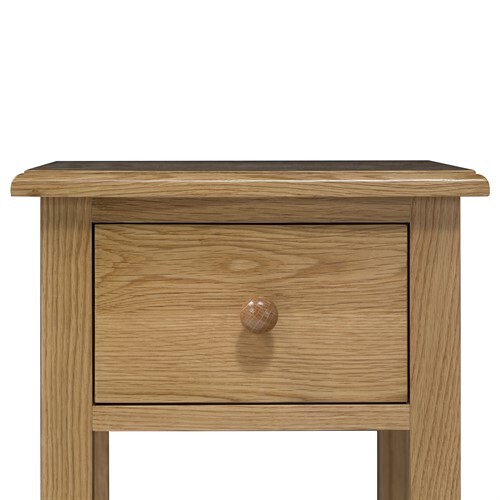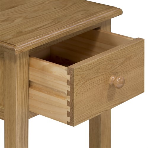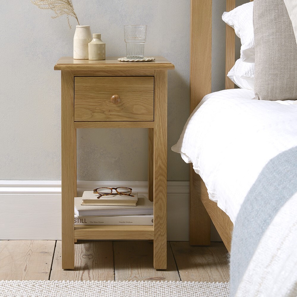 With a practical slim-line design that's a perfect fit for smaller bedrooms or the guest room, we love this versatile little table with its light oak finish, useful drawer and lower shelf.