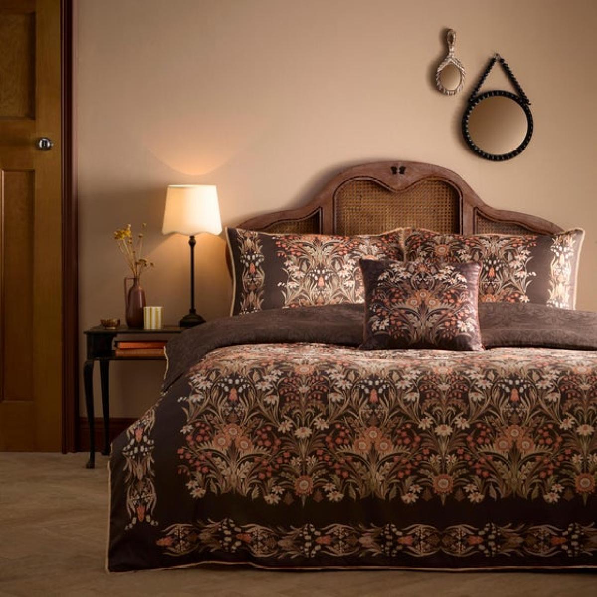 I really like the Apple Tree duvet set for its classic cotton sateen finish, which adds a touch of luxurious sheen without being overly formal. It works well in both traditional and transitional interiors, especially when paired with vintage textures or antique furniture pieces, as seen in the image. To style it effectively, consider layering with neutral-toned throws or cushions in natural fabrics like linen or wool for a cosy, inviting look. Its versatile design makes it a good choice for those wanting to add a sophisticated, yet relaxed feel to their bedroom. Practical tips include mixing and matching with plainer or textured pillowcases to keep the look fresh and approachable.
