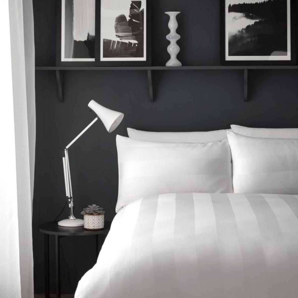 Add a touch of luxurious hotel chic to your bedroom with this heavenly 200 thread count, 100% cotton bedding set. Wide dobby stripes add subtle visual magic to this gorgeous duvet cover set. Fabric: 100% Cotton Thread Count: 200 Care: 40° wash Cool tumble dry Iron whilst damp Single set includes 1 pillowcase Double, Kingsize and Super Kingsize include 2 pillowcases All screens vary in colour reproduction and whilst every effort has been made to display the colour as accurately as possible it is for guidance only.