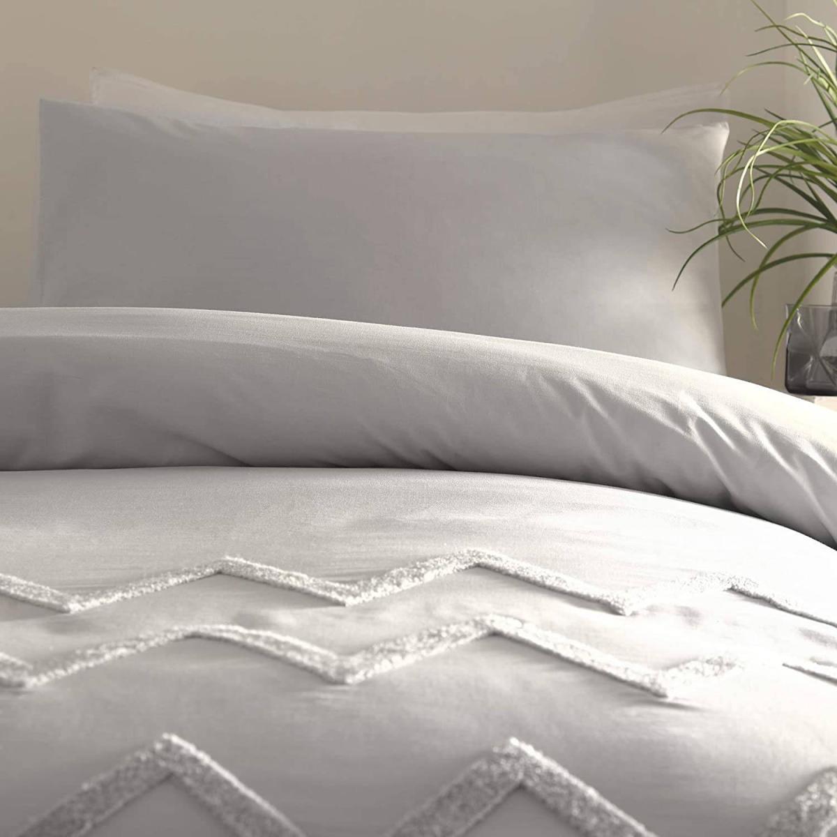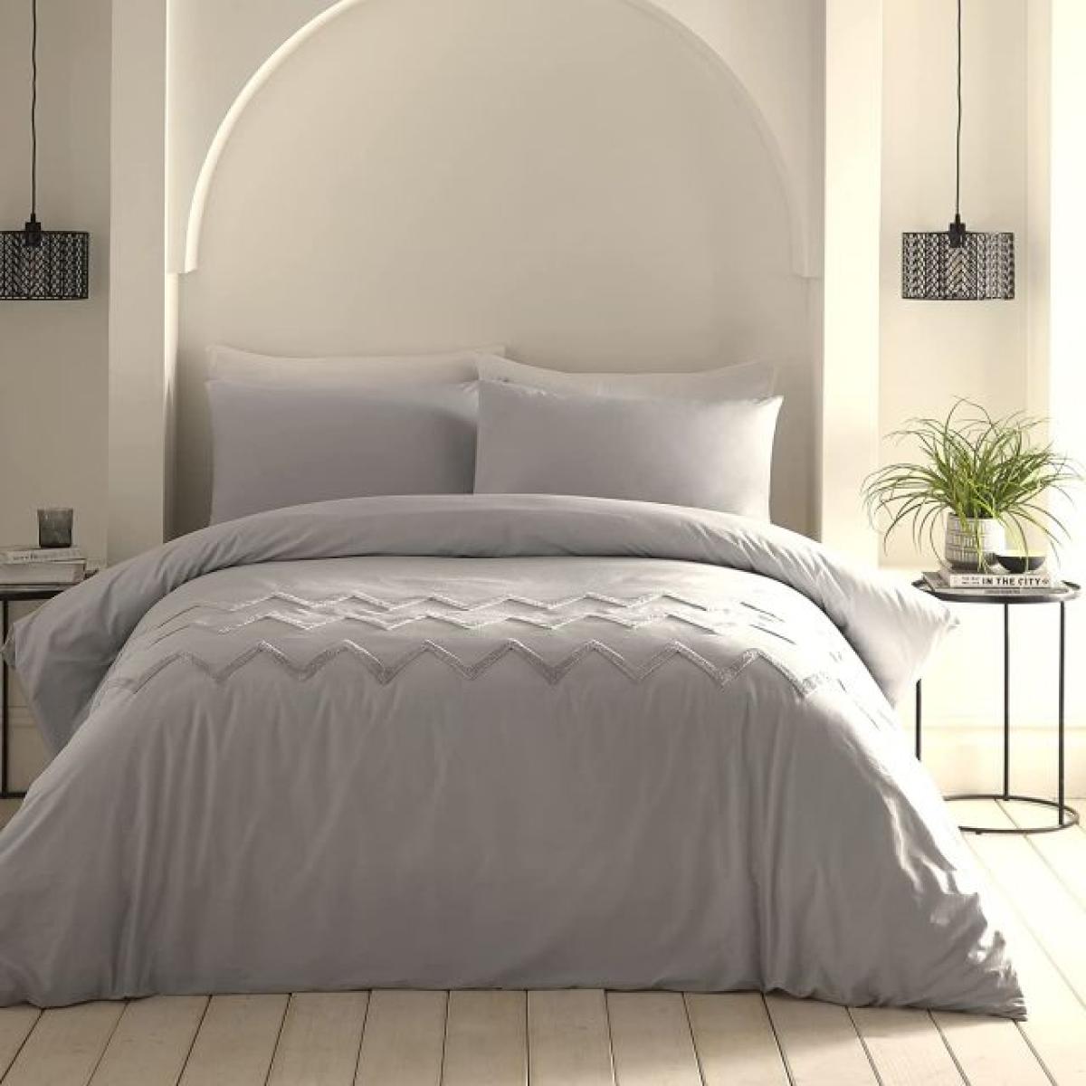 Add a touch of class to your bedroom with this luxurious plain dye bed linen. The sumptuous chevron embellishment adds texture & depth whilst remaining understated, allowing the modern colour palette to create a quiet vintage appeal. Matching housewife pillowcase(s) complete the duvet set & inspire you to slip into a blissful slumber, time after time. 100% cotton Single includes one pillowcase. Double/Kinng/Super king includes 2 pillowcases. Thread Count - 150 Care: 40° wash. Wash dark colours separately. Do not bleach. Cool tumble dry. Iron whilst damp