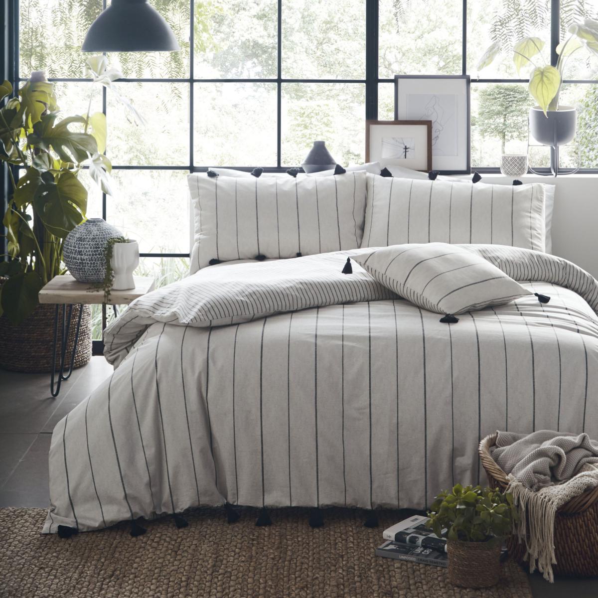 Boasting a simple stripe design, this bedding set is a stylish bedroom staple that looks great at any time of the year and this 100% cotton bedding set from Appletree offers a relaxed a Scandi feel with a cool, contemporary aesthetic to see you through the seasons. Finished with quirky tassel detailing and a cotton soft feel this relaxed, casual duvet cover set is wonderfully soft and inviting and promises to only get better with time. This Collection is verified by OEKO-TEX® and independently tested for harmful substances. It stands for customer confidence and high product safety.